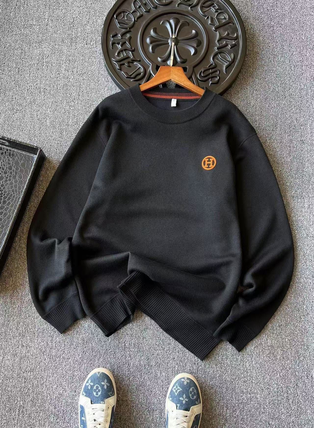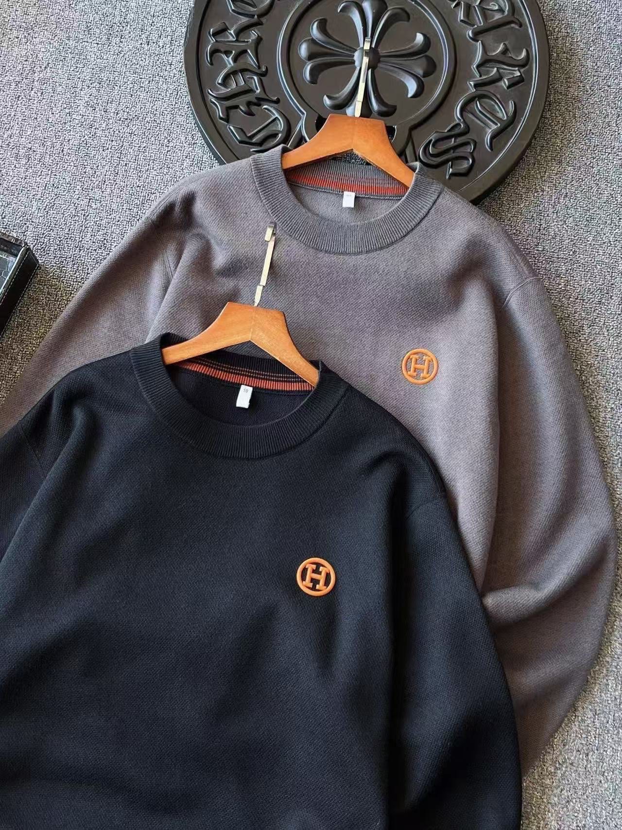 细节细节再细节 Hermes家商场新品轻奢绵羊毛加绒加厚毛衣 高级水泥灰 石墨黑双色精致百搭 胸前3D浮雕立体进口软质硅胶材质的H小标 定制爱马仕专属橙色 从双肩双袖到下摆全部采用6针24线缝制工艺 高级感拉满