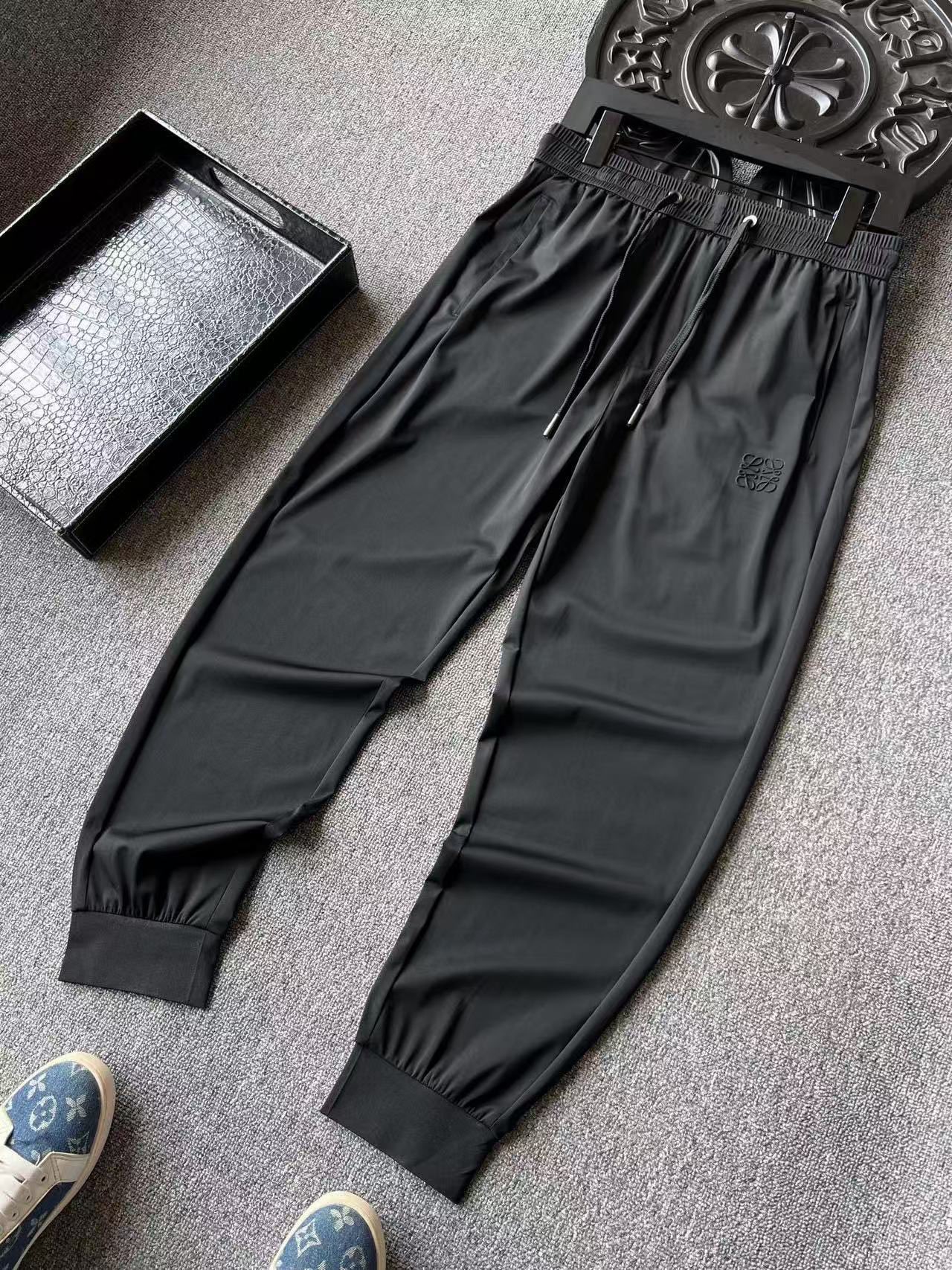 专柜顶级货 人气爆款 Loewe 罗意威专柜新品冰氧蚕丝长裤 恒隆在售万元级 款号 3662 罗意威家今年新品冰氧天丝面料 内外层做了液氨工艺处理 久穿持久有型 摸起来柔软细腻 贴身十分舒服 自带体感降温 7 功效 大弹力氨纶因子充分保证运动健身松弛度 细节细节再细节 Loewe家商场新品高端松紧裤 裤前罗意威立体浮雕硅胶小标 细品表层纹理 十分精致 腰口金属抽绳孔细节 双侧以及后内嵌式口袋设计都带有暗拉链设计 保证随身携带手机等不丢失 全球首发新品 国内外专柜热销爆款束脚裤 男女同款在售 跑步健身 户外运动拓展很好的速干排水特效 无压力驾驭任何大型商务场合以及高端私人会所 强烈推荐入手 尺码 M 3XL 情侣款