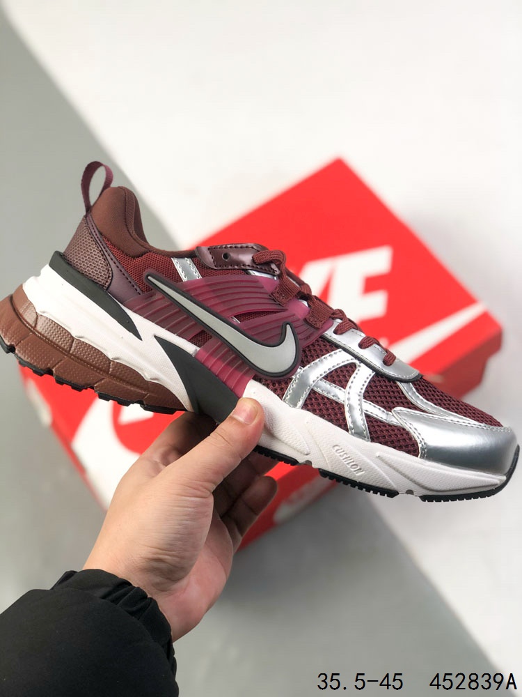 公司级带半码 耐克 NIKE V2K RUN跑步鞋 复古风潮 网面透气运动鞋 紧致的鞋面材质提供良好的包裹性 鞋侧 Swoosh以及鞋头部分搭配增添不少亮点的镀铬细节 鞋垫上印有Bill Bowerman头像 将细节拉满 中底饰有独特的做旧效果 最后搭载黑色外底 凸显整双鞋的复古气质 ID 452839A