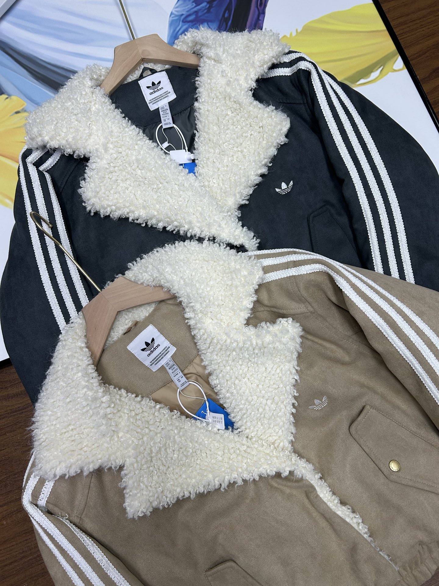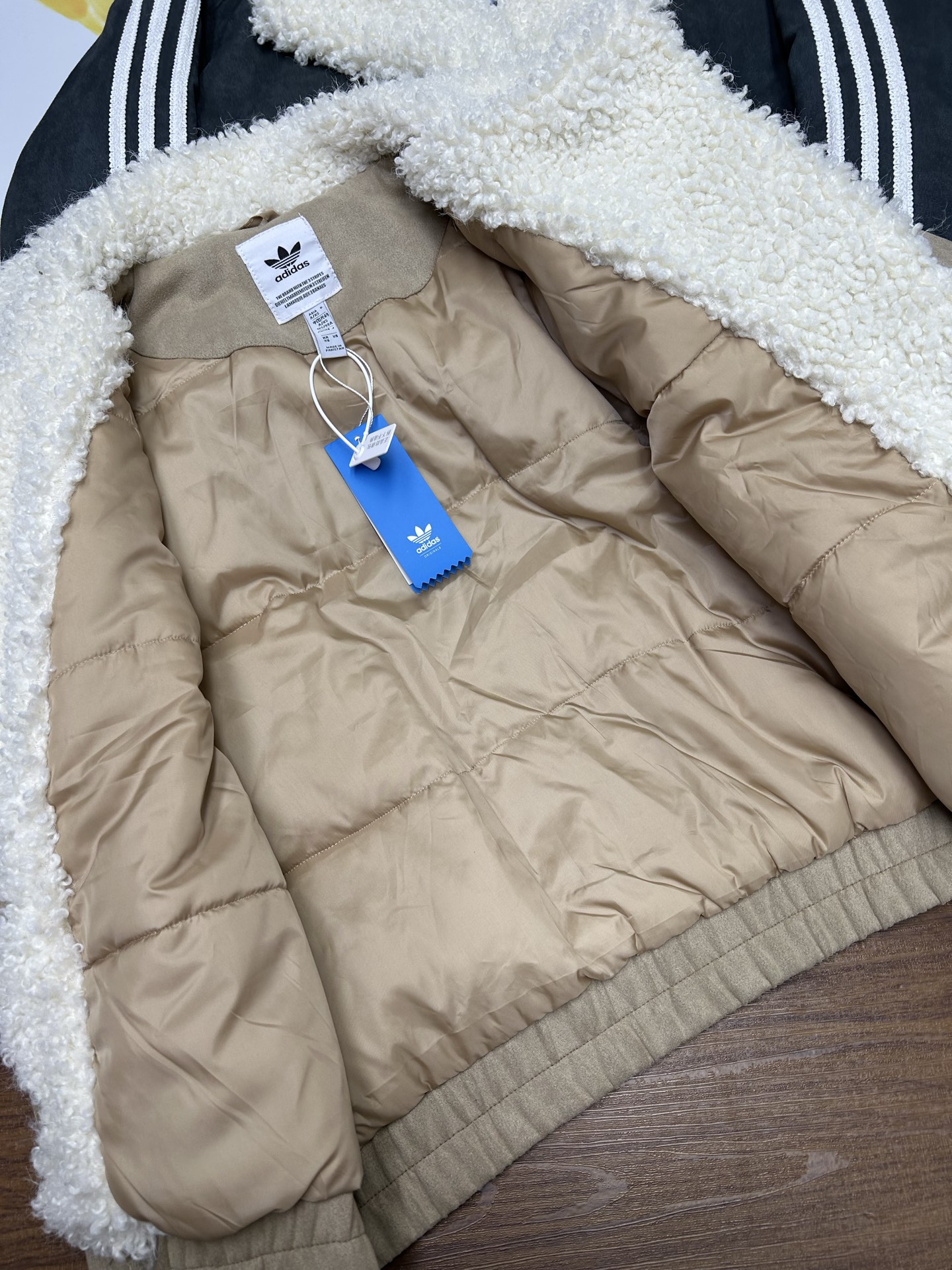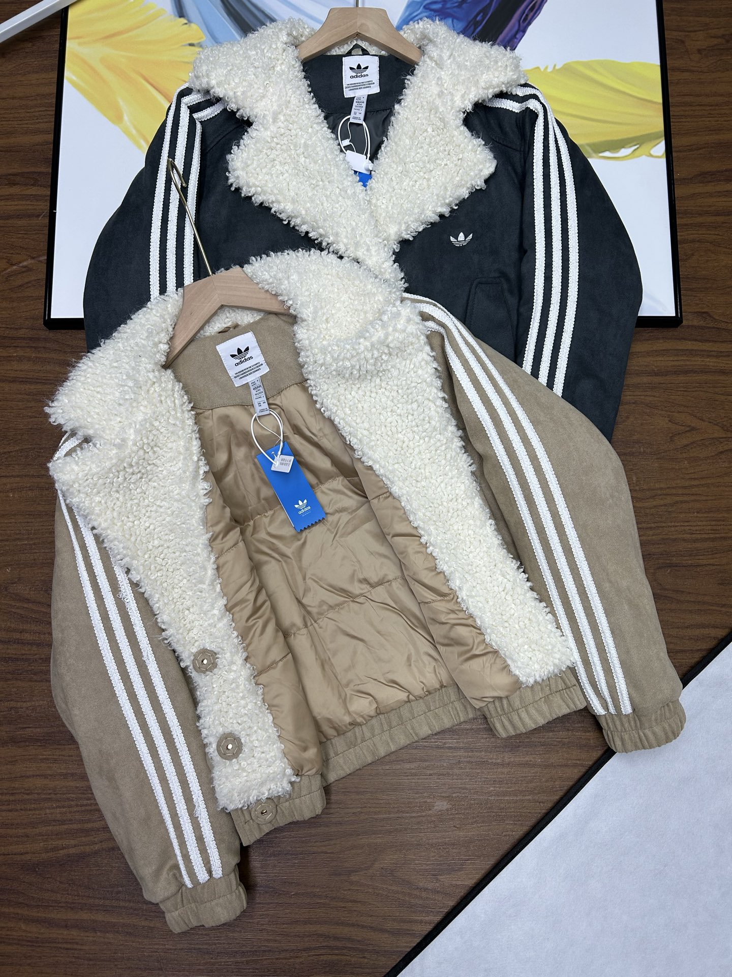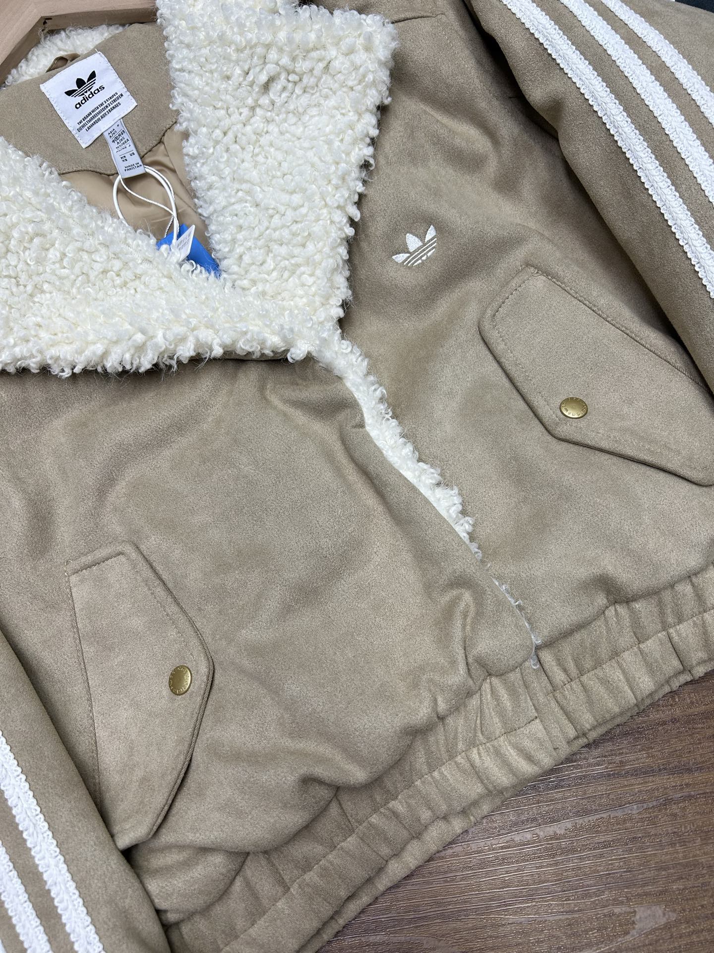 阿迪达斯三叶草羊羔绒棉服 麂皮绒 羊羔绒拼接 毛领翻领设计 舒适保暖 胸前三叶草刺绣logo 饱满精致 经典基础款 超级百搭 三标齐全 细节满满 质量绝对一百分