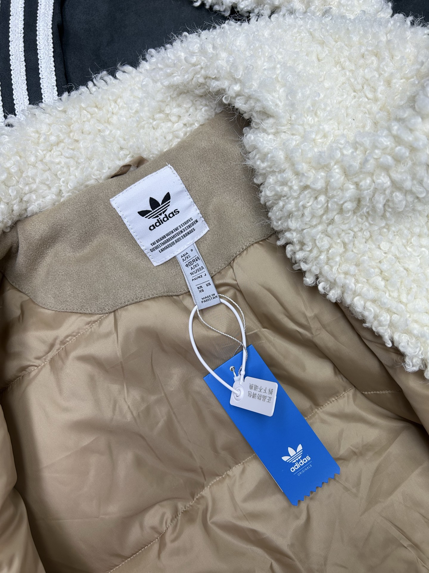 175142058 - 阿迪达斯三叶草羊羔绒棉服 麂皮绒 羊羔绒拼接 毛领翻领设计 339050