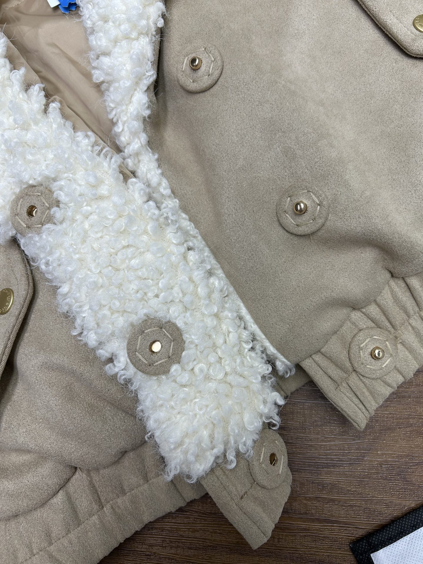 翻领设计保暖又时髦 短款版型对小个子超友好 修饰身形不臃肿内里羊羔绒柔软舒适 外层麂皮防风 保暖效果好