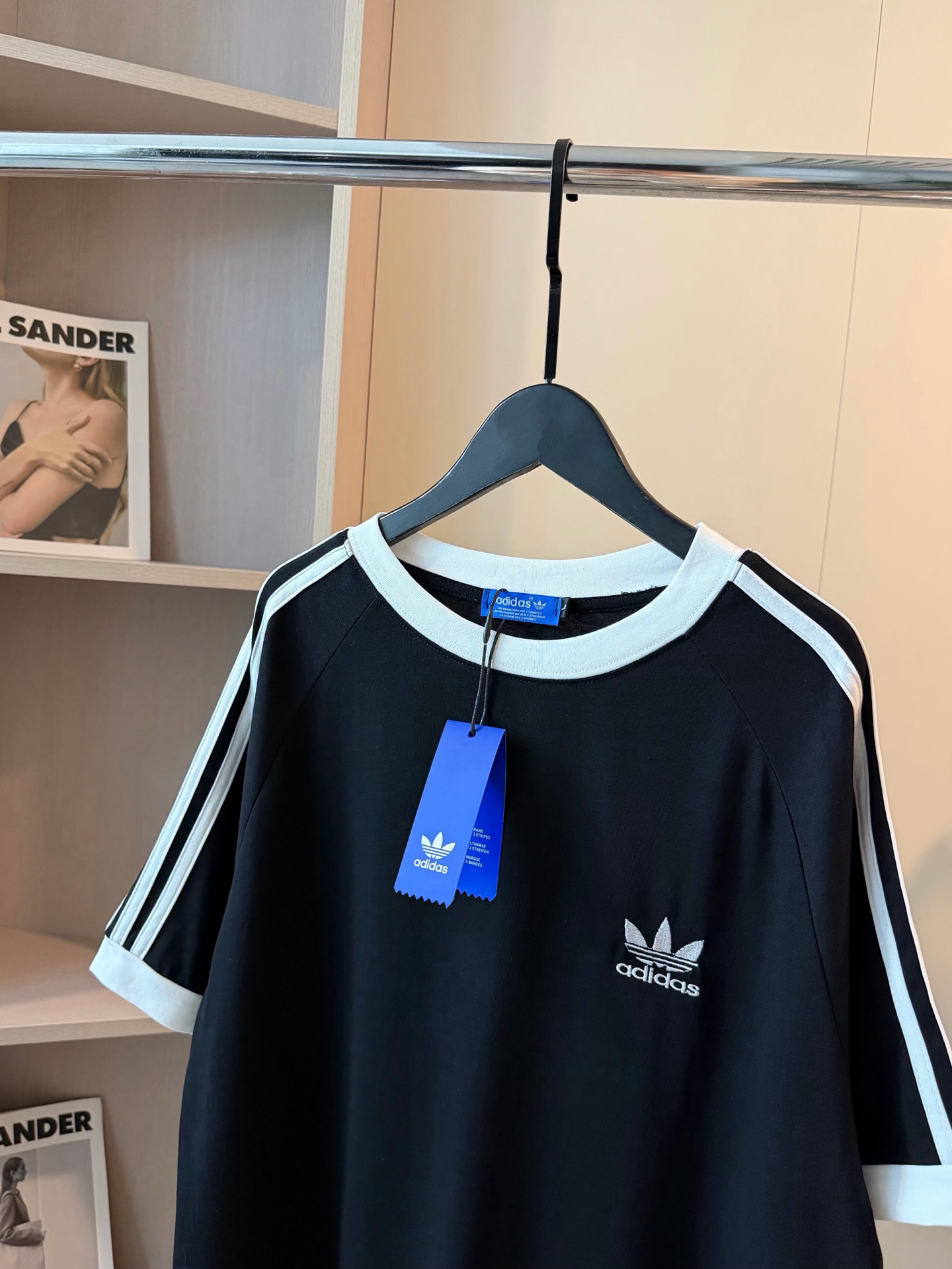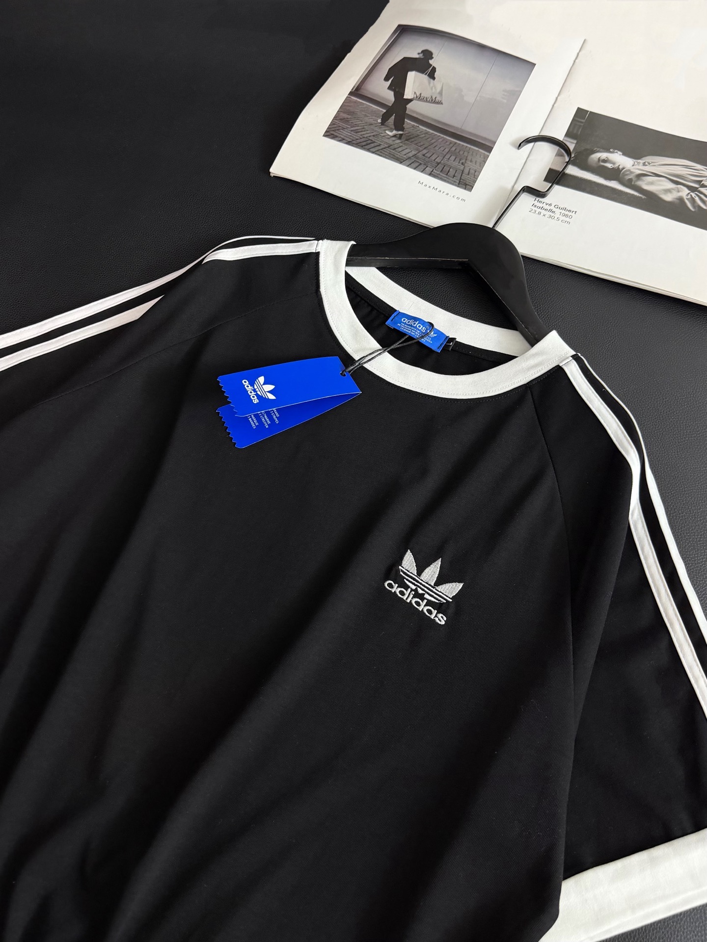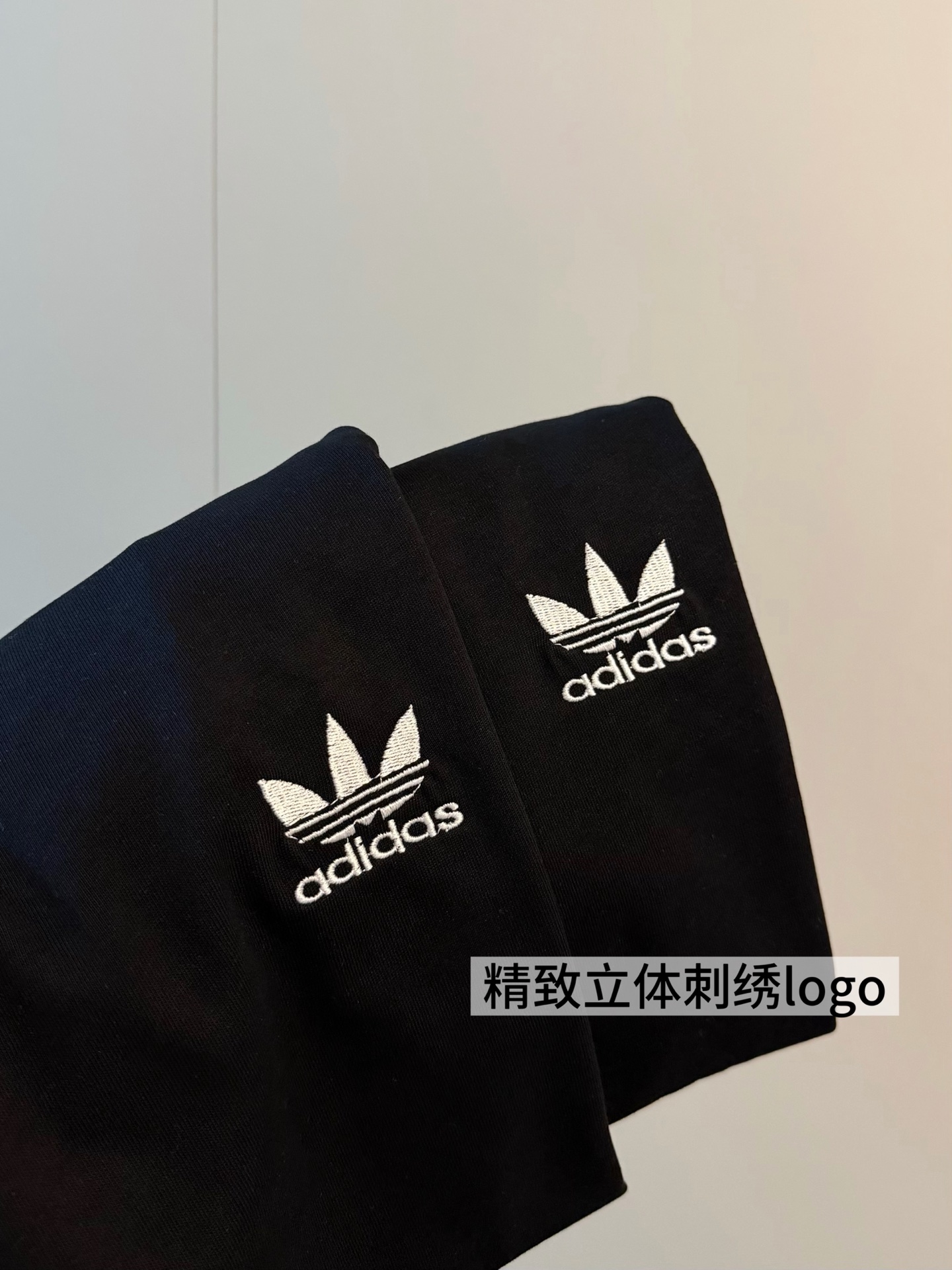 Adidas三叶草新款拼色重工刺绣logo织带短袖