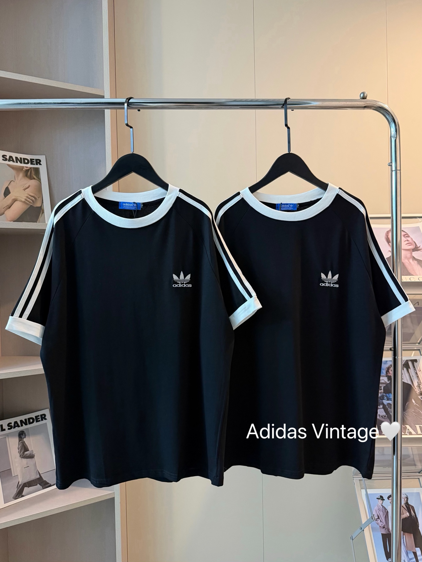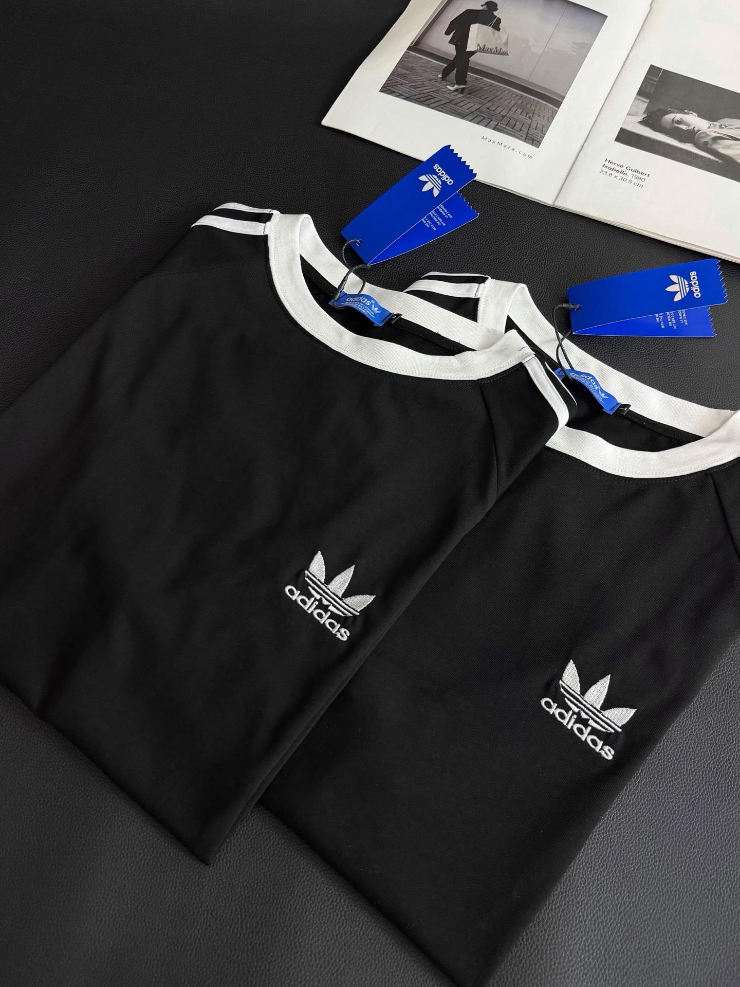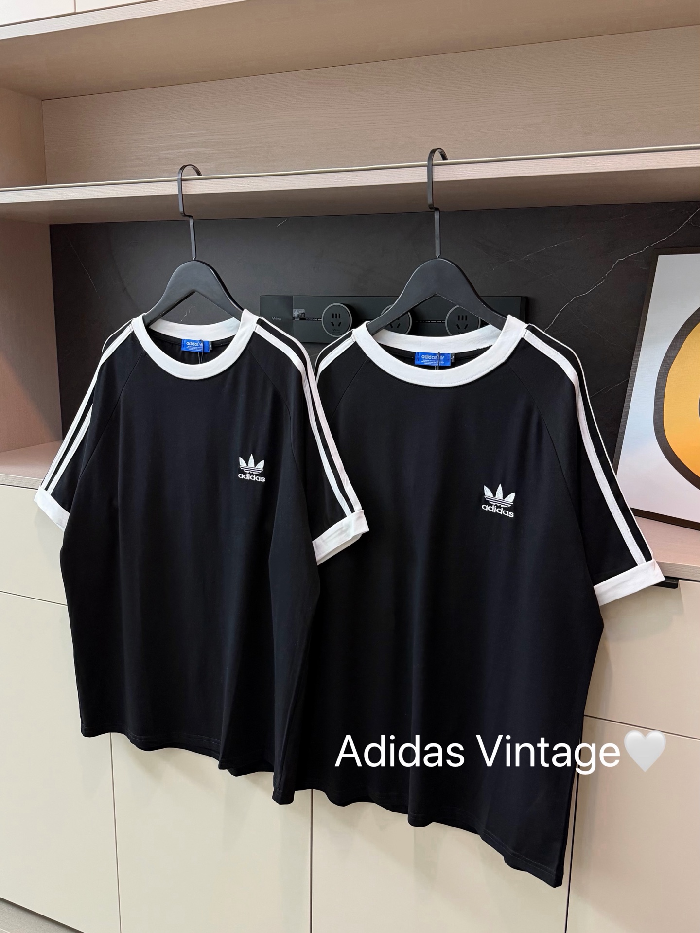 Adidas三叶草新款拼色重工刺绣logo织带短袖