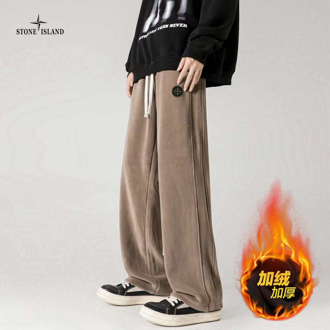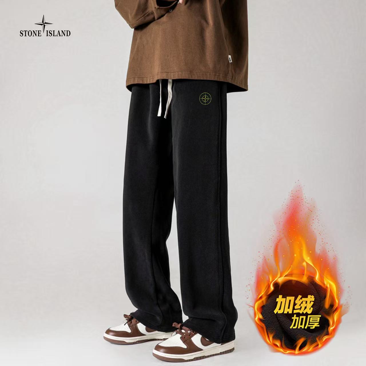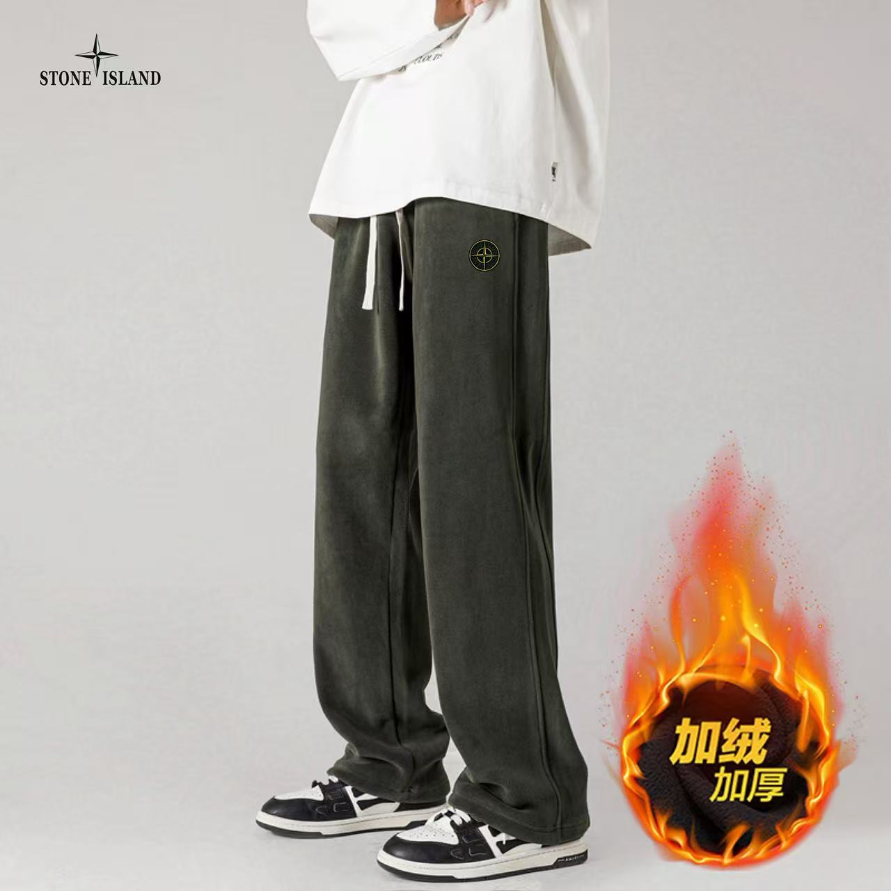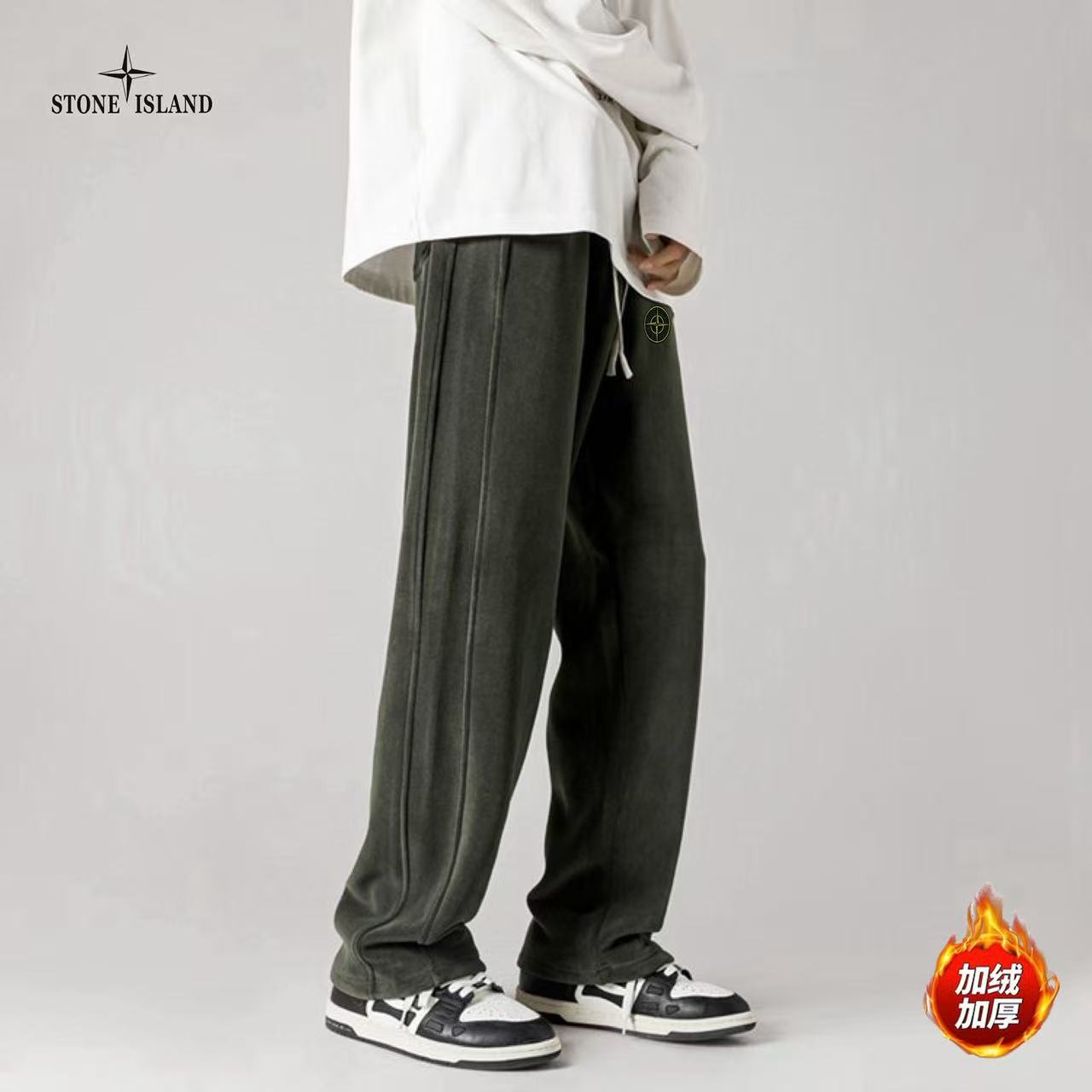STONE ISLAND石头岛海外版25ss新款五色高品质奥粒绒加绒加厚拼接宽松休闲裤