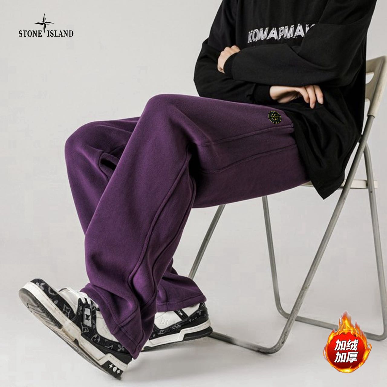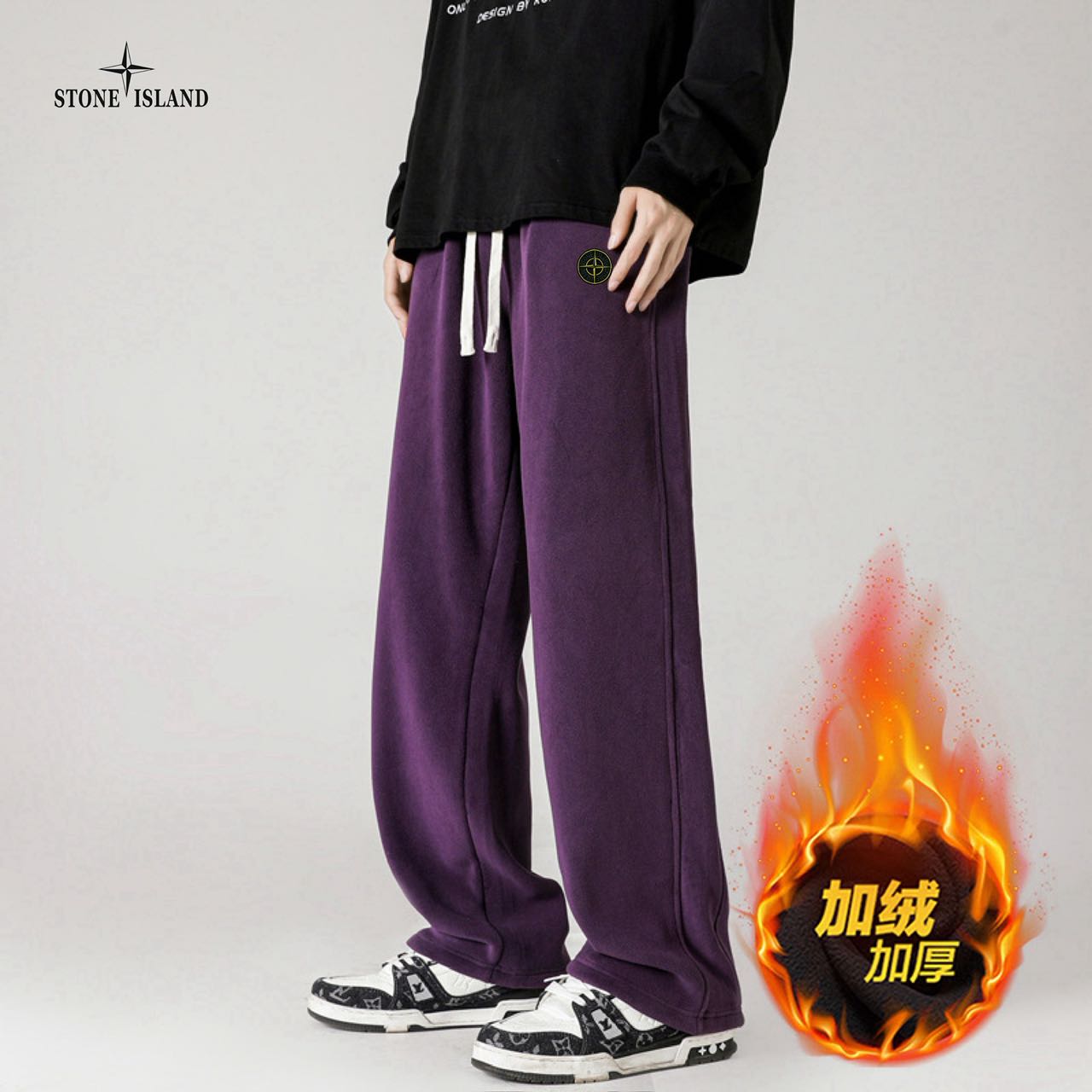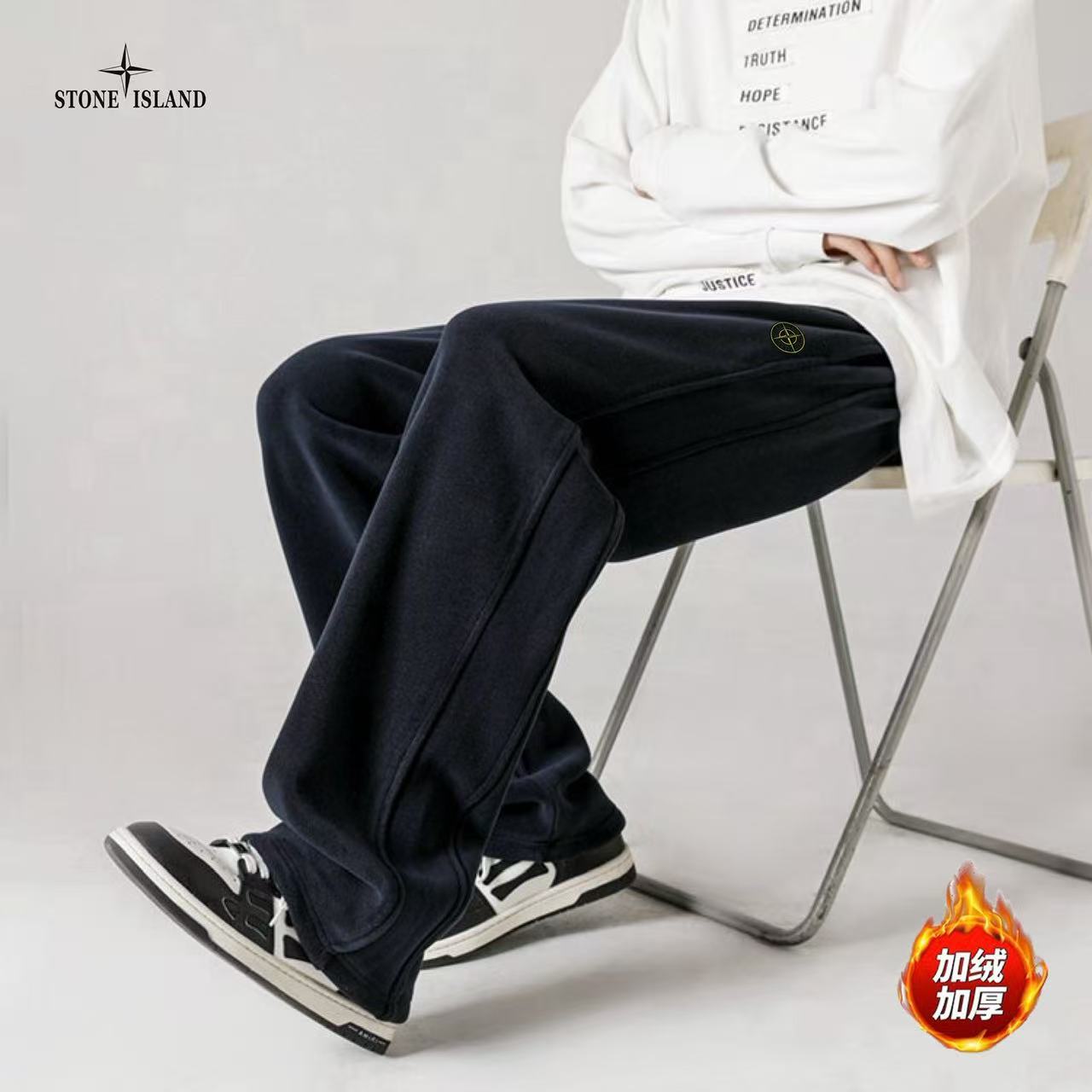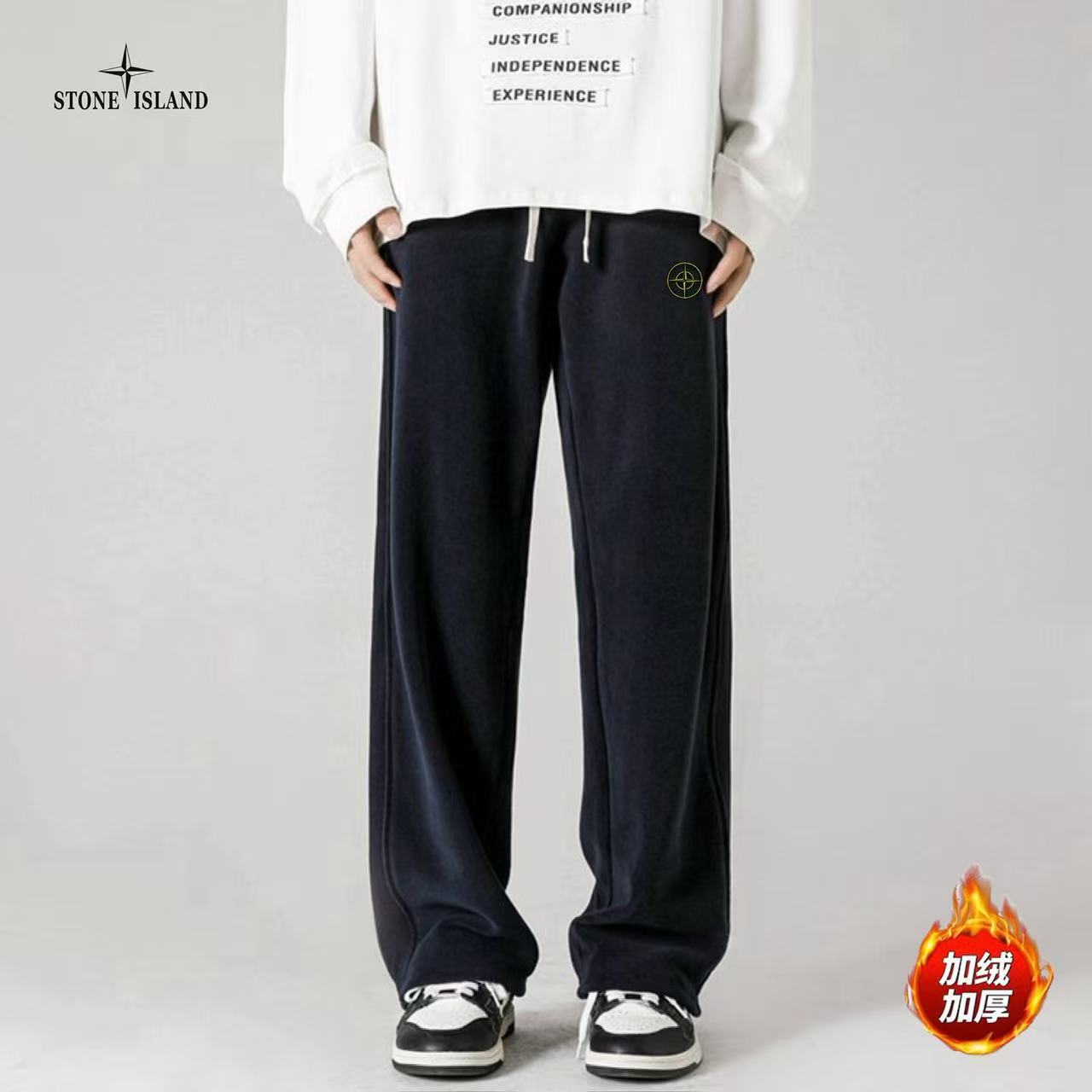 STONE ISLAND石头岛海外版25ss新款五色高品质奥粒绒加绒加厚拼接宽松休闲裤