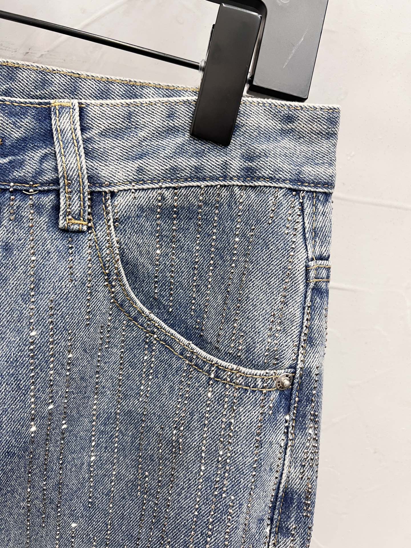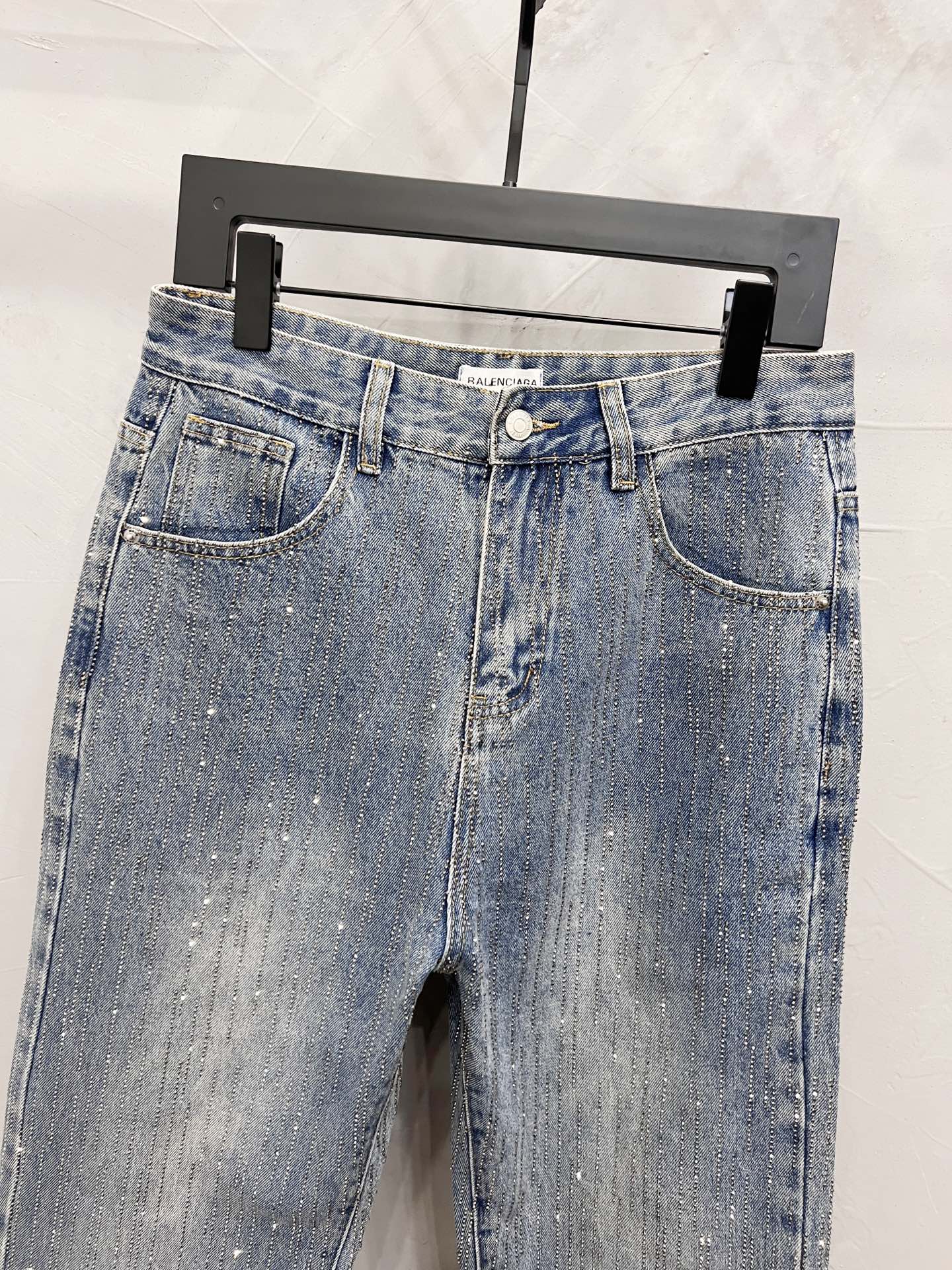 Balenciaga巴黎世家限定款镶钻满钻烫钻牛仔裤