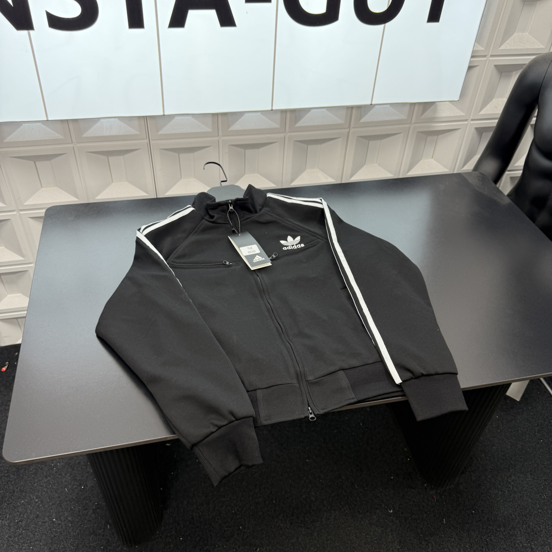 春季新款上新爆炸输出AD阿迪达斯立领外套 胸前刺绣三叶草字母Logo 袖子经典三道杠 三标齐全官网一致 放大看细节原相机实物拍摄 颜色 黑色 尺码 L 4xl L 80 105斤 XL 105 120斤 2XL 120 140斤 3XL 140 160斤 4XL 160 180斤