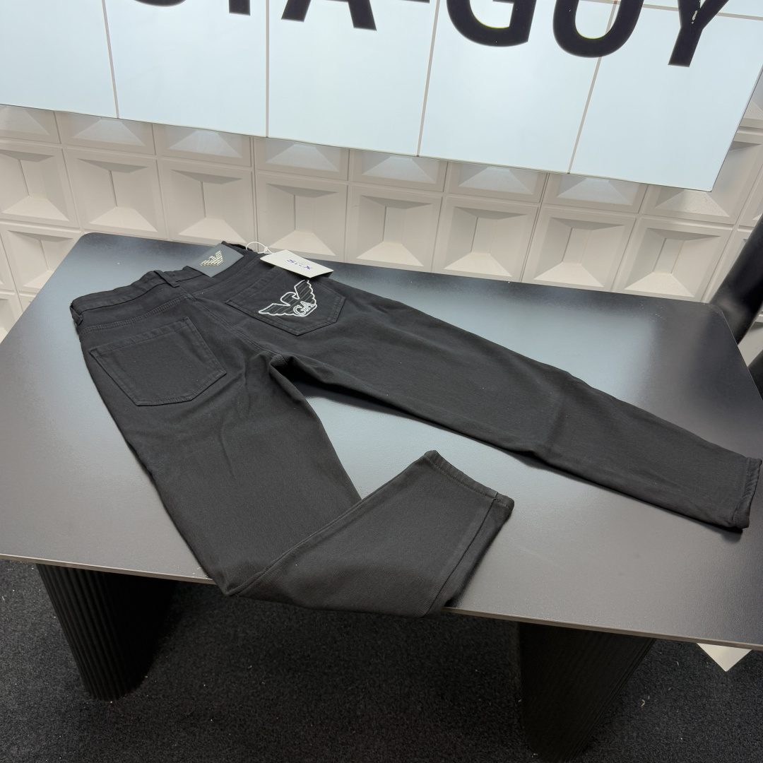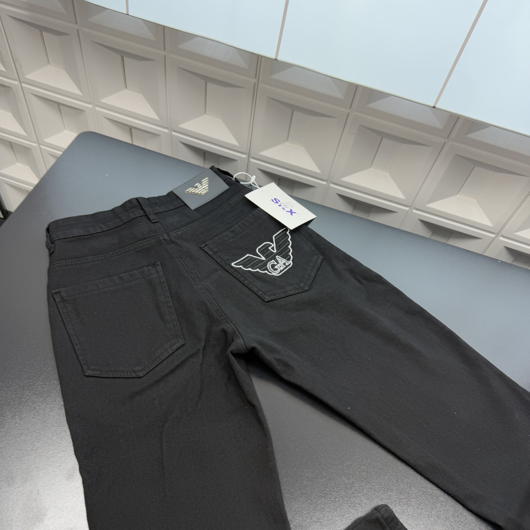 秋冬爆款热销款推荐EA7阿玛尼加绒牛仔裤 口袋刺绣老鹰字母 钢印皮牌小黑牛 三标齐全官网一致 放大看细节原相机实物拍摄