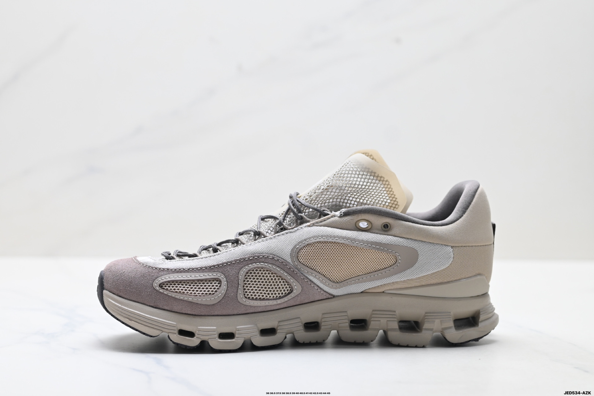 采用工程飞织网布组合再生聚酯纤维鞋面材质搭载独家隐藏速度中板 镂空CloudTec科技