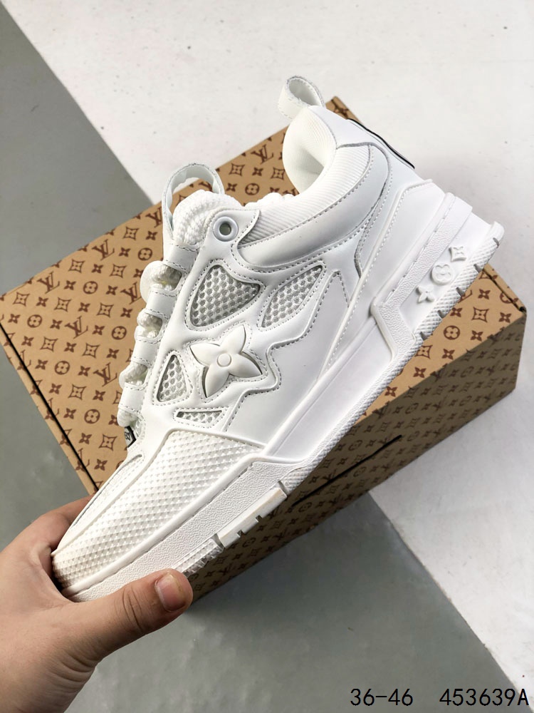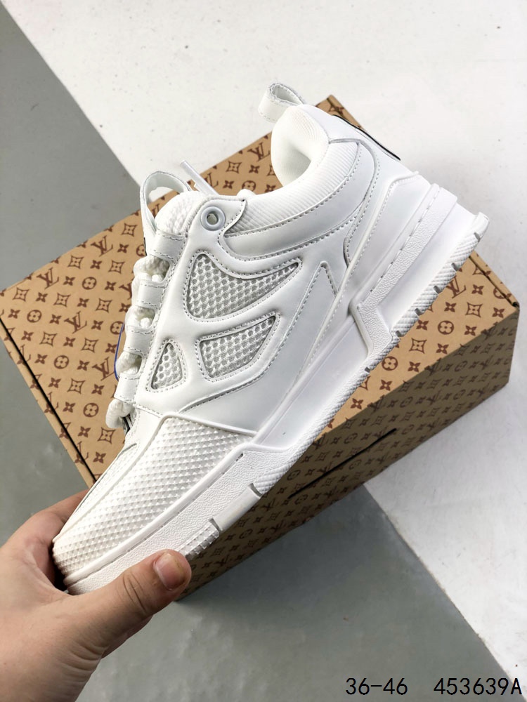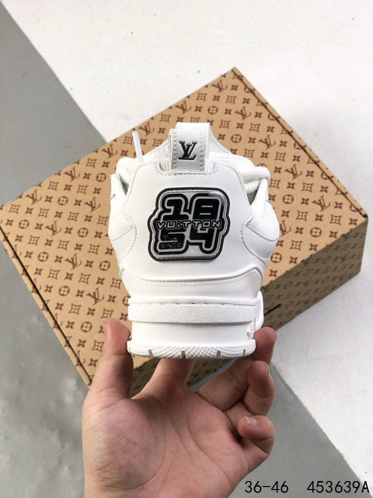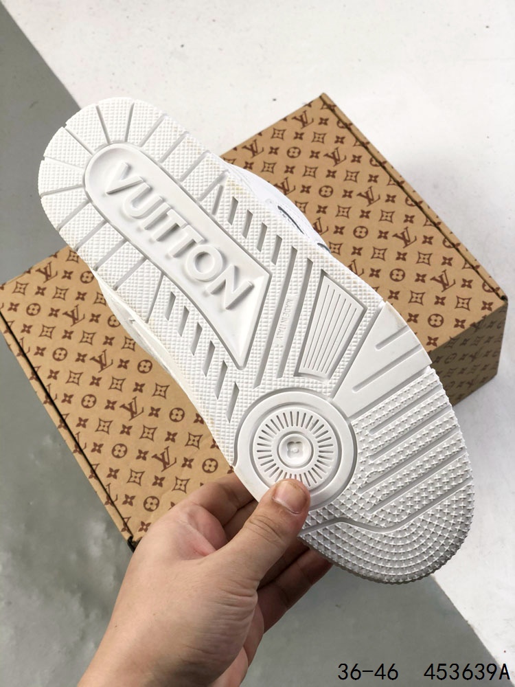 公司级 LV路易威登Louis vuitton Trail Sneaker Low 休闲运动文化百搭篮球板鞋 致TPR光泽鞋底 耐弯折滴塑支持片 鞋垫嵌入超软脚感乳胶材质的篮球鞋 Size 如图所示 ID 453639A