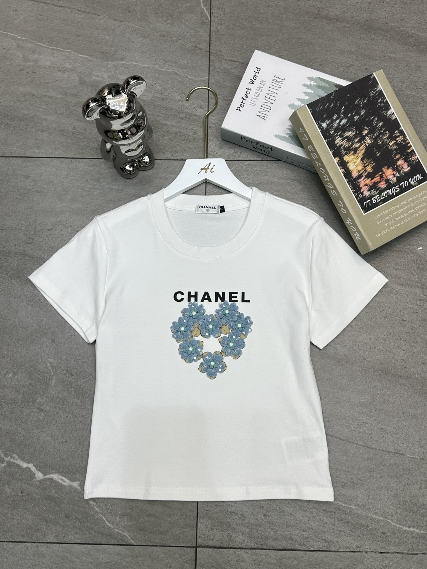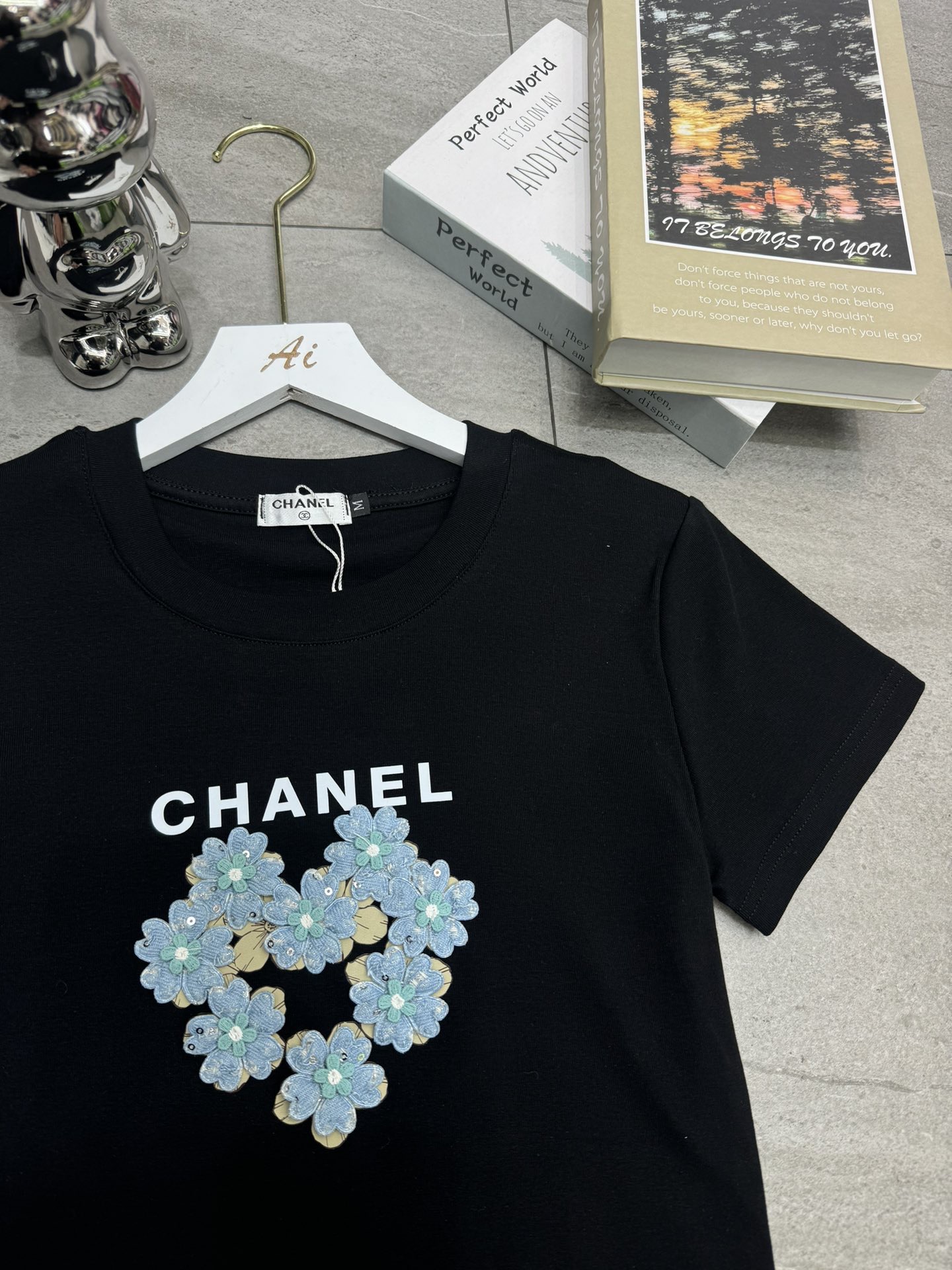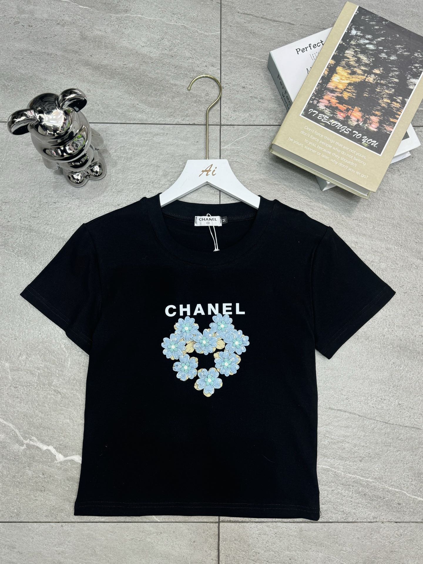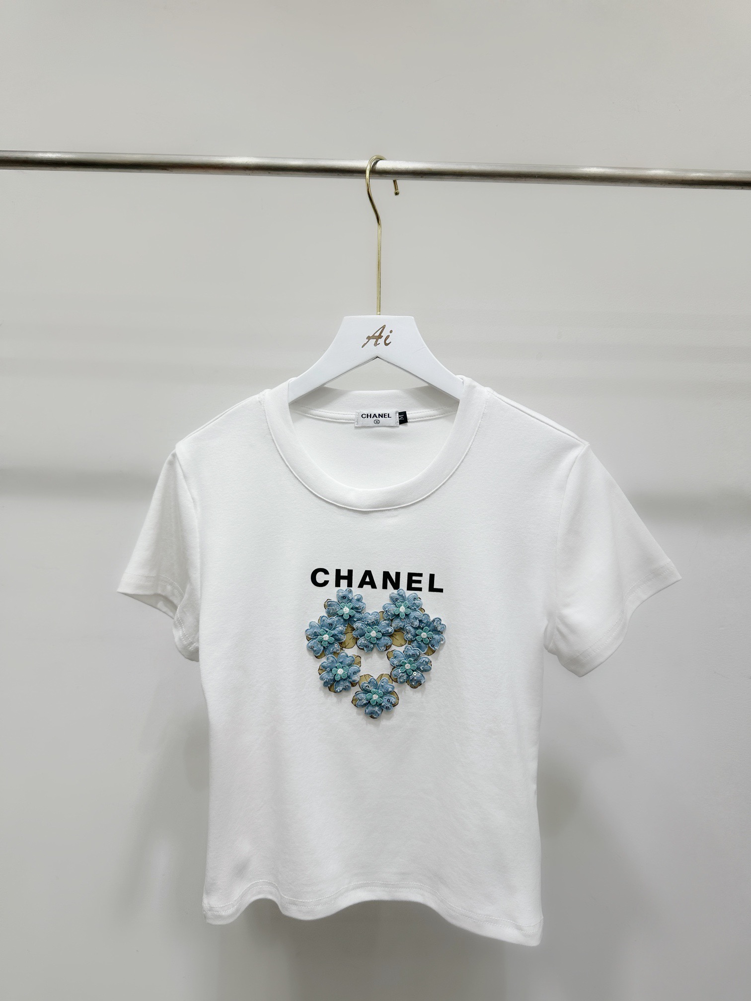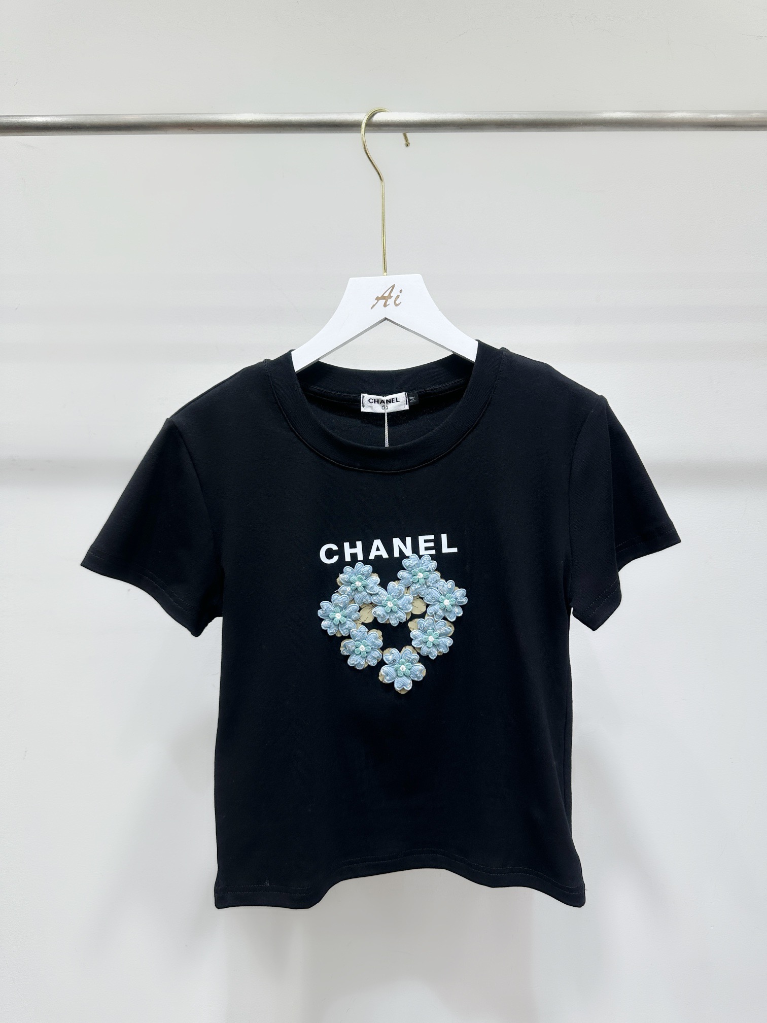 Chanel香奈儿小香字母印花立体花朵圆领短袖T恤