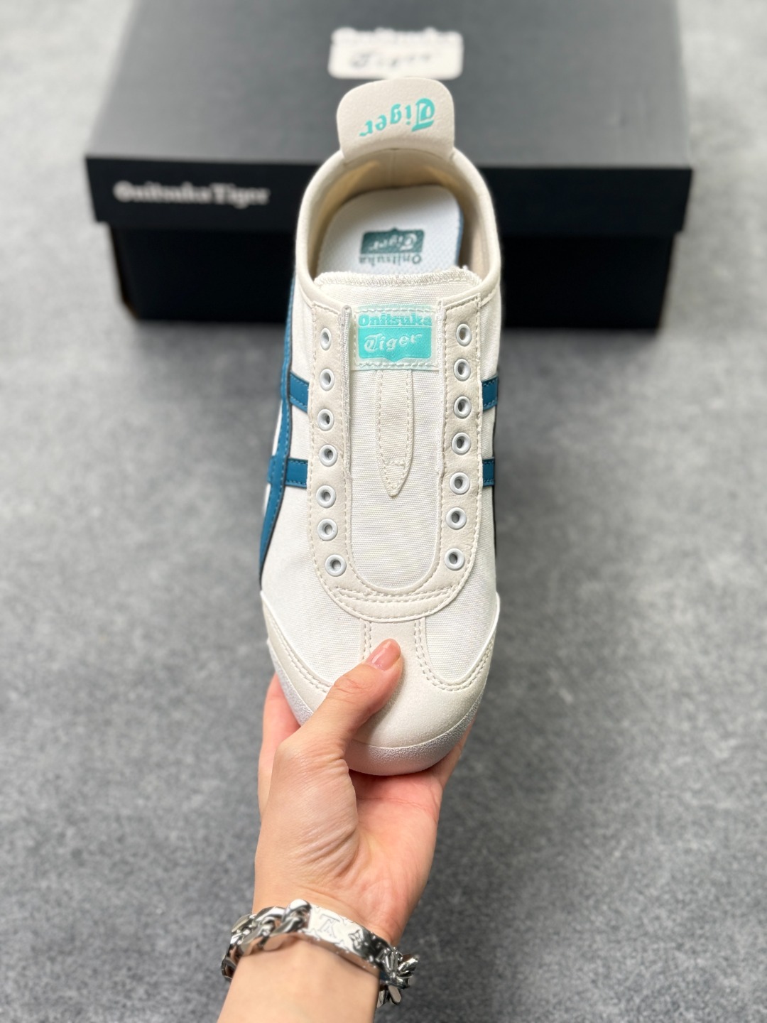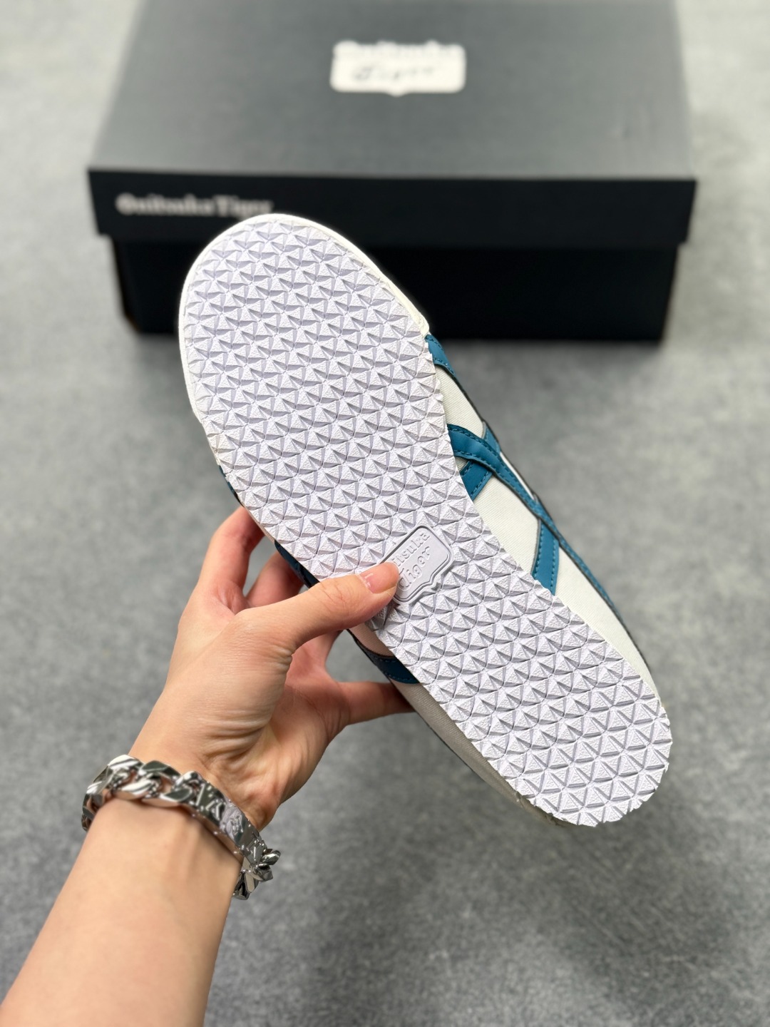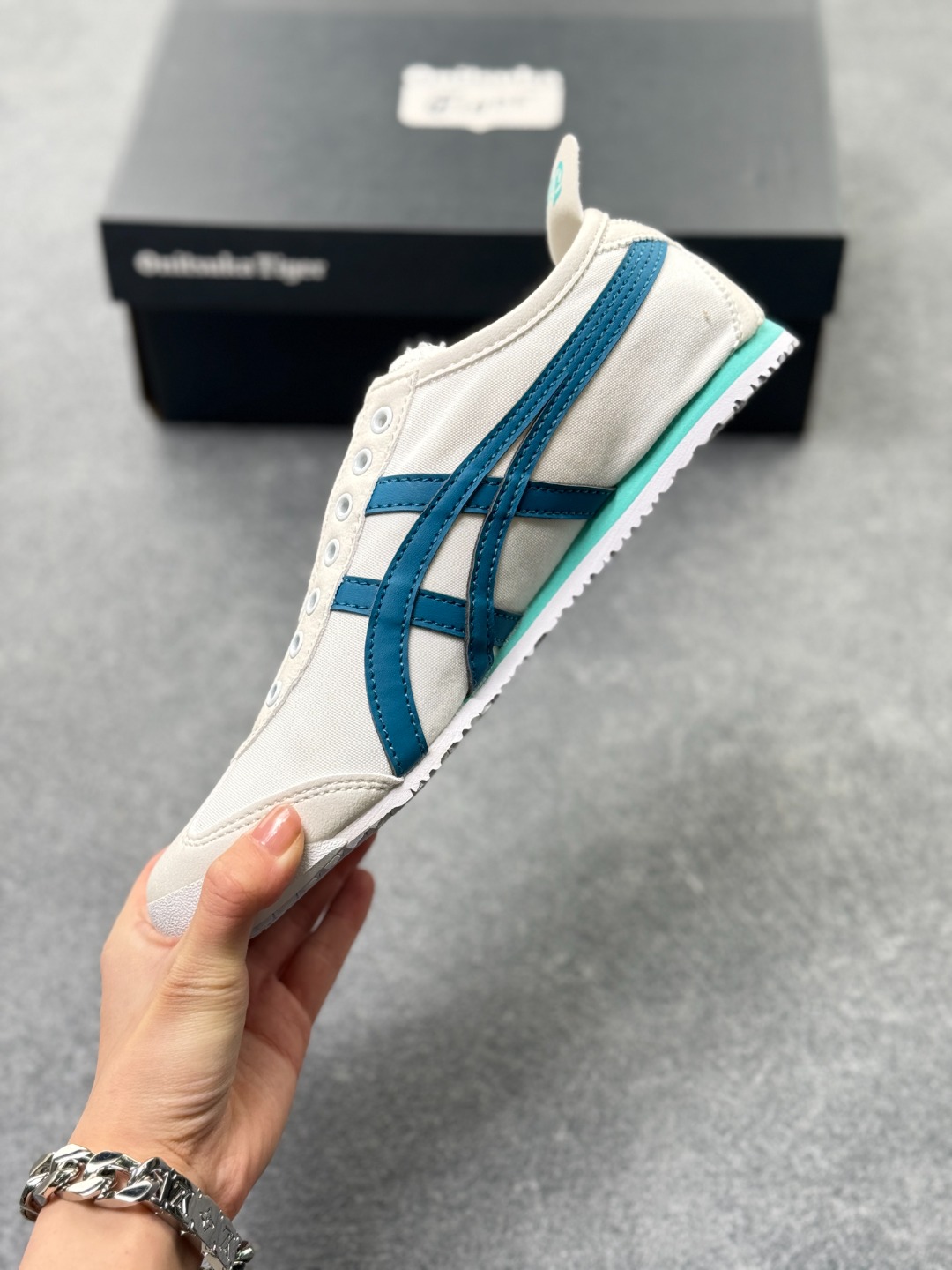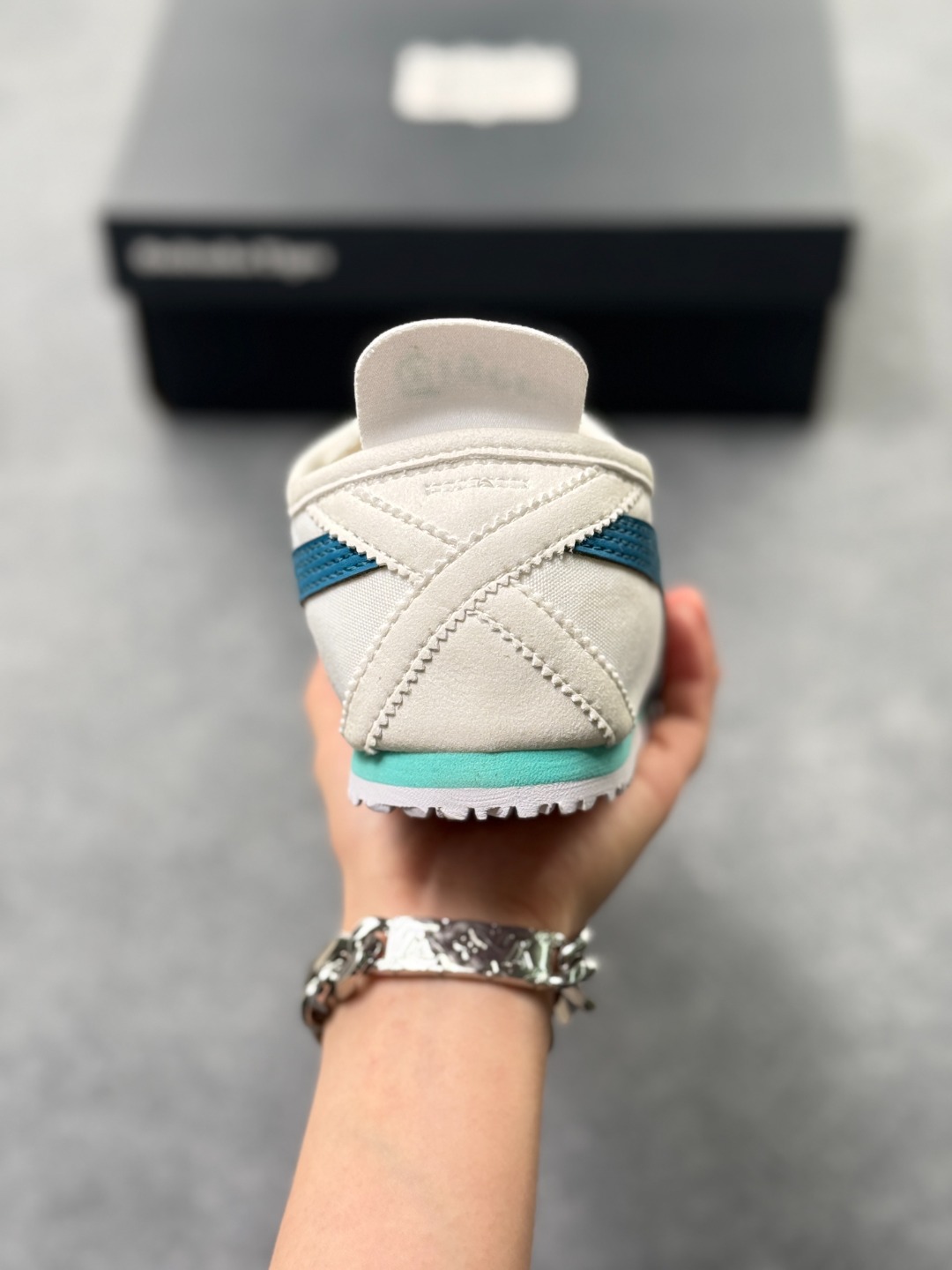 材质与设计 鞋面采用帆布鞋面 部分款式为拼接设计 既保证了透气性 又增强了耐用性 鞋型纤细 基于上世纪60年代的经典跑鞋风格 低帮设计搭配标志性的鬼塚虎条纹 简约时尚 后跟部分通常有X型部件设计 增强稳定性