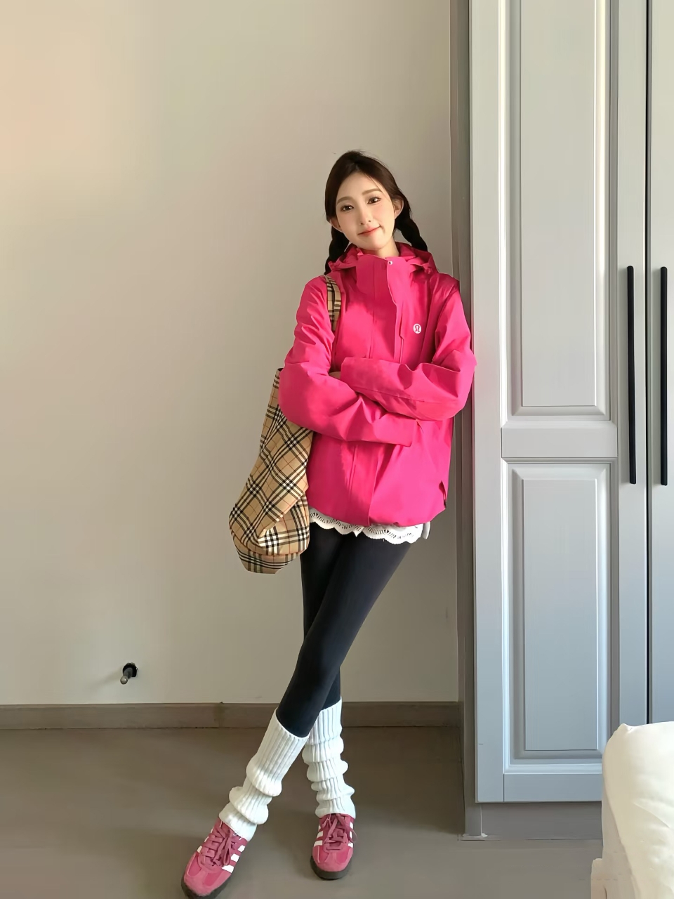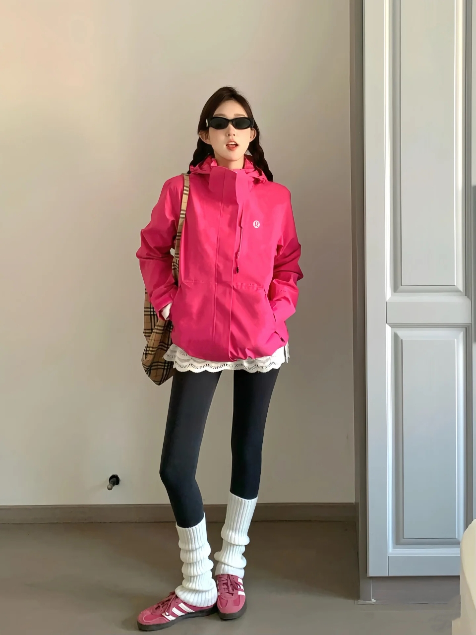 一眼沦陷 lululemon 电光玫红三合一冲锋衣 户外显眼包天花板
