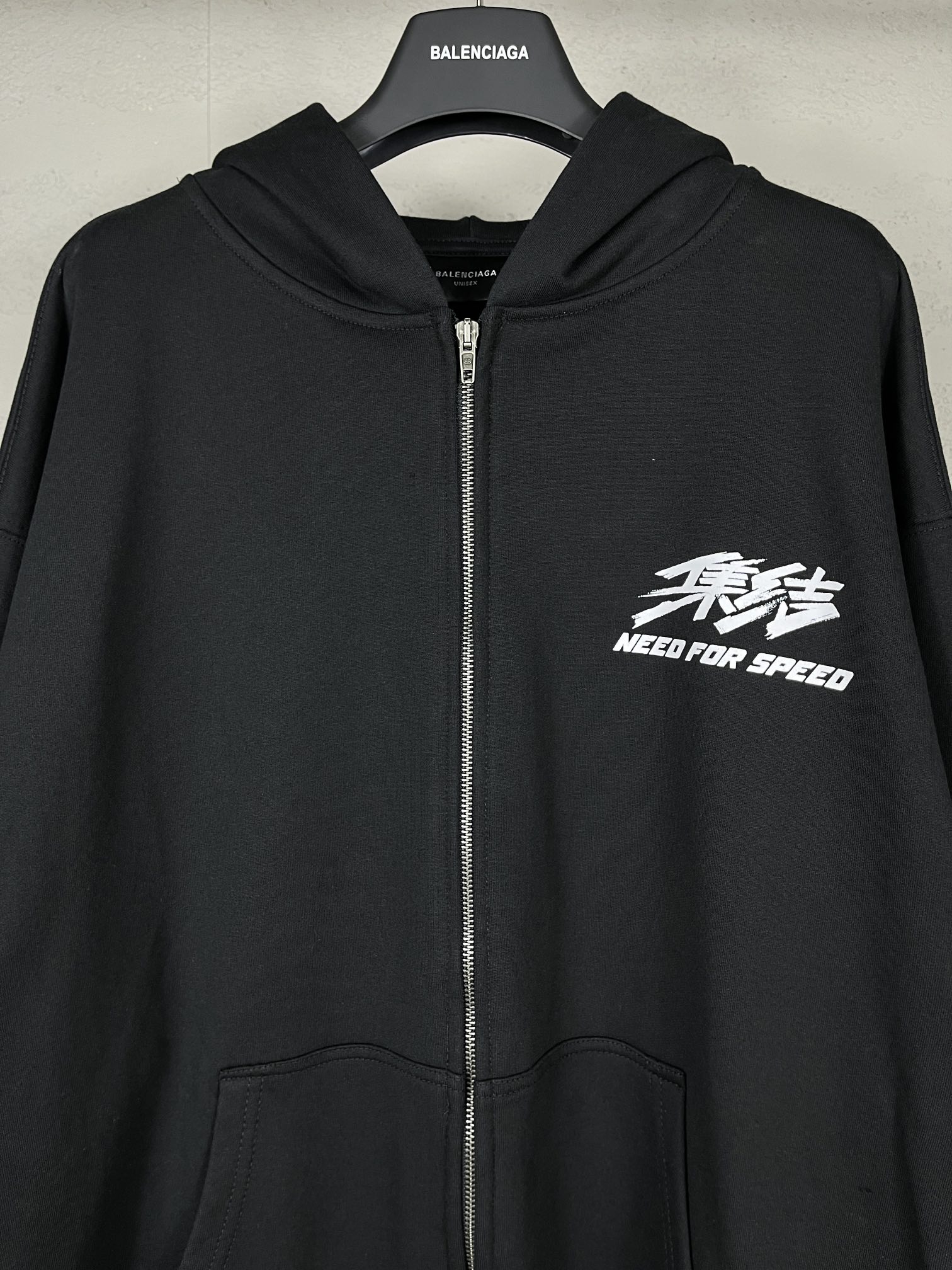 实拍图 顶级版本 官网品质 BALENCI GA 巴黎 SS24新款Balenciaga 极品飞车 集结合作系列 前后直喷印花拉链开衫连帽卫衣 砖柜同步 第一时间正品研制 欢印对比 面料采用巴黎ZP定织定染全棉大卫衣 克重460克 布面干净 布纹清晰 柔软舒适 螺纹釆用定染无色差 印花采用环保进口材料自墨直喷 图案字母清晰 效果立体 版型釆用OS宽松落肩版型 男女同款