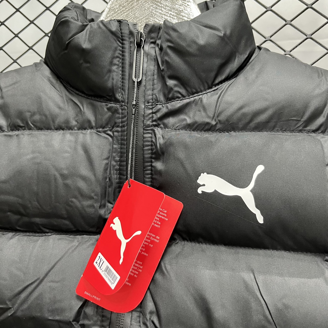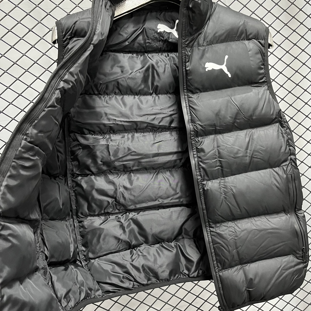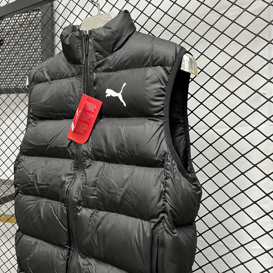 上新 得物品质 现货 PUMA 彪马马甲 纯色Logo印花 防风拉链羽绒棉马甲 立领无袖 马甲 厚实 蓬松保暖马甲