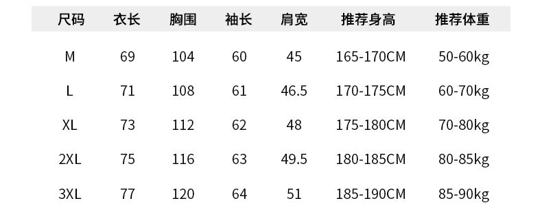 尺码 M 3XL