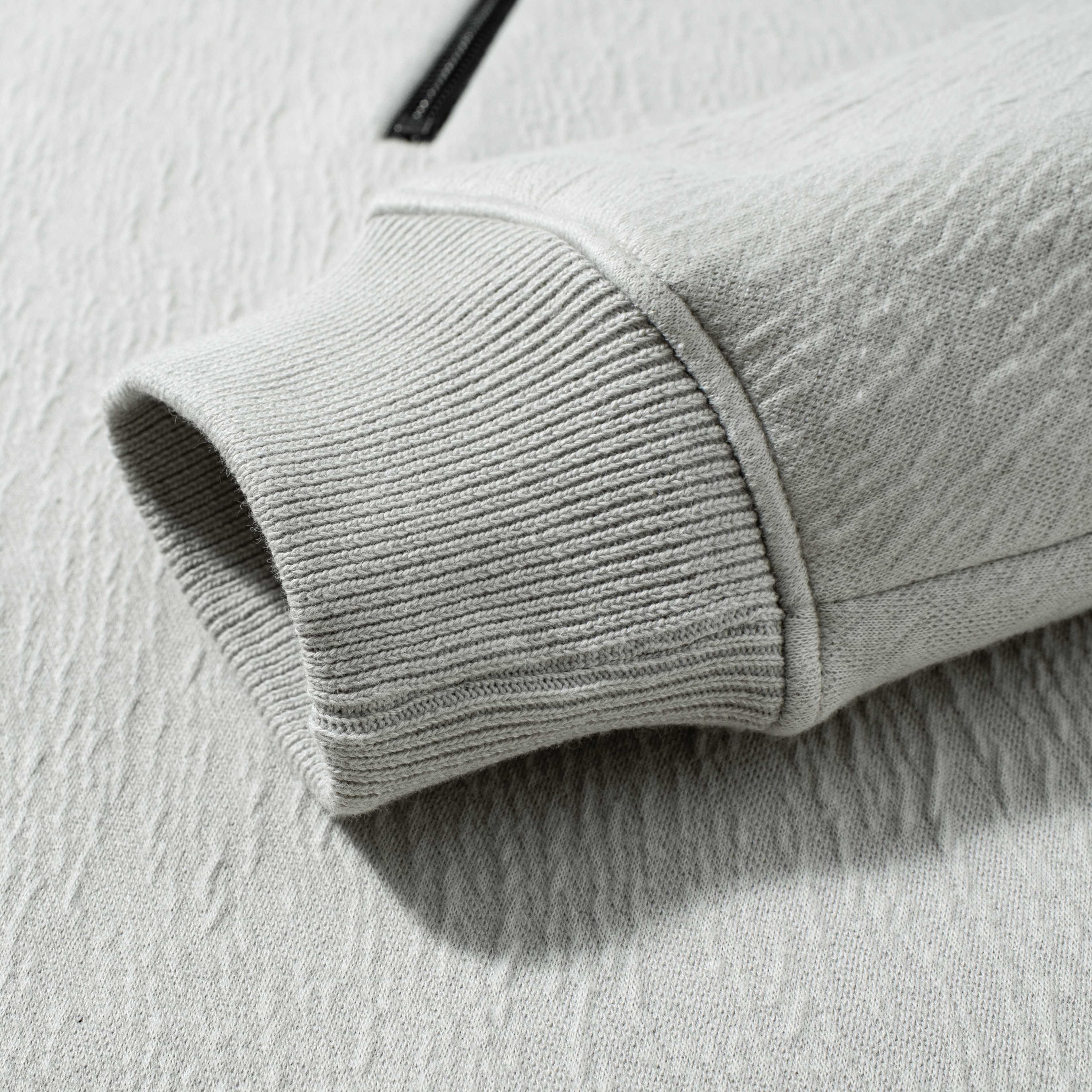原单品质 秋冬必入 立领半拉链设计 甄选380克高品质加绒面料 防风保暖 质地细腻厚实 手感挺括 富有光泽肌理感 透气性良好 穿着柔软舒适