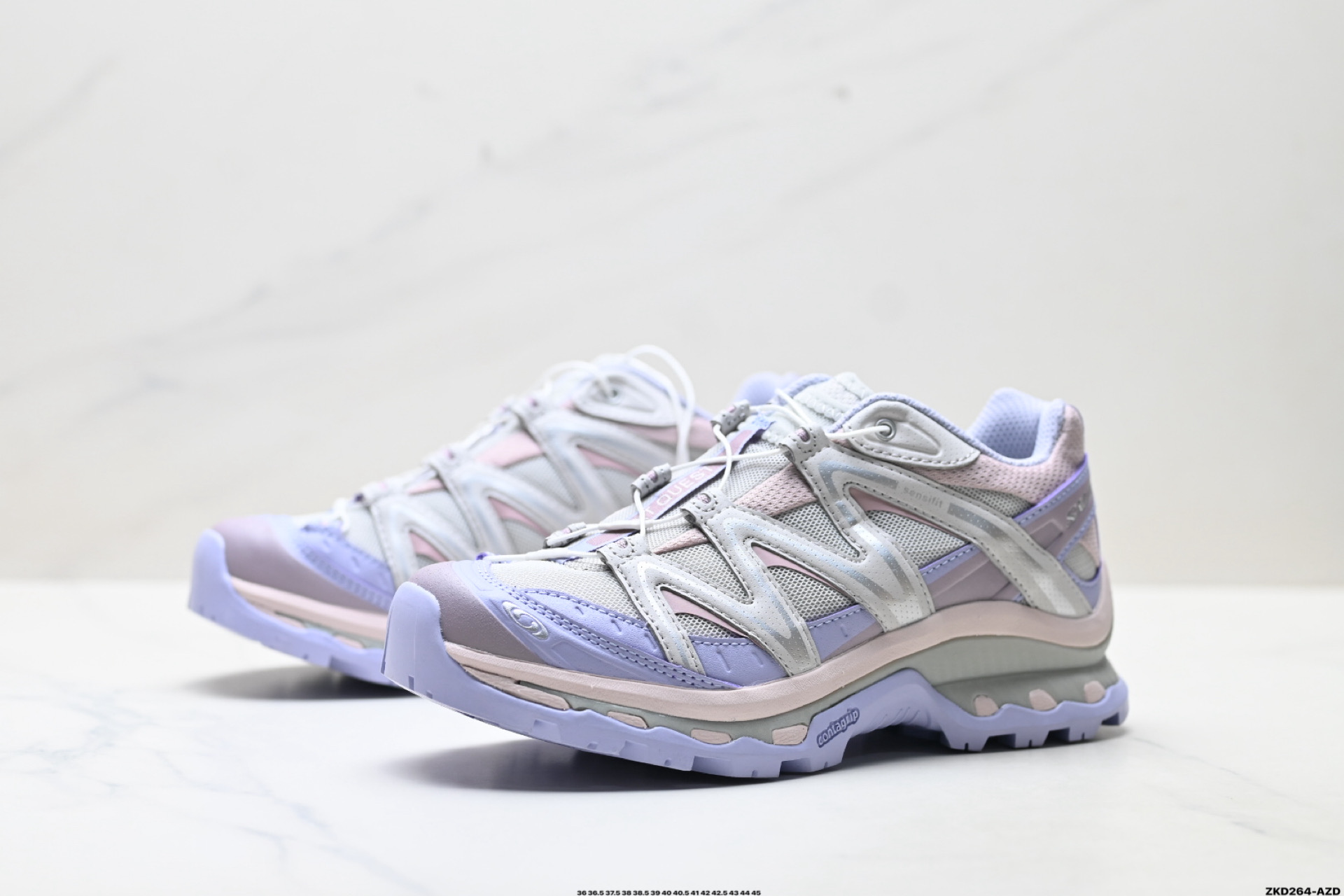 鞋面采用SENSIFIT贴合技术 全方位贴合包裹脚型 鞋跟部鞋底牵引设计 提供强大的抓地性能 更适应野外崎岖不平的道路 其3D ADVANCED CHASSIS底盘 材料轻量大化 钉齿设计更具稳定性 防护性 鞋底易磨损区运用CONTAGRIP高耐磨材料 应对城市硬质路面长距离跑考验