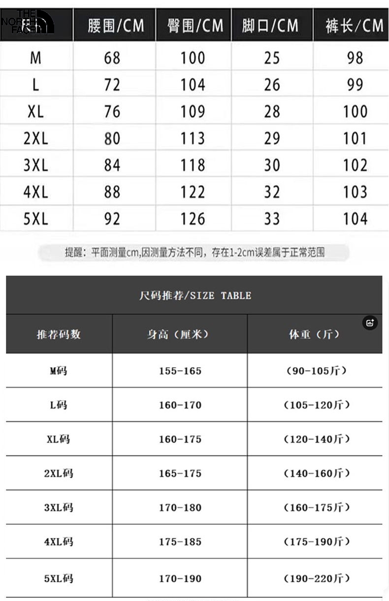 此款售后明年 北面The North Face冬季新款 男女同款松紧腰加绒加厚博奥绒超保暖束脚裤 男士休闲裤 保暖裤