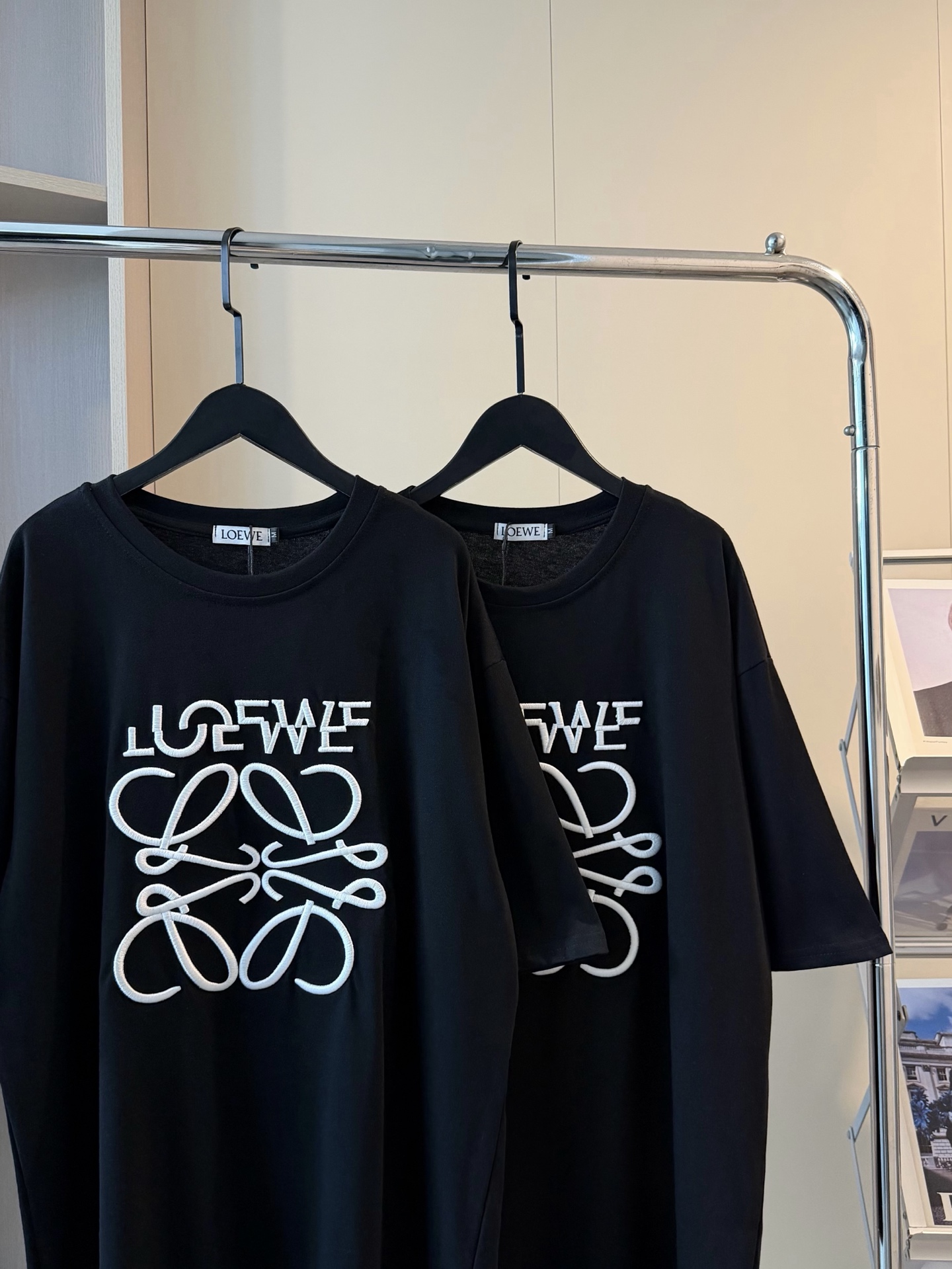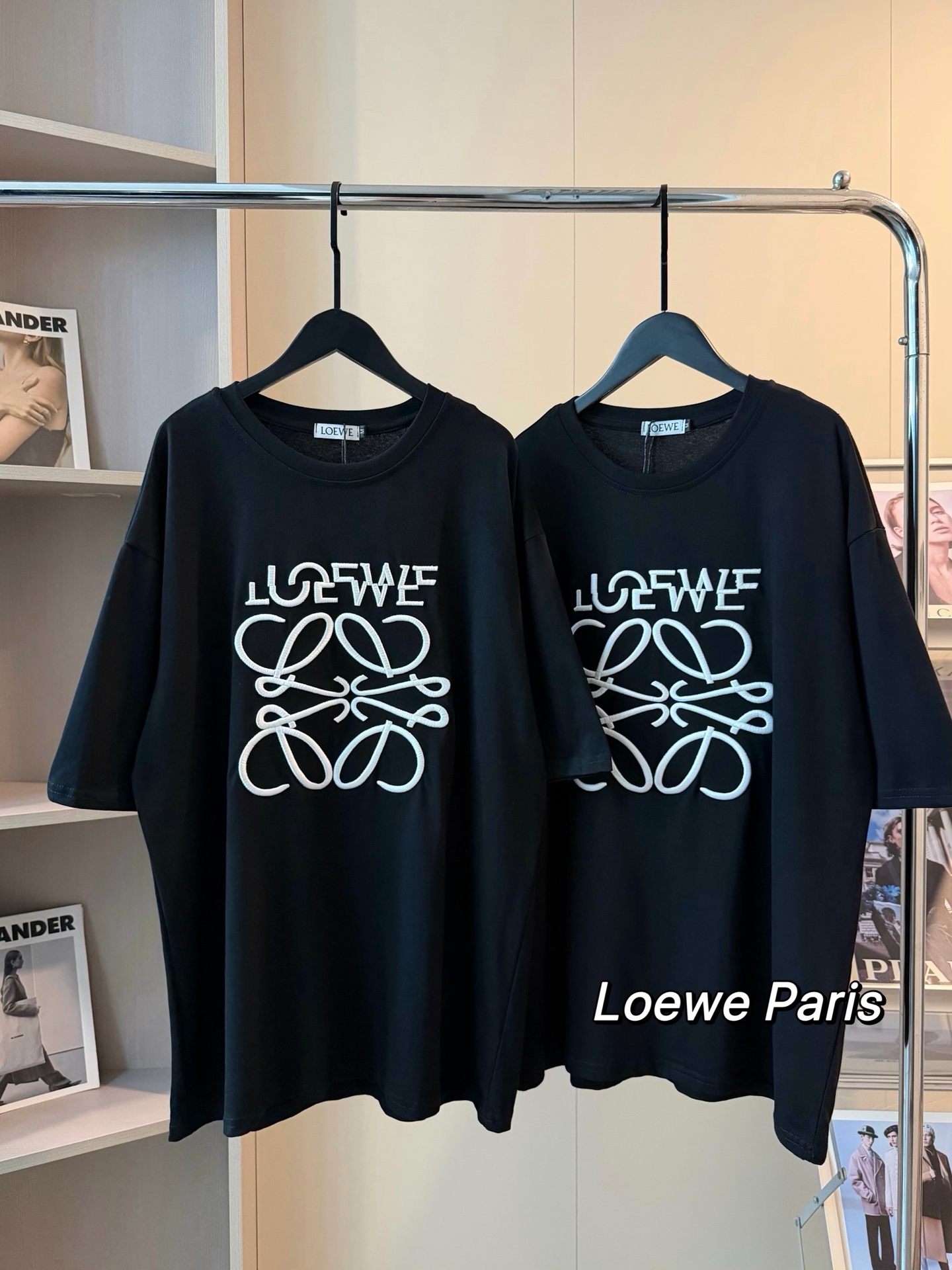 Loewe罗意威新款限定重工刺绣错位logo短袖T恤