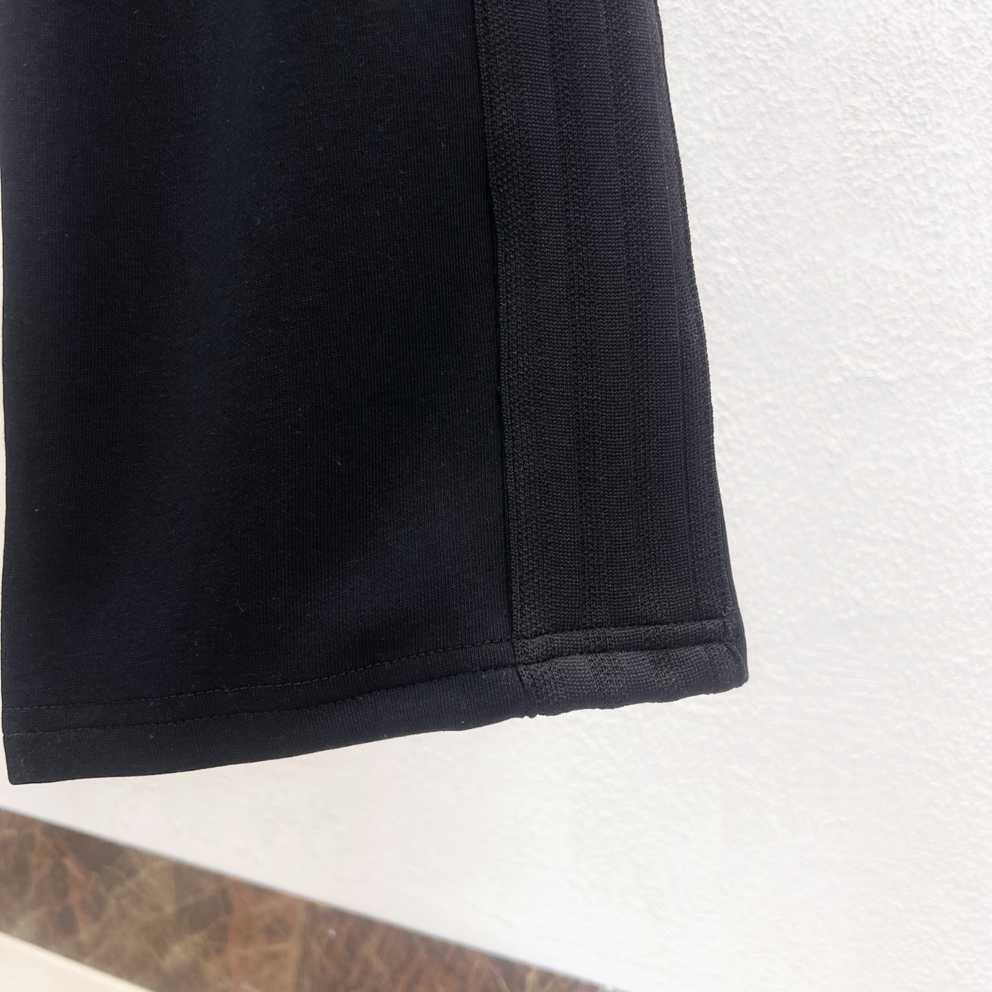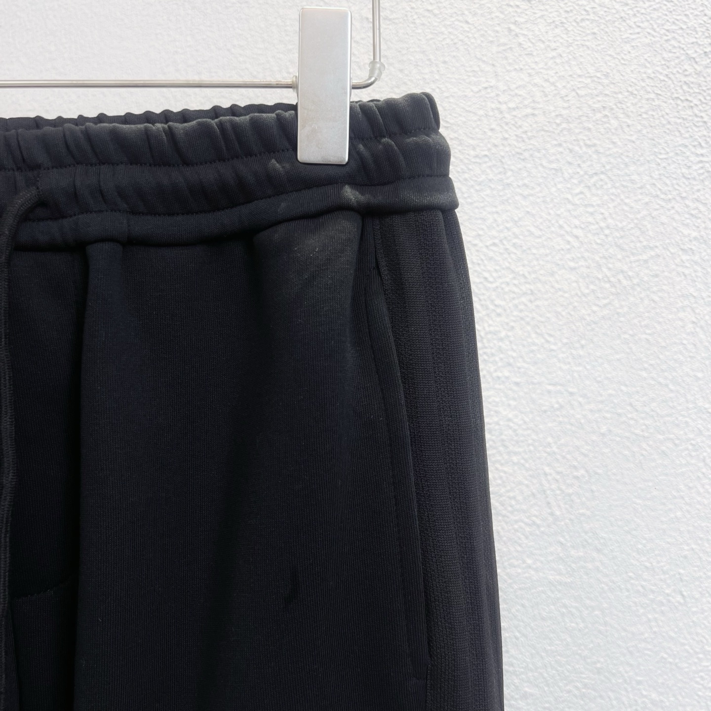 定织400可复合纱线 坯布水洗手感 布面 垂感达380g 同缸染色面料定色定染 印花无毛边 还原一致拉腰线 国内双针机器改装珩线 看似简单的款式 小细节特多 脚口22螺纹专业