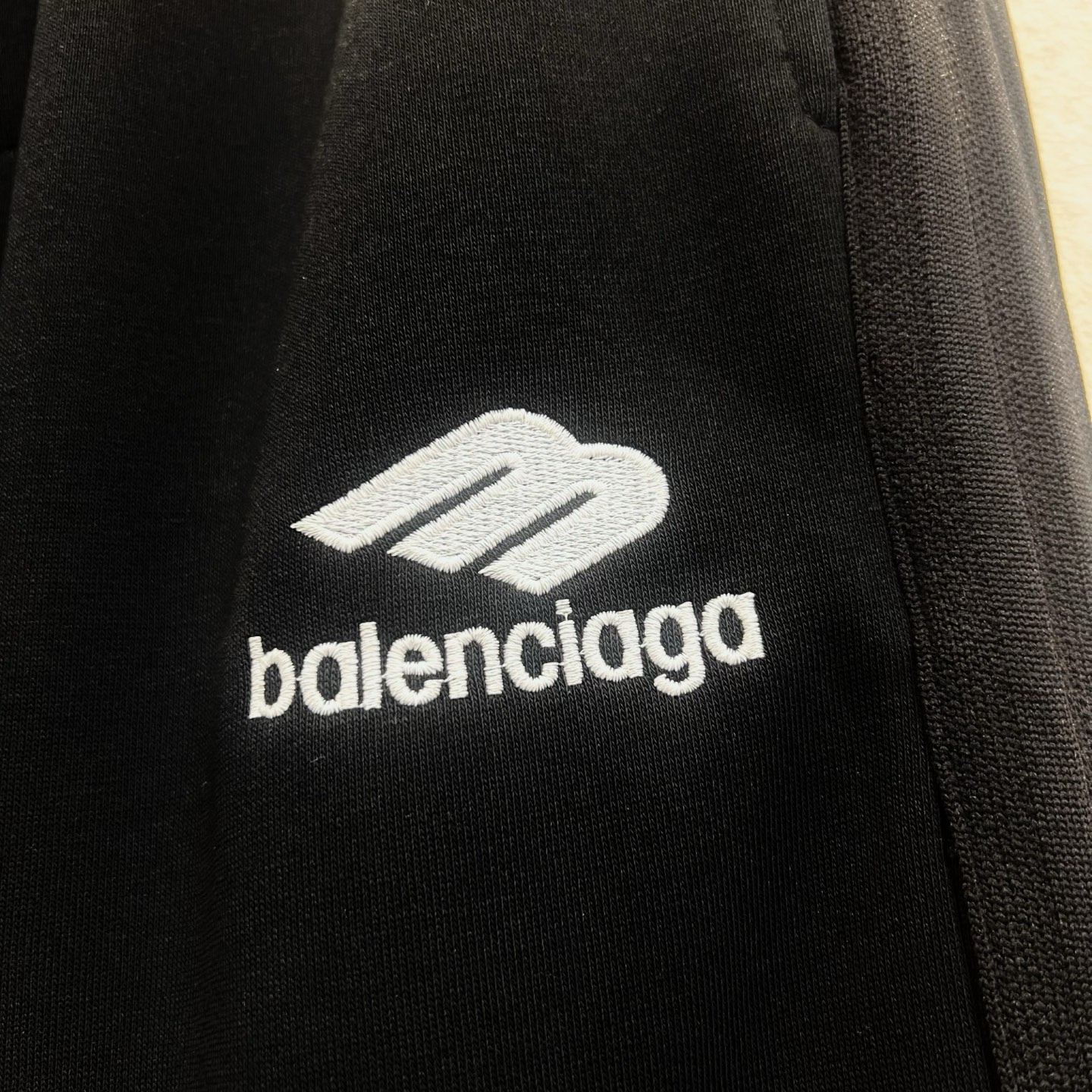 Balenciaga巴黎小标刺绣侧边织带直筒长裤