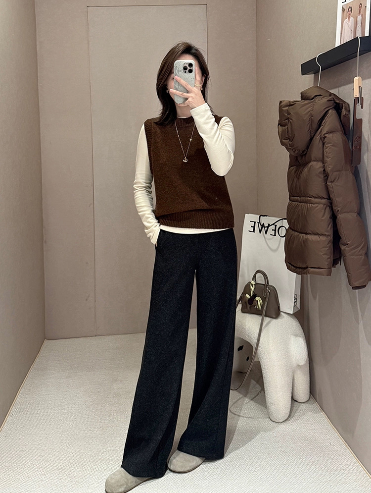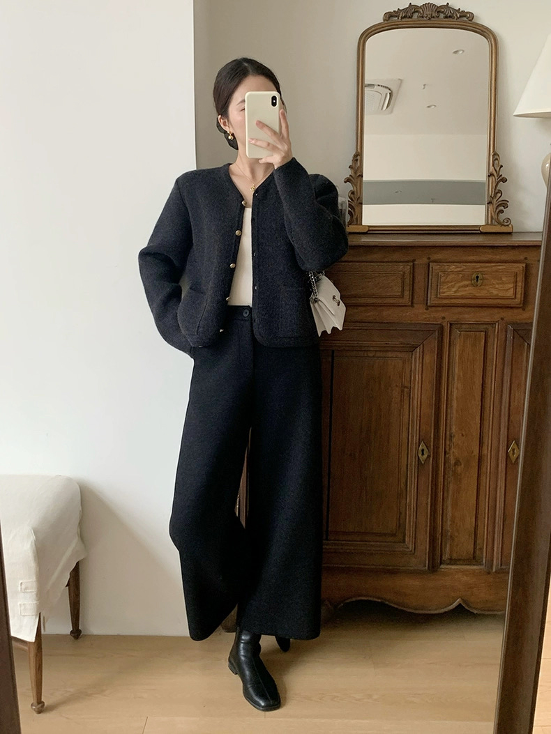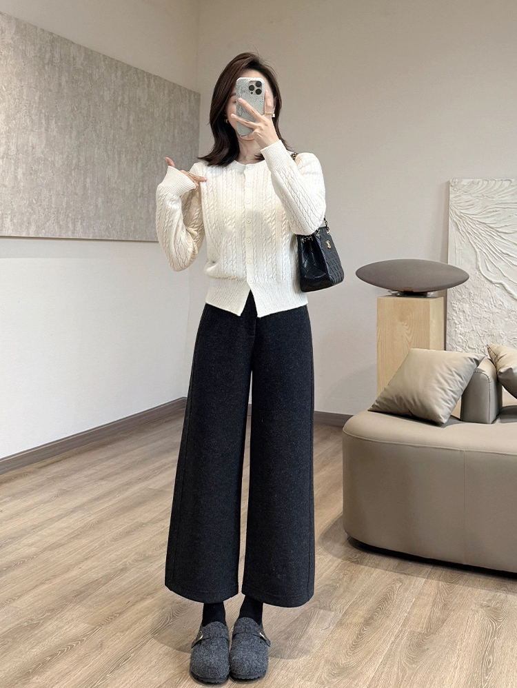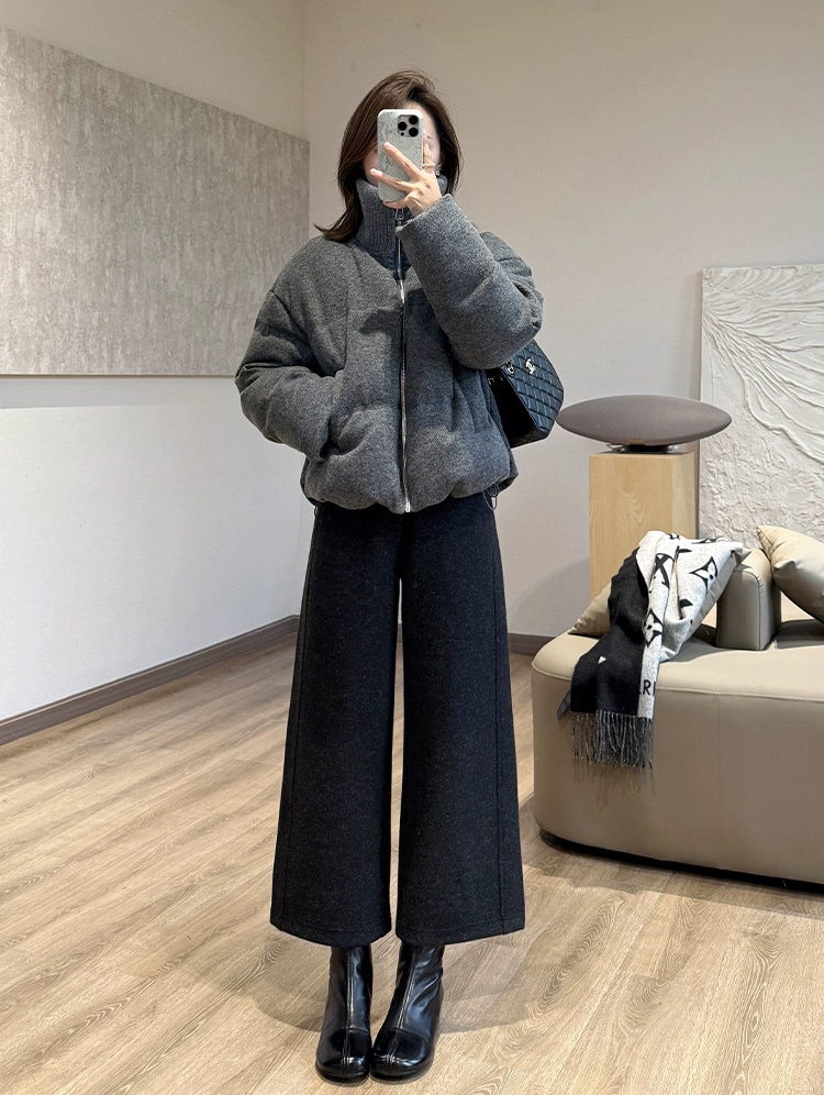 科技热力火山岩暖绒 冬季新款气质时髦八分裤 阔腿长裤