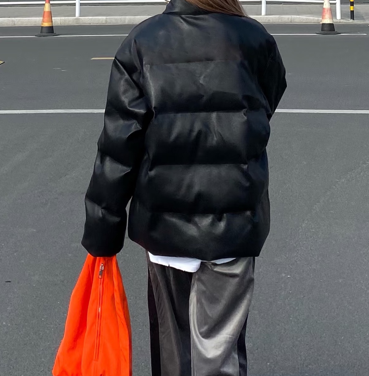 甄选意大利进口PU皮 纹路手感超级棒 防风防水 油渍灰尘可直接用纸巾擦干净 非常好打理 懒人必备 内置羽绒棉 超级保暖 配合外层PU皮封锁热量 单品可抗零下30度极端寒冷天气 版型带有高级气场 内里采用暗纹密织里布不脱丝 我们精心挑选了进口橫贡精梳棉 每立面抗寒锁温度极高 确保轻盈蓬松 分布均匀 拒绝棉衣穿久了成坨 采用570g充棉 区别市场便宜货廉价的低版本 比那种低端货厚两倍 可随意对比品质和克重
