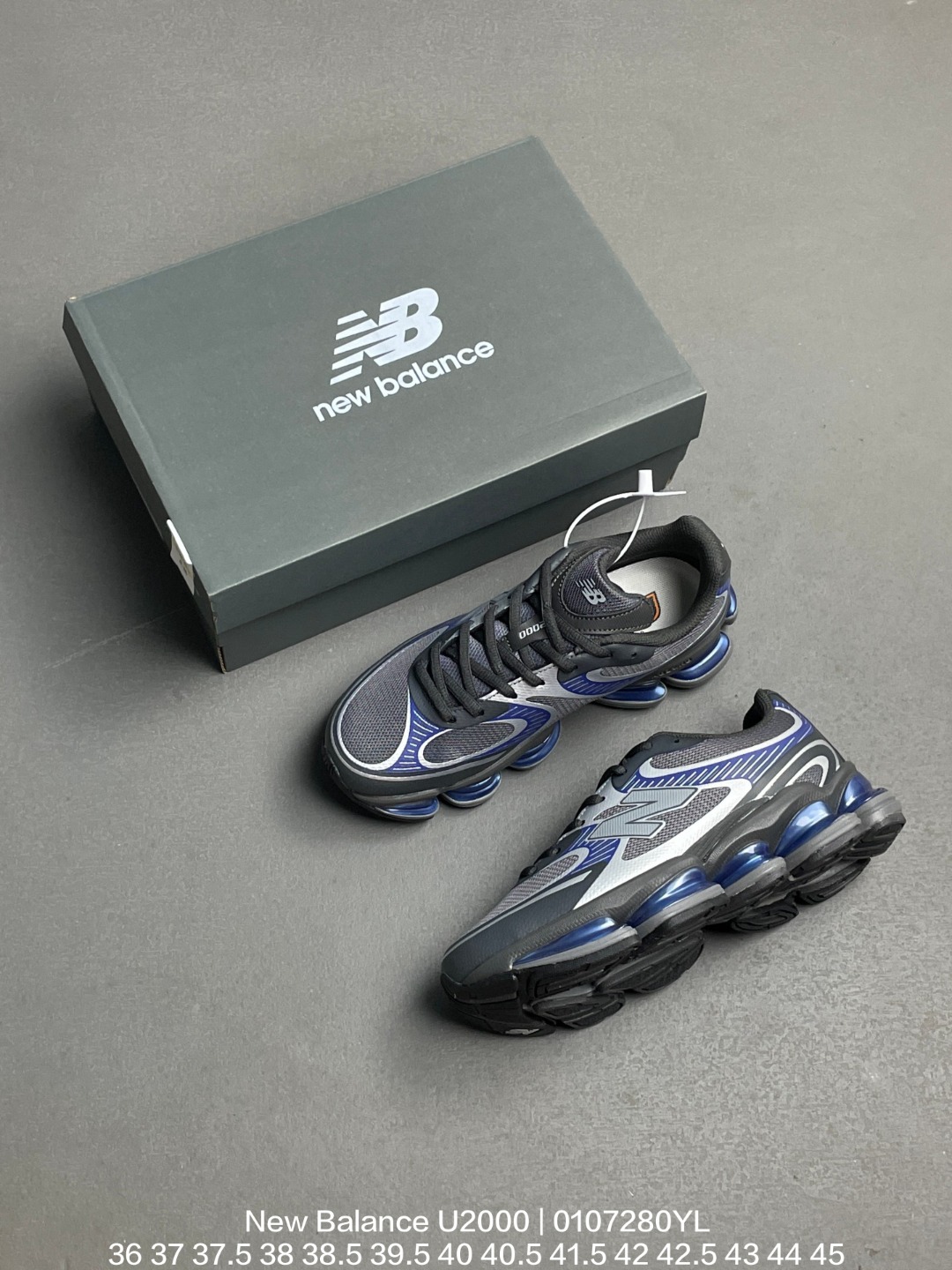 New Balance 新百伦 采用无缝高频热熔网织布鞋面材质 4层组合底模 中底中底五个 ABZORB 单元缓震科技材料 外置防滑耐磨橡胶大底NB新鞋型太科幻了 全新NB新百伦New Balance U2000 Dark Grey 系列复古百搭科幻老爹风休闲运动跑步鞋