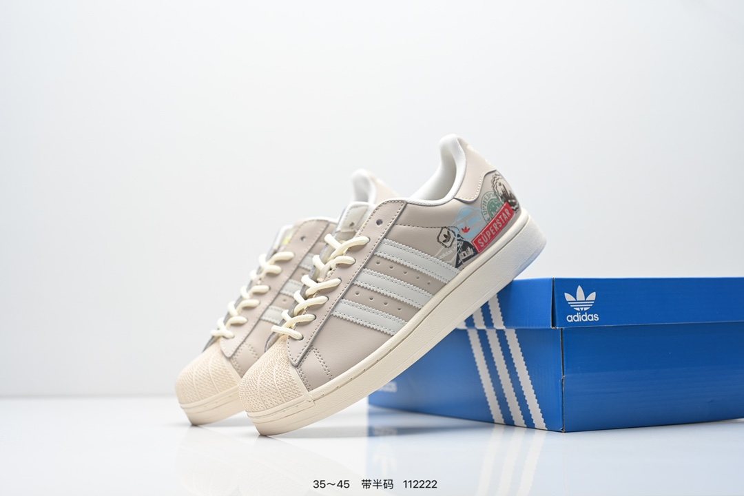 阿迪达斯adidas三叶草 Originals Superstar White Black Gold 贝壳头经典百搭休闲运动板鞋 3M反光