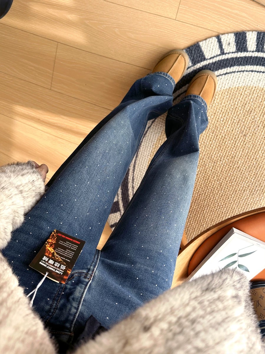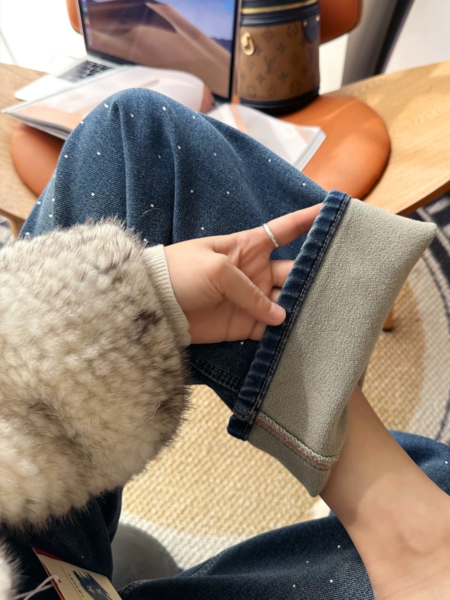 150169368 - 批加绒牛仔裤超带派 buling烫钻直筒牛仔裤女秋冬新款保暖 387748