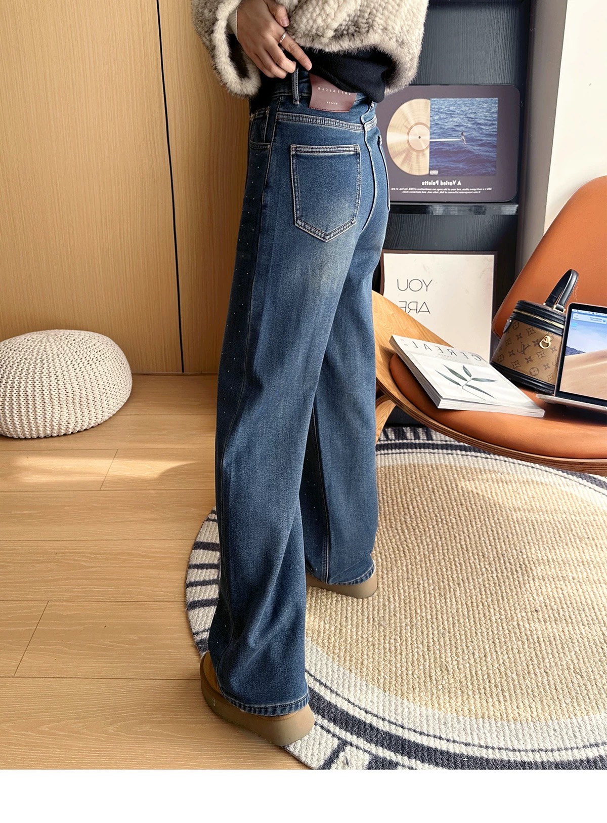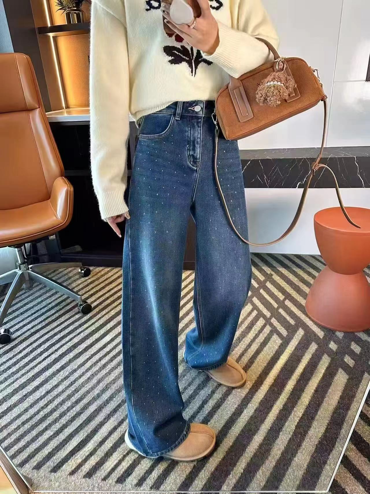 批加绒牛仔裤超带派 buling烫钻直筒牛仔裤女秋冬新款保暖植绒一体绒阔腿裤 bao子们 冬天别再纠结保暖和好看不能兼顾啦