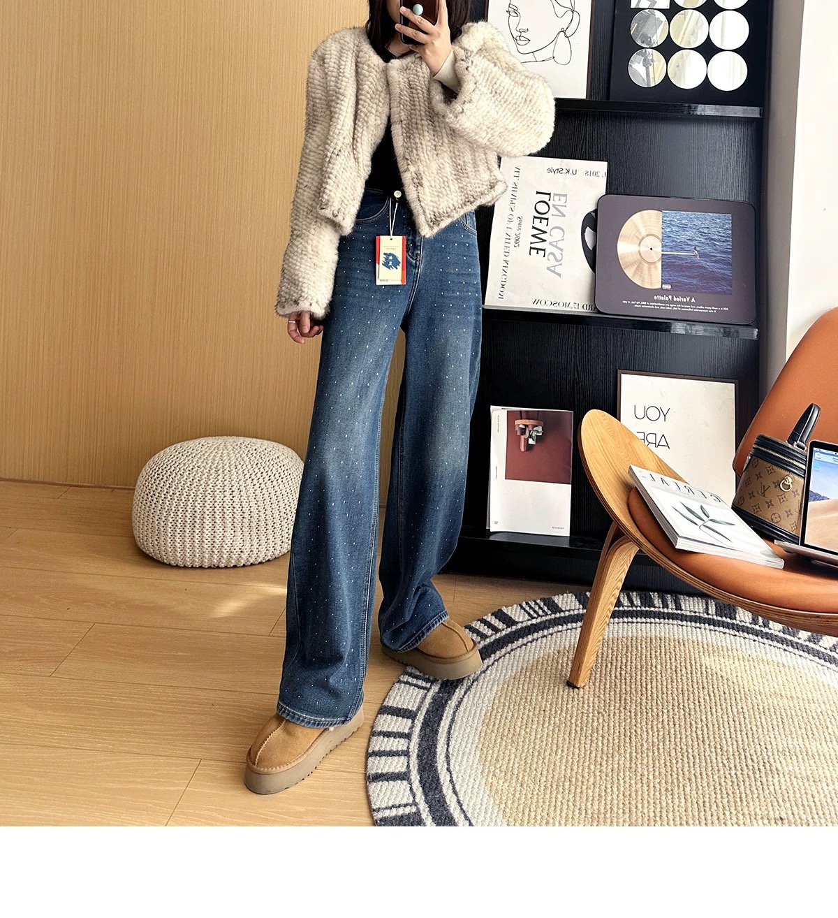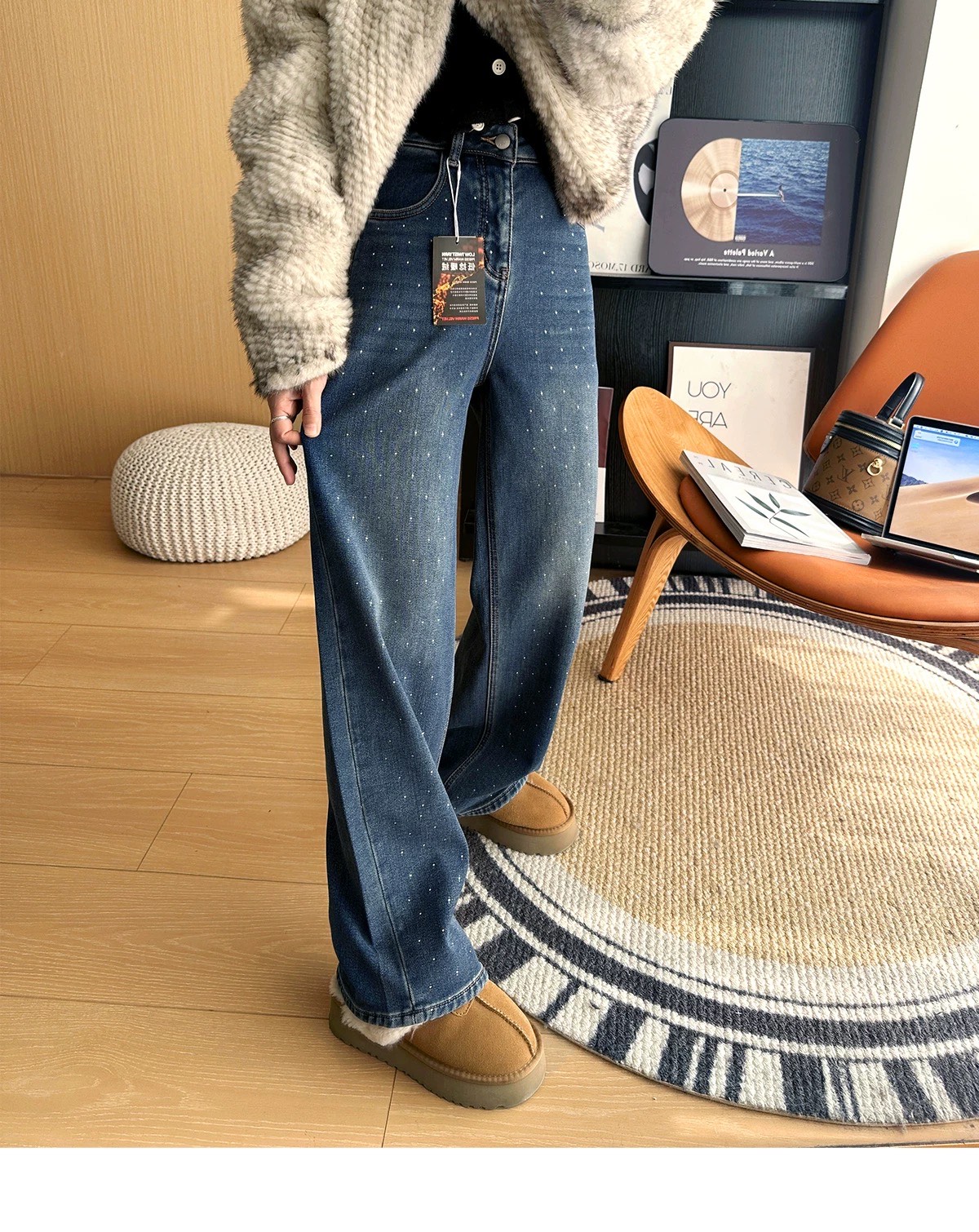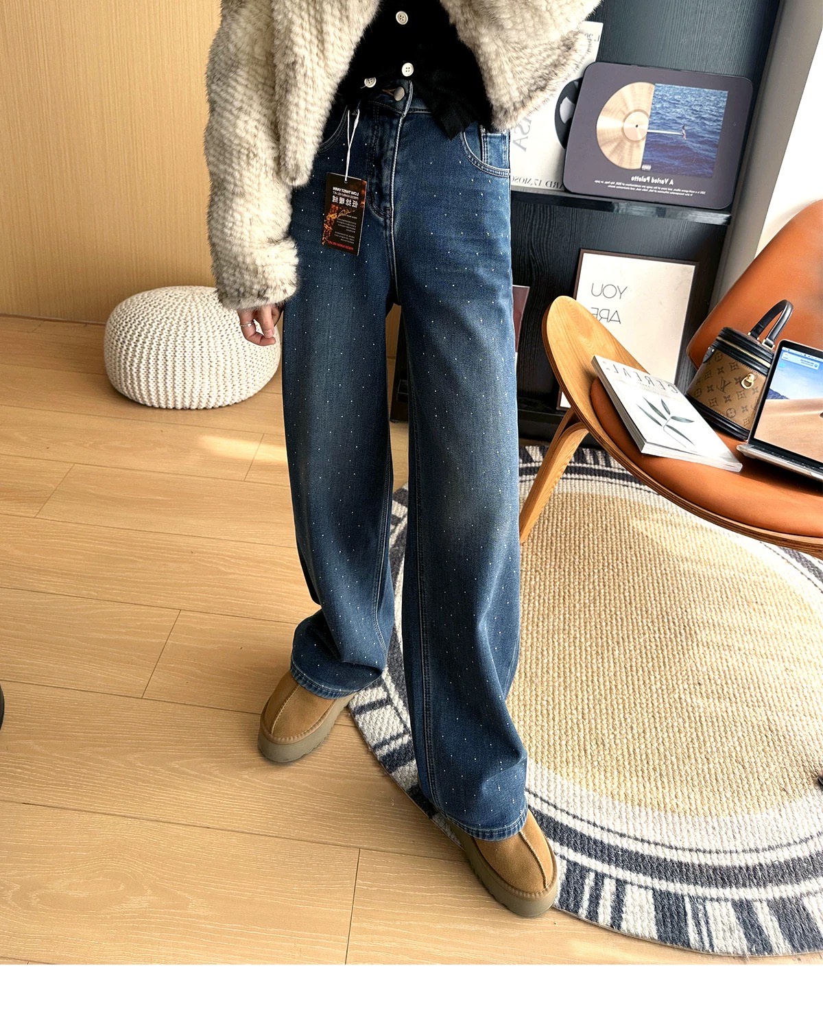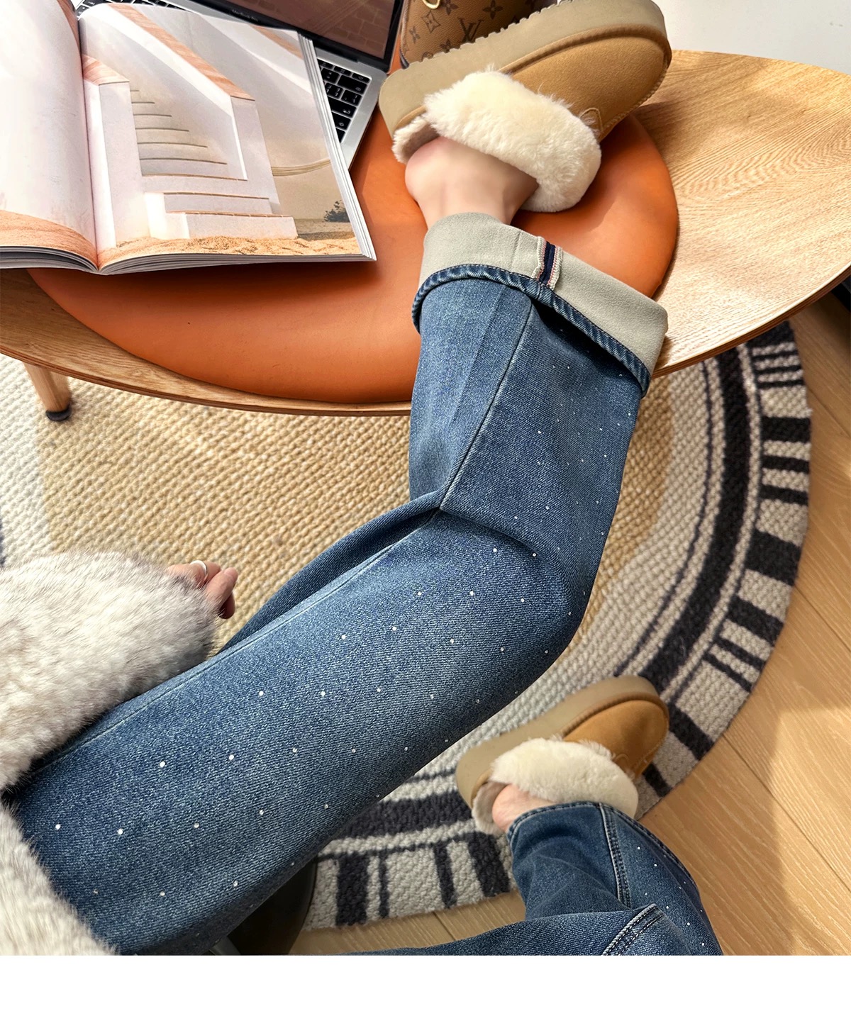 加绒内里软软乎乎 像给双腿裹了层暖乎乎的云朵 保暖性直接拉满外面的烫钻设计chao絶 不是那种浮夸的满钻 而是恰到好处地点缀
