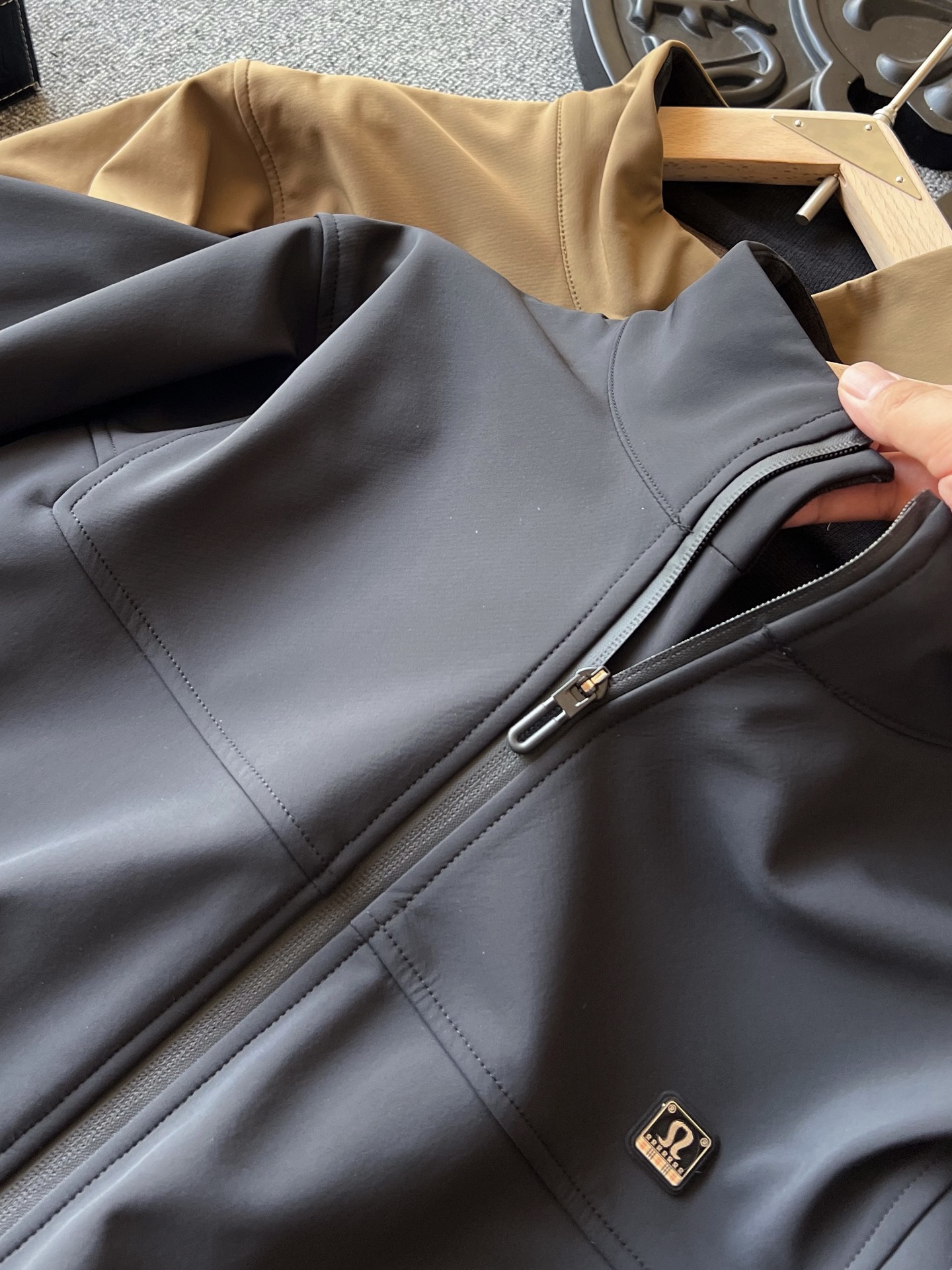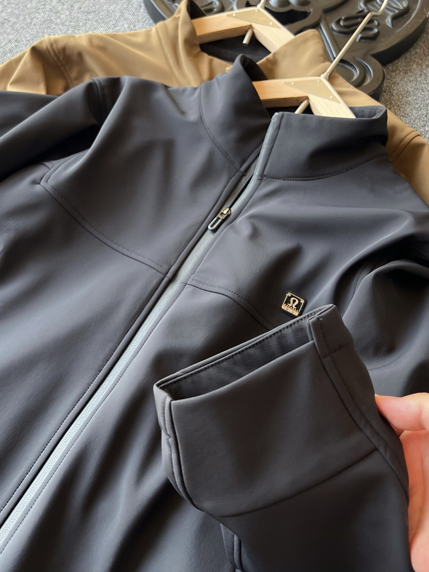细节细节再细节 lulu家商场新品旗舰系列夹克外套 胸前采用3D立体激光浮雕工艺露露金属标 轮廓镶嵌软硅胶环绕设计 十分精致 全身多处拼接工艺 细节做工天花板 所有拉链处全部做了包边处理 精湛质感 内里一体超柔抓绒设计 接触肌肤舒服又保暖