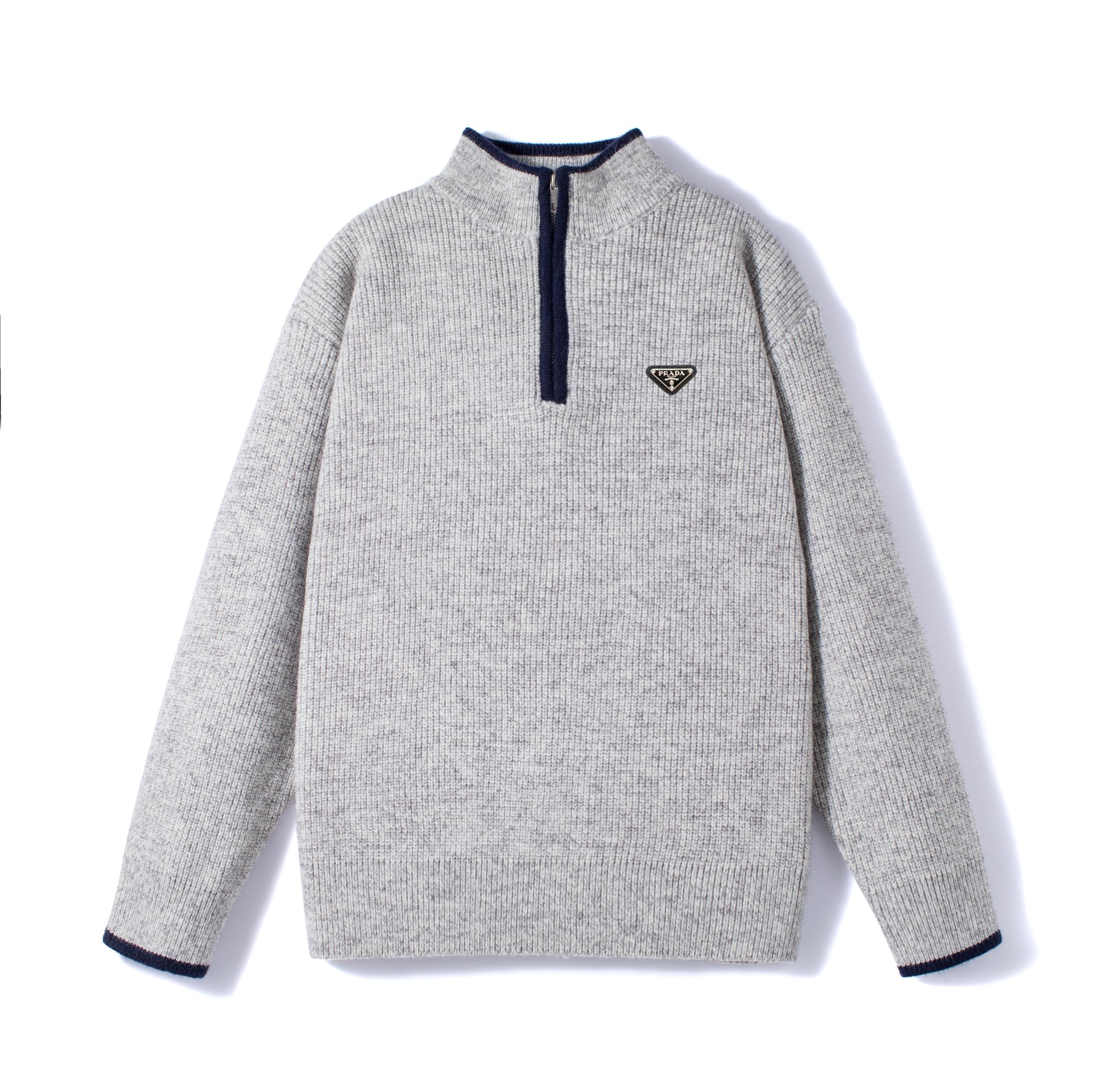 供 PRADA普拉达经典三角皮标半拉链针织毛衣