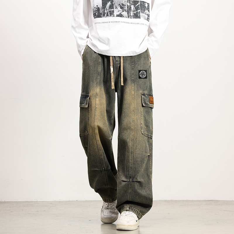复刻石头岛经典做旧工艺 裤身手工磨白纹路自然过渡 后腰金属铭牌点缀标志性罗盘标 细节处尽显机能美学 直筒剪裁适配多身形 日常通勤或街头出街皆可 兼顾舒适与造型感 轻松穿出低调高级的工装格调 颜色 图片色 尺码 图九