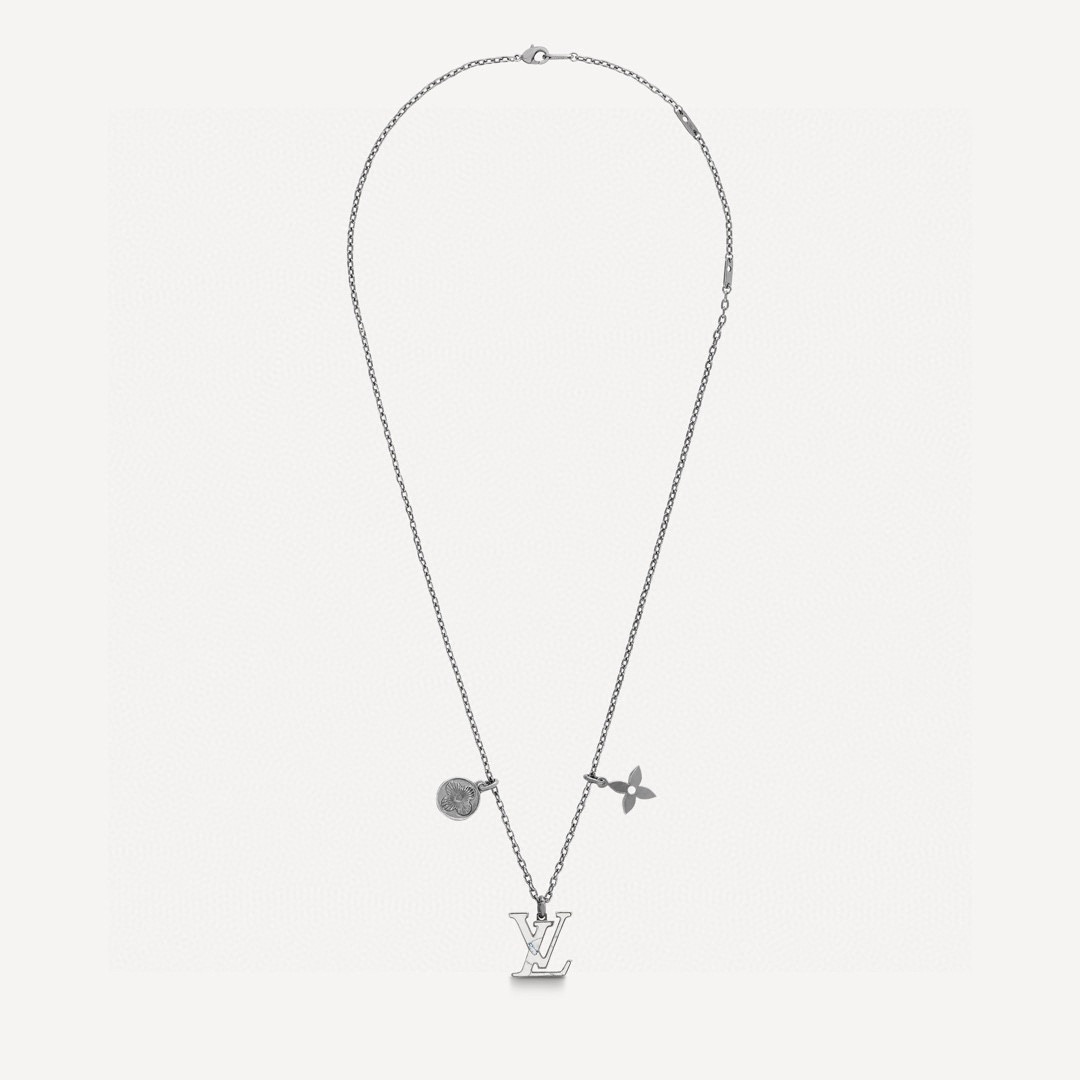 项链将品牌标志性元素汇聚一处 金属 Monogram 花卉流露微妙复古质感 经典 1V 字母 于可调节链条优雅悬挂