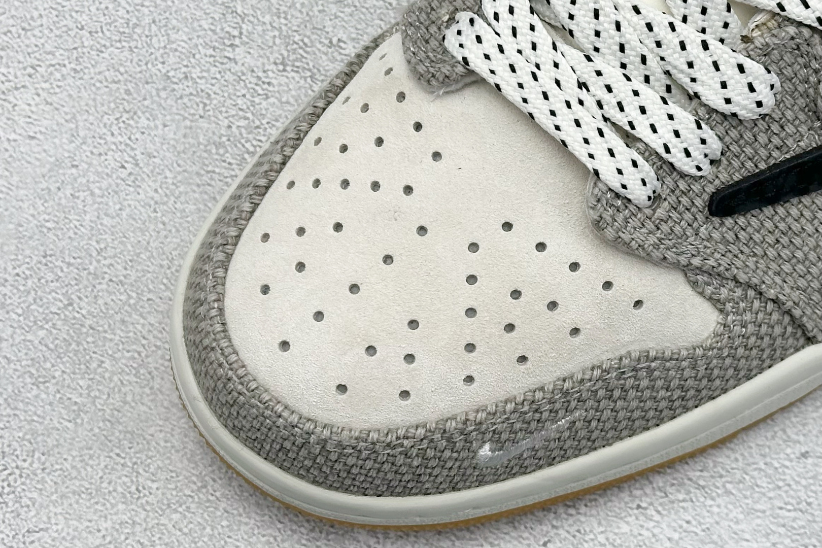 多方联名合作融合了Travis Scott 独特的音乐风格 藤原浩个性的设计风格以及Jordan品牌的经典元素 使其成为一双具有独特身份和价值的鞋子 清新而立体的外观加上联名标识更突出了其独特身份 这种配色方案显示出活力和时尚感 在视觉上引人注目 鞋身的质感和细腻的细节处理使其显得高端而格调十足 这款 倒钩 联名是设计与创意完美结合 融合多方的个性风格是一款备受瞩目的潮流鞋款