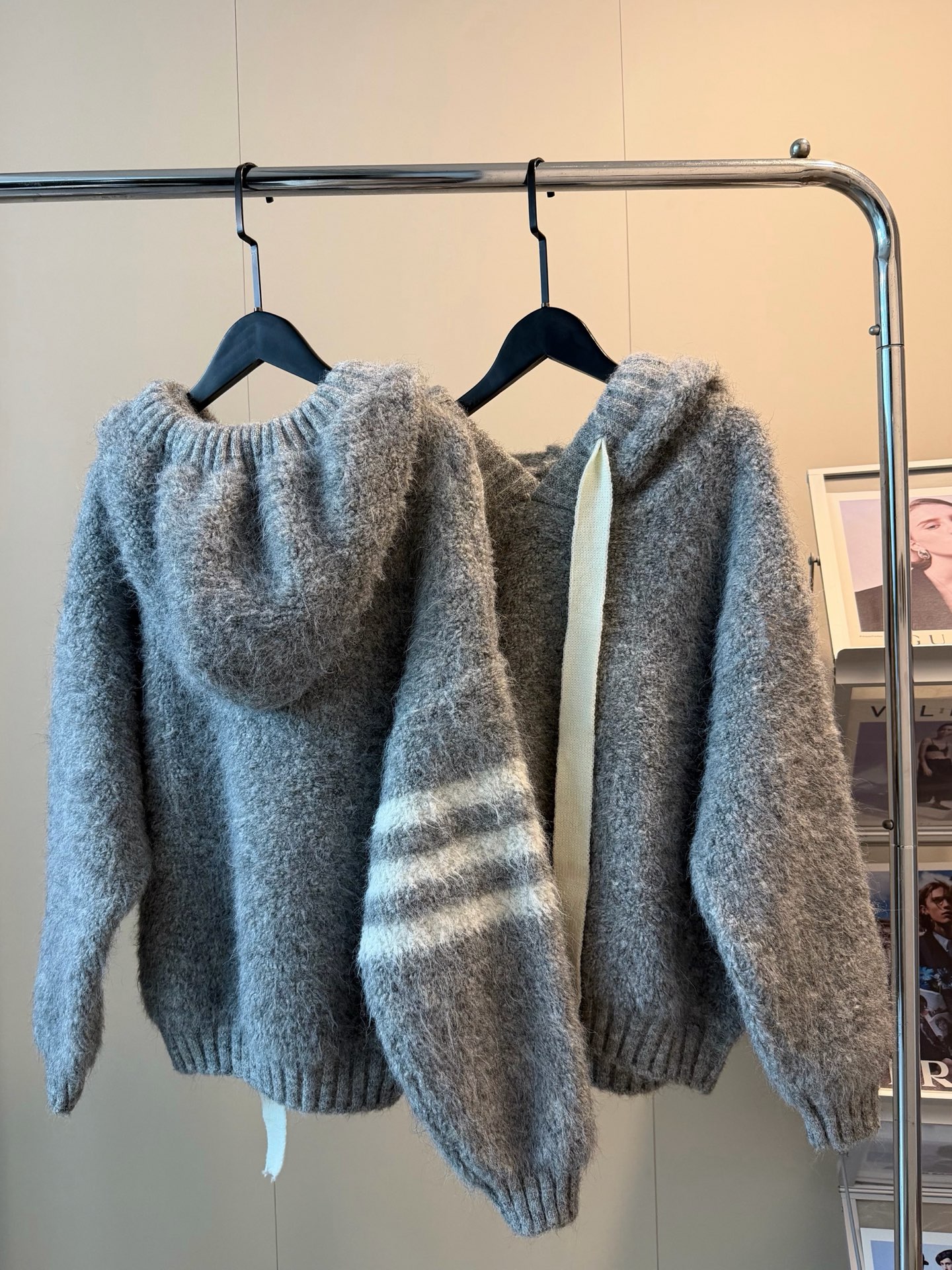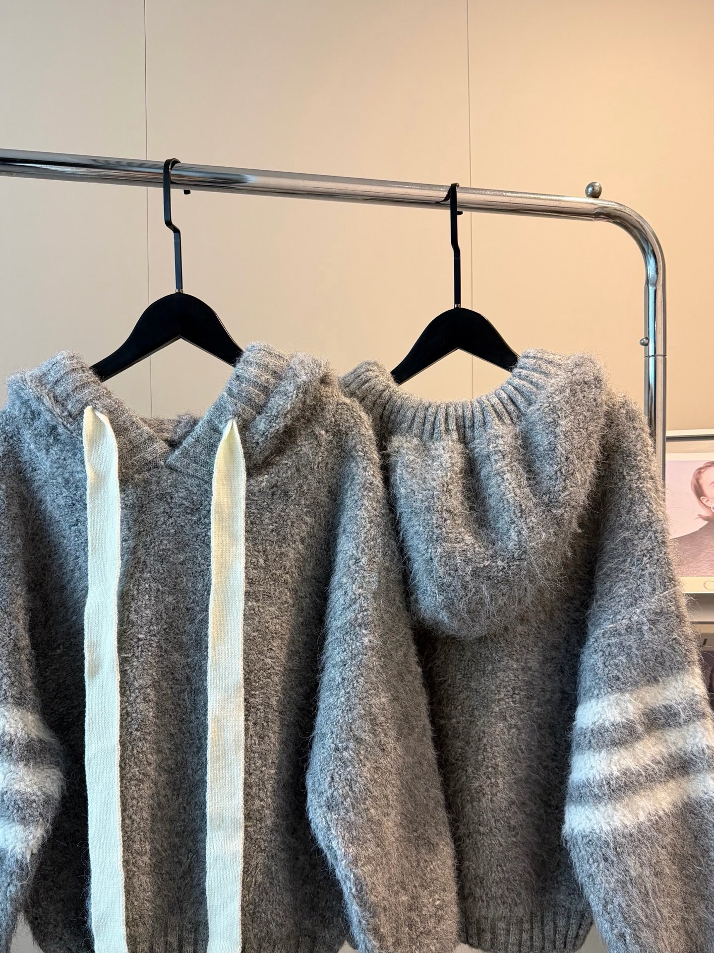 110243680 - 𝙏𝙝𝙤𝙢 𝘽𝙧𝙤𝙬𝙣𝙚汤姆布朗新款拼接三道杠毛绒连帽针织卫衣 445575