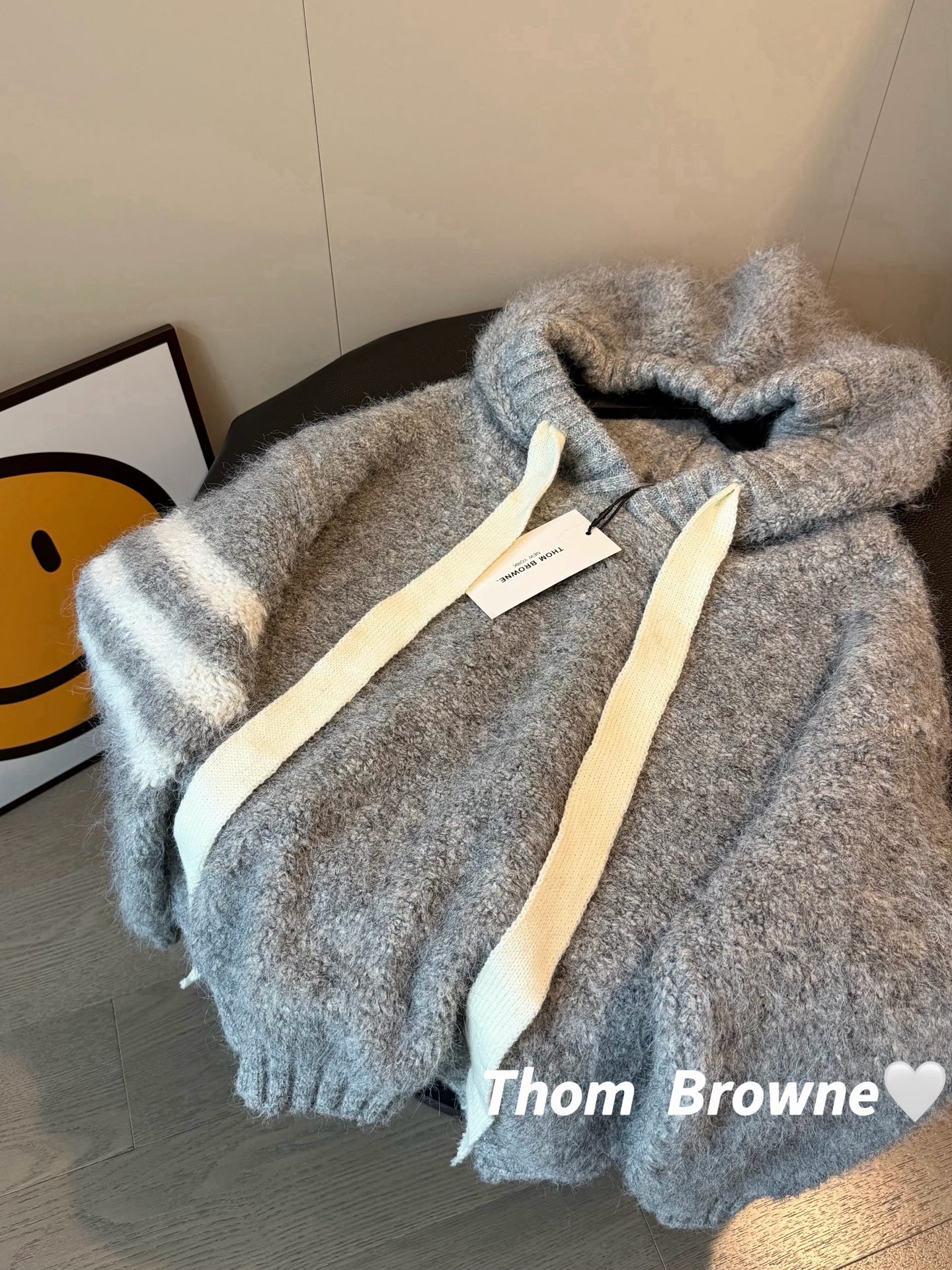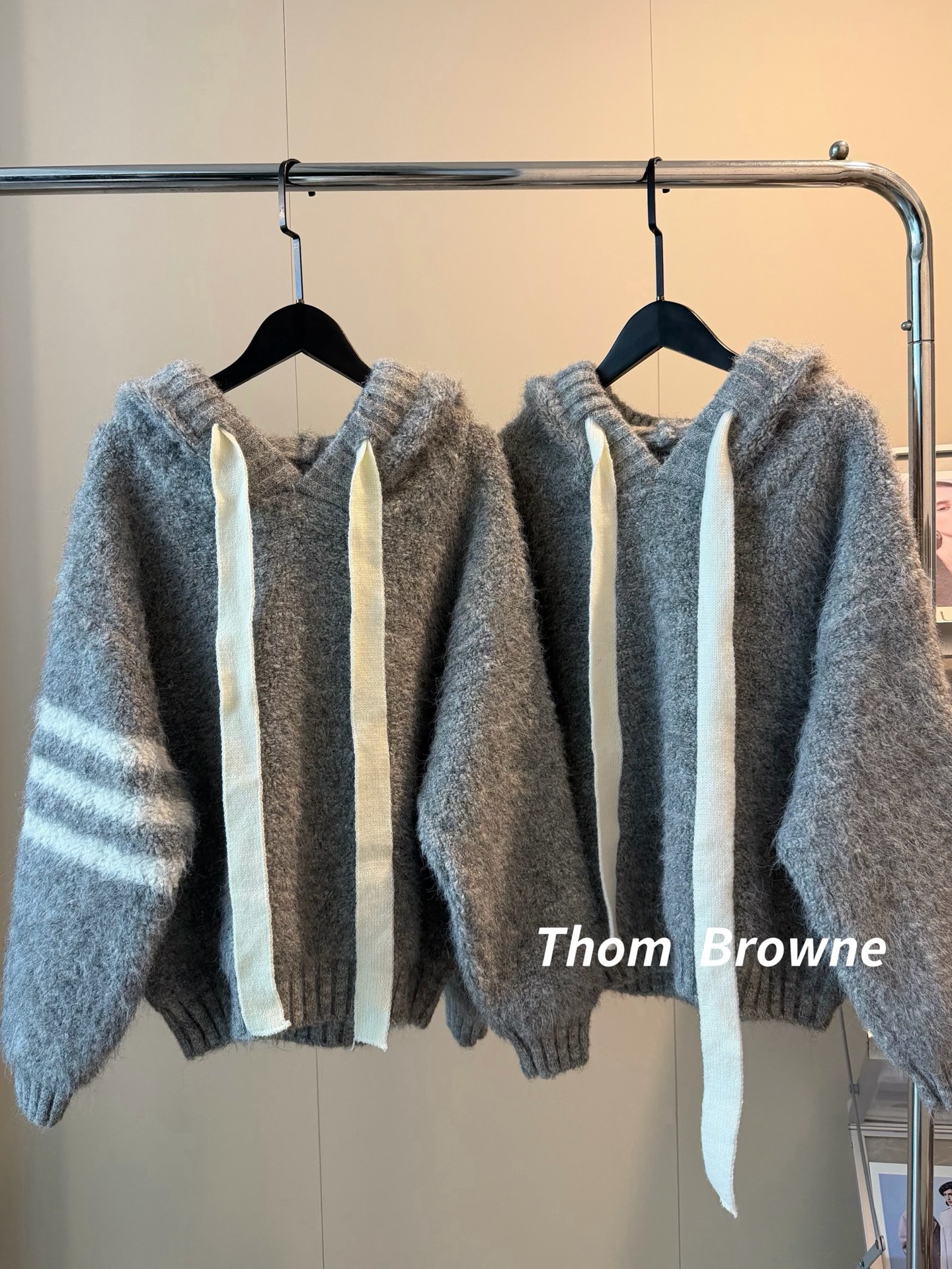 𝙏𝙝𝙤𝙢 𝘽𝙧𝙤𝙬𝙣𝙚汤姆布朗新款拼接三道杠毛绒连帽针织卫衣