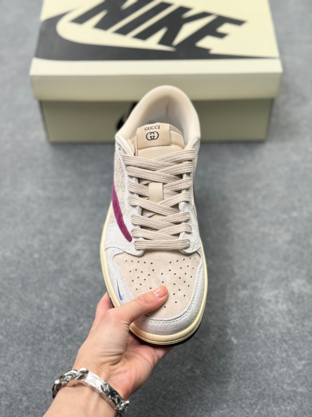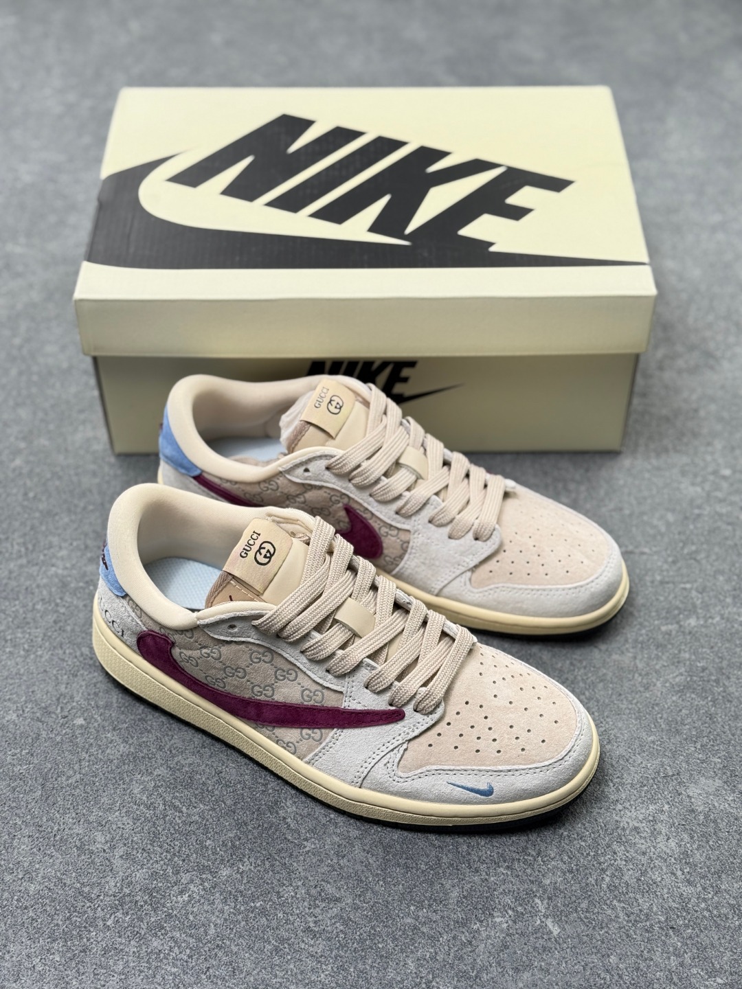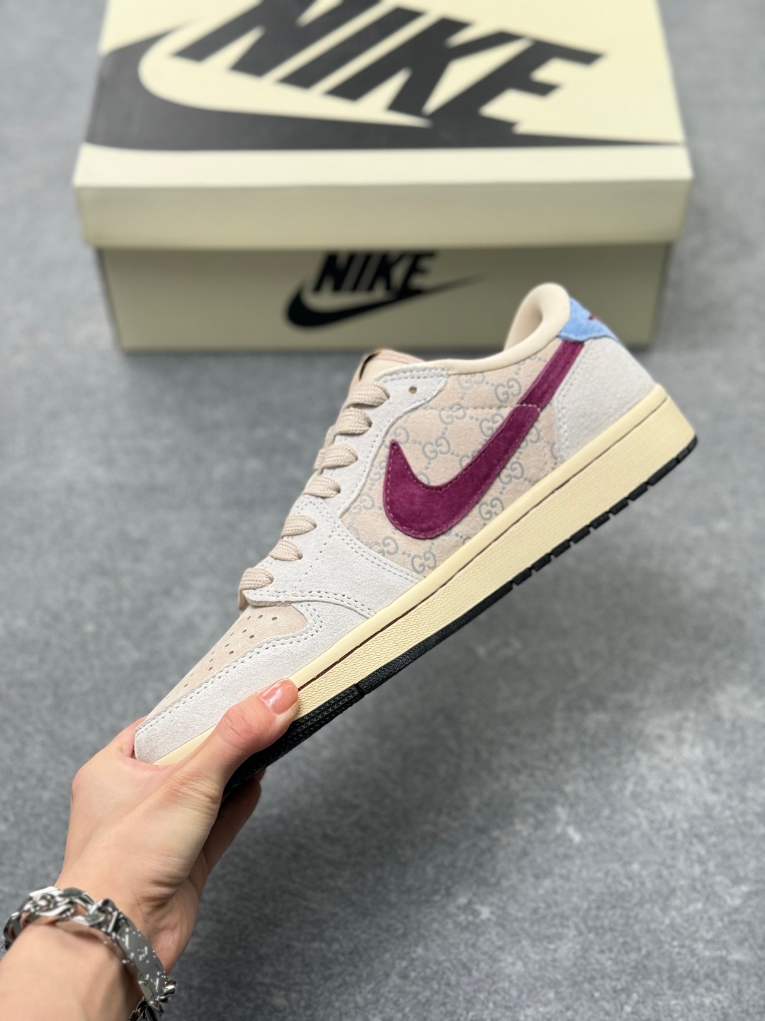 多方联名合作融合了Travis Scott 独特的音乐风格 藤原浩个性的设计风格以及Jordan品牌的经典元素 使其成为一双具有独特身份和价值的鞋子 清新而立体的外观加上联名标识更突出了其独特身份 这种配色方案显示出活力和时尚感 在视觉上引人注目 鞋身的质感和细腻的细节处理使其显得高端而格调十足 这款 倒钩 联名是设计与创意完美结合 融合多方的个性风格是一款备受瞩目的潮流鞋款
