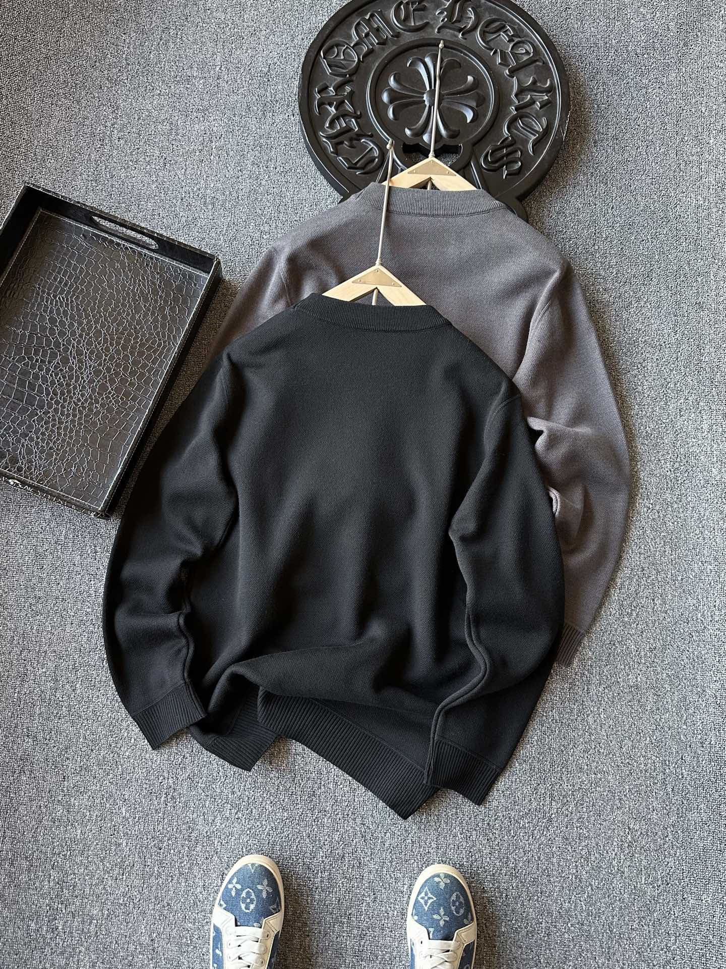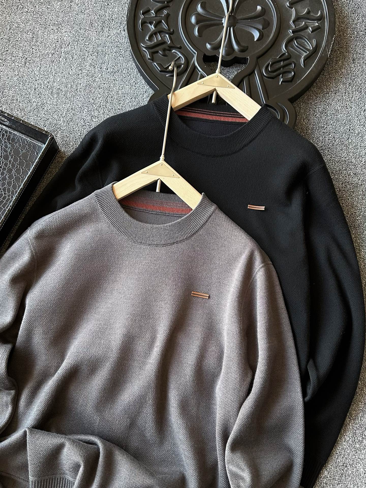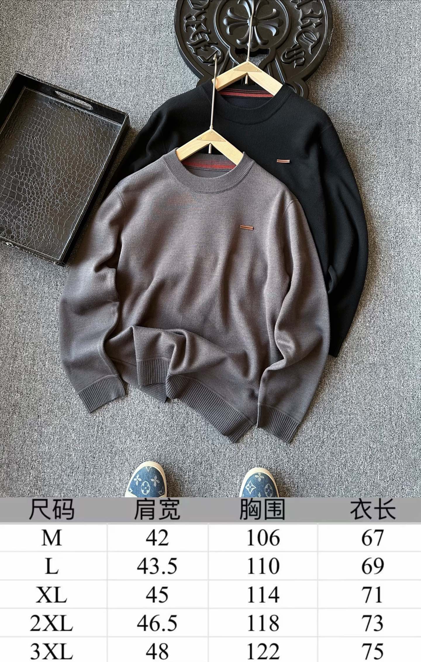 细节细节再细节 Zegna家商场新品轻奢绵羊毛加绒加厚毛衣 高级水泥灰 石墨黑双色精致百搭 胸前标志性杰尼亚棕黑棕组合浮雕立体硅胶线条 摸起来带有层次感 十分精致 从双肩双袖到下摆全部采用6针24线缝制工艺 高级感拉满