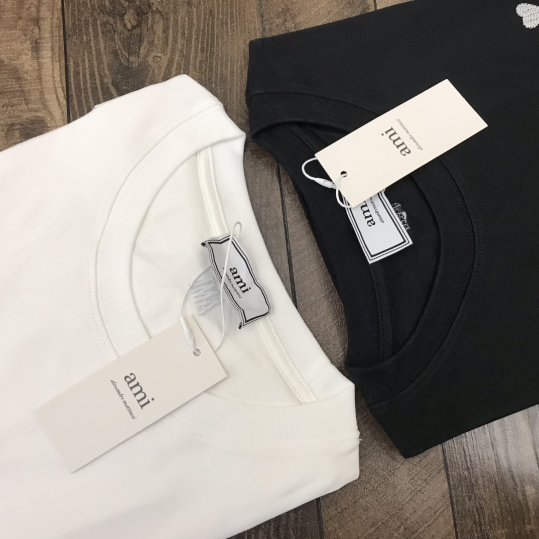 Ami字母经典短袖T恤 小LOGO刺绣紫标 刺绣非常的饱满 耐看 基础圆领设计 翻边袖口设计 280克纯棉面料做工细致 舒服透气性好 不会有任何刺肤感 上身舒适不起球