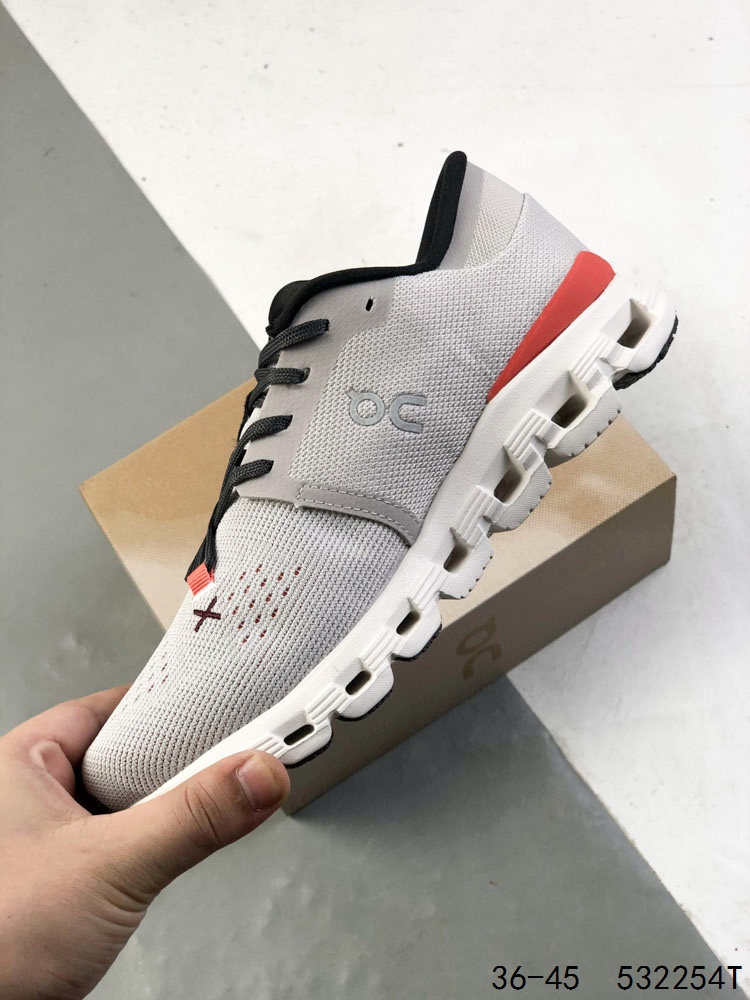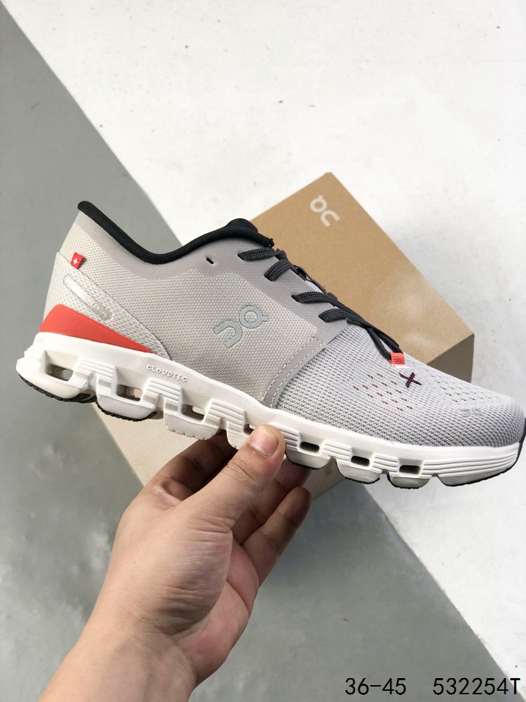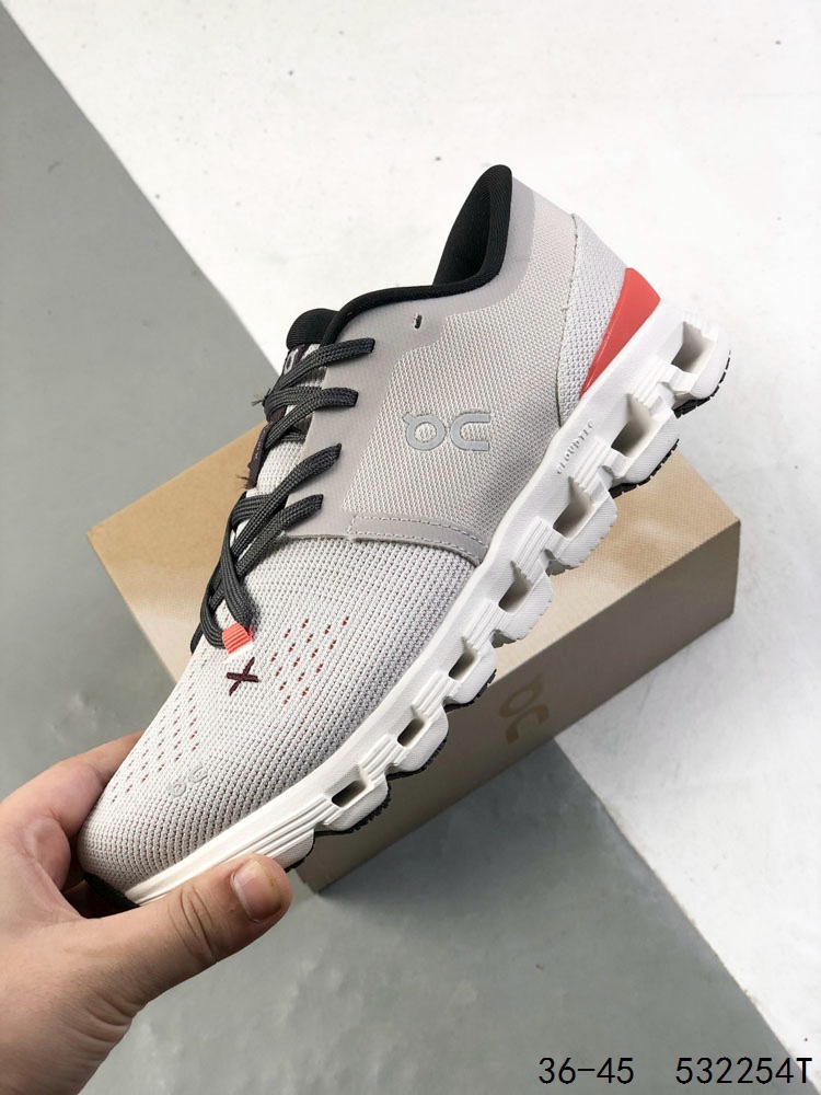 On昂跑 Cloud x 4 0舒适百搭防滑耐磨低帮休闲跑步鞋 采用人体工程超薄透气网织布鞋面材质 搭镂空CloudTec 科技泡棉缓震 4 5cm厘米 加厚中底