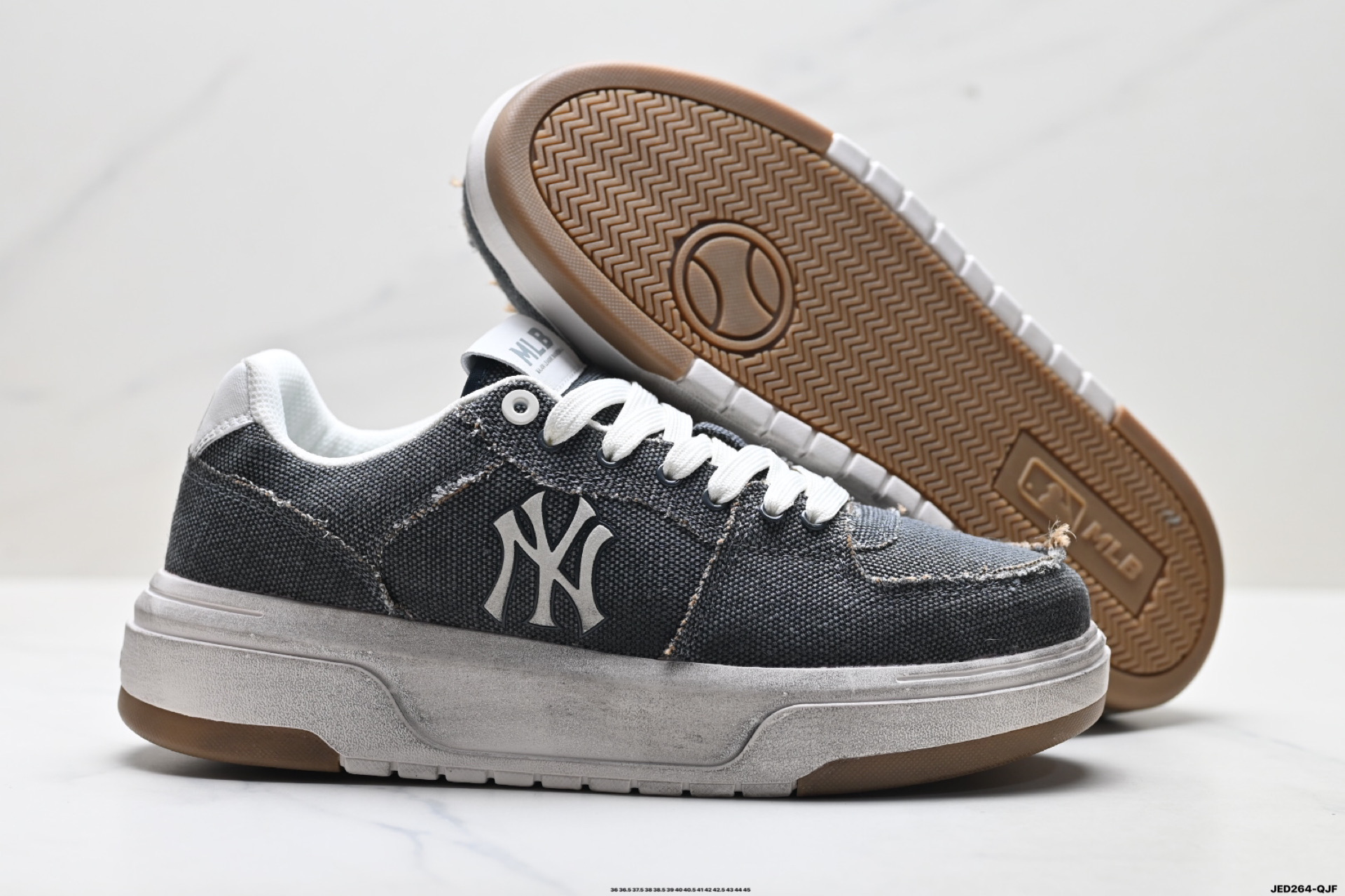 公司级MLB CHUNKY LINER DENIM 潮流百搭 厚底增高 牛仔舒适休闲鞋 防滑耐磨 低帮 老爹鞋 货号 3ASXM015N 尺码 36 36 5 37 5 38 38 5 39 40 40 5 41 42 42 5 43 44 45 ID JED264 QJF