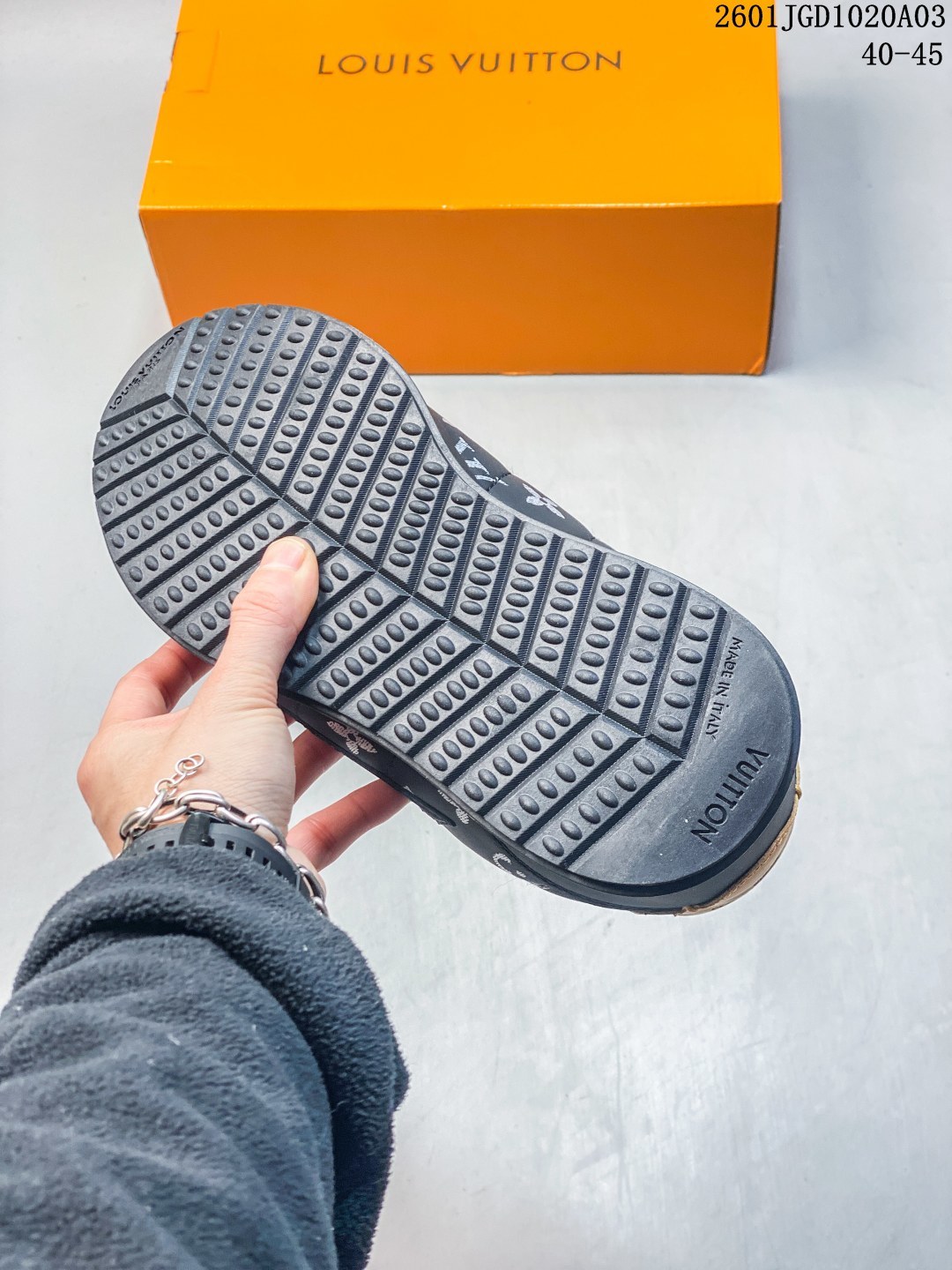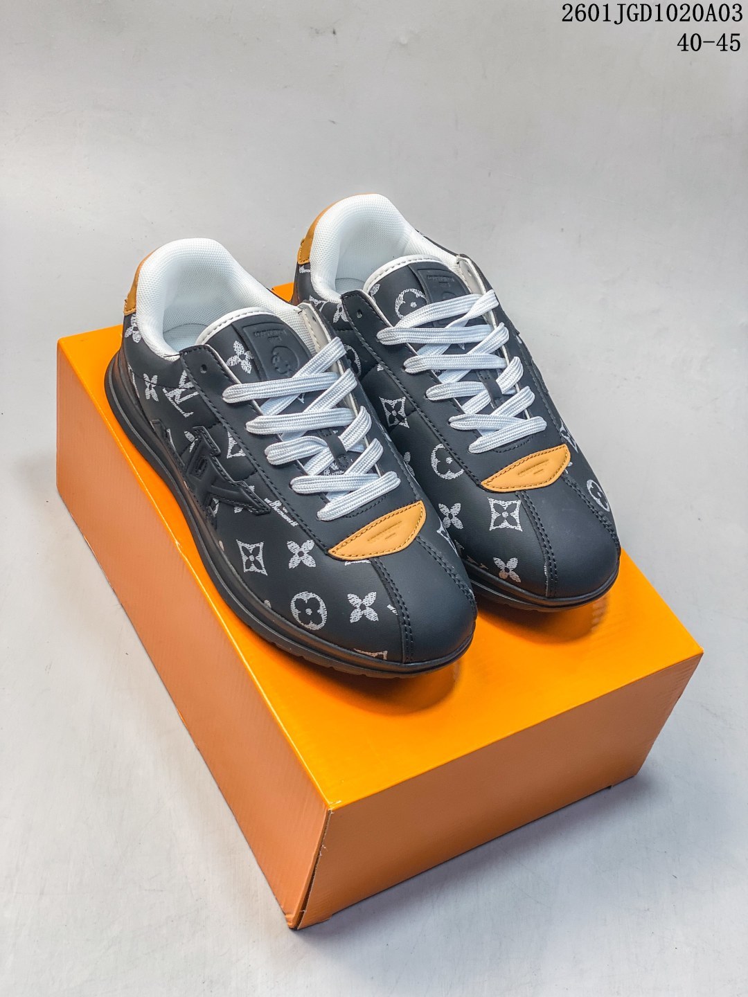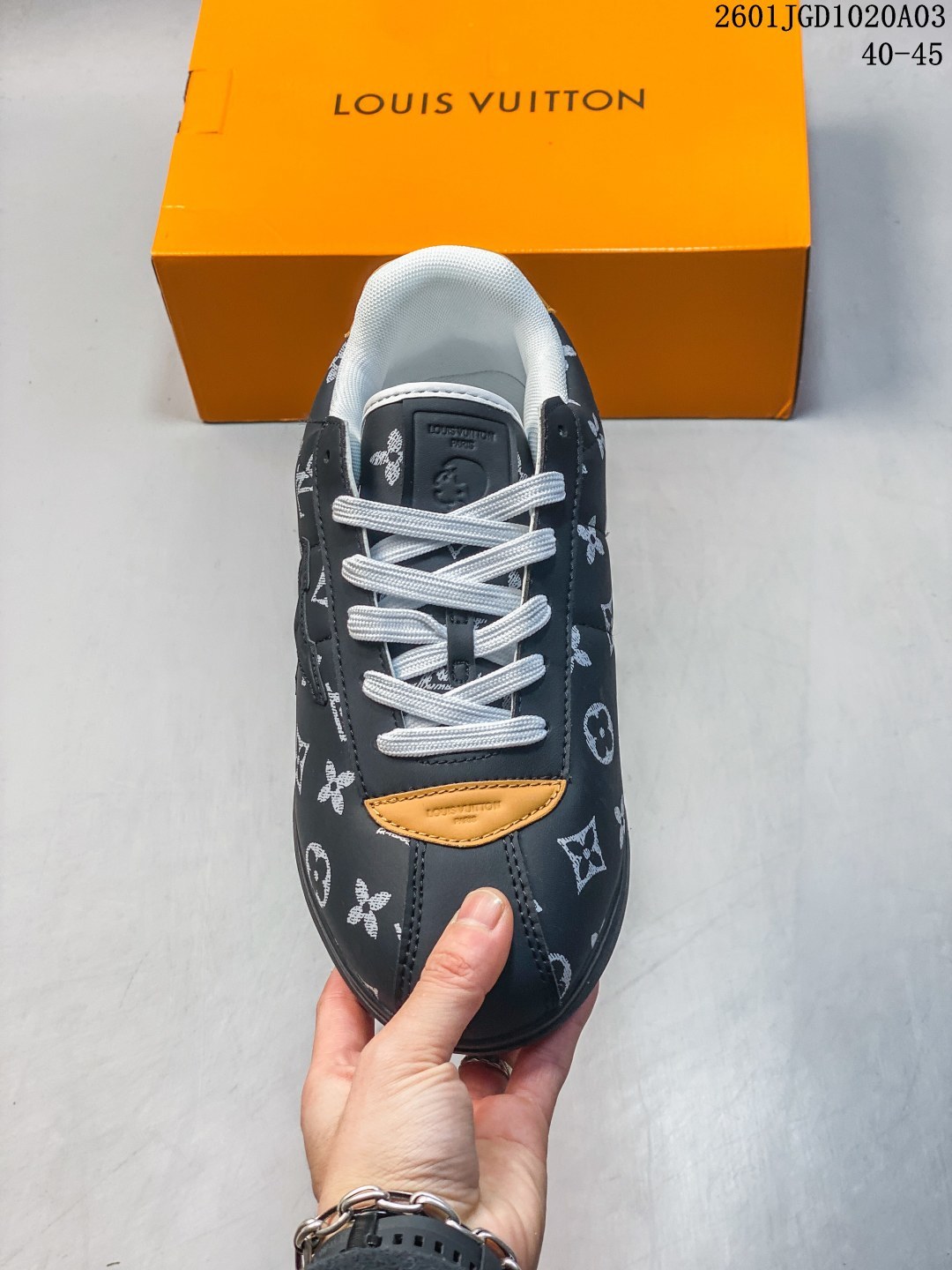 路易威登 LV TRAINER SNEAKER 2025年联名款 驴牌新款LV联名阿甘跑步运动鞋 胖丁面包鞋 训练鞋 Chill 感时髦尖子生LV25复古芭蕾舞德训鞋复古德训运动休闲跑步鞋 鞋设计特点 融合芭蕾舞鞋的优雅与德训鞋的复古运动感 鞋面采用品牌标志性老花元素和字母标识 流畅鞋型设计显脚小 被评价为 修饰脚型一绝