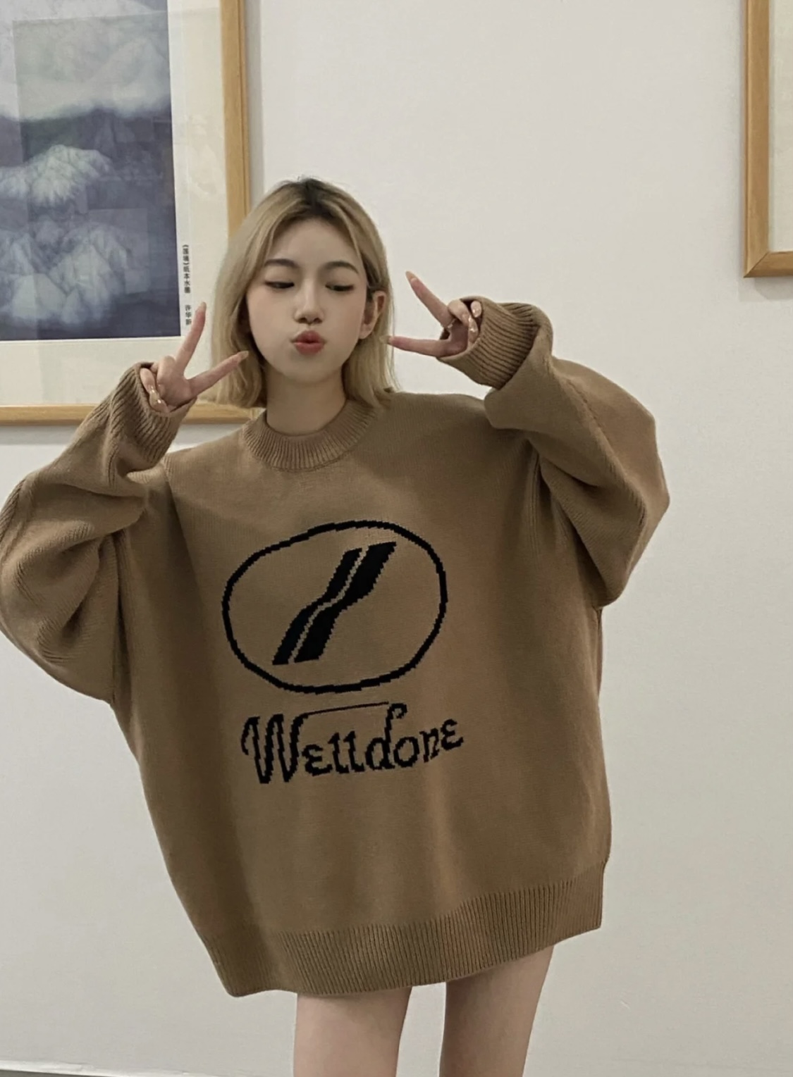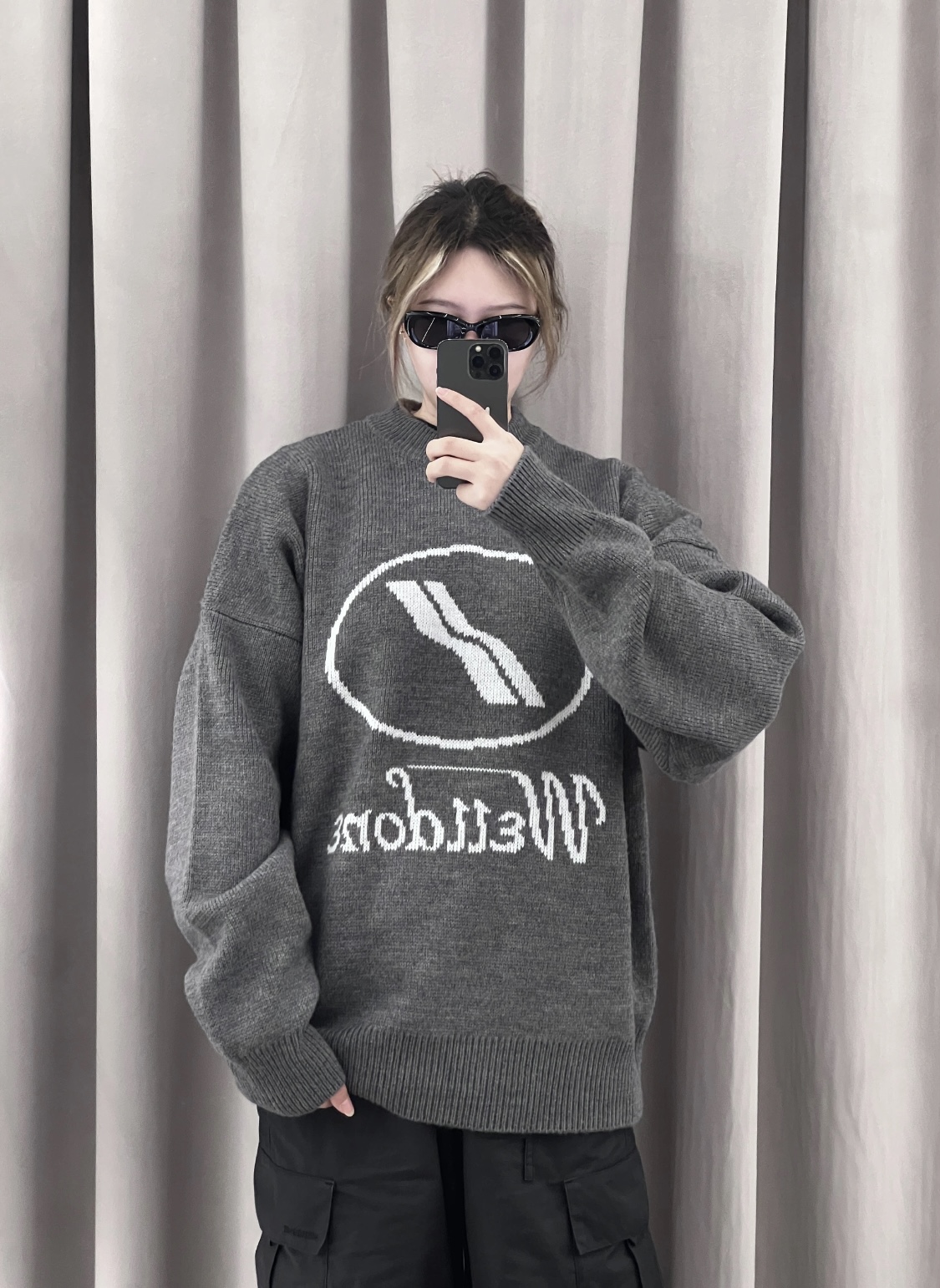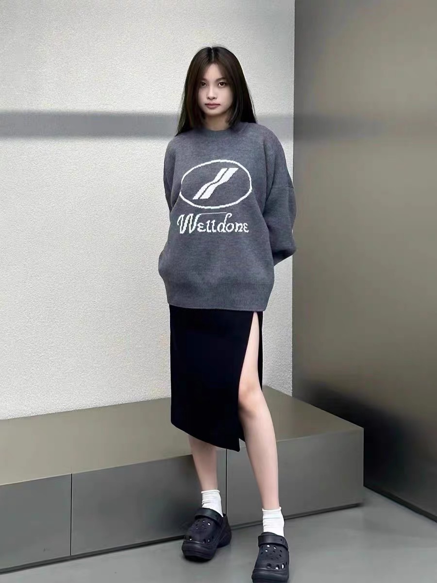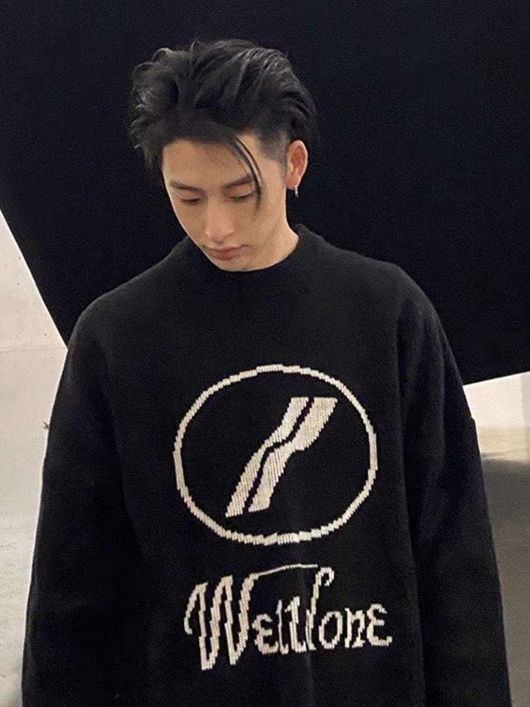 WE11DONE官网冬季双层加厚大LOGO字母宽松套头毛衣