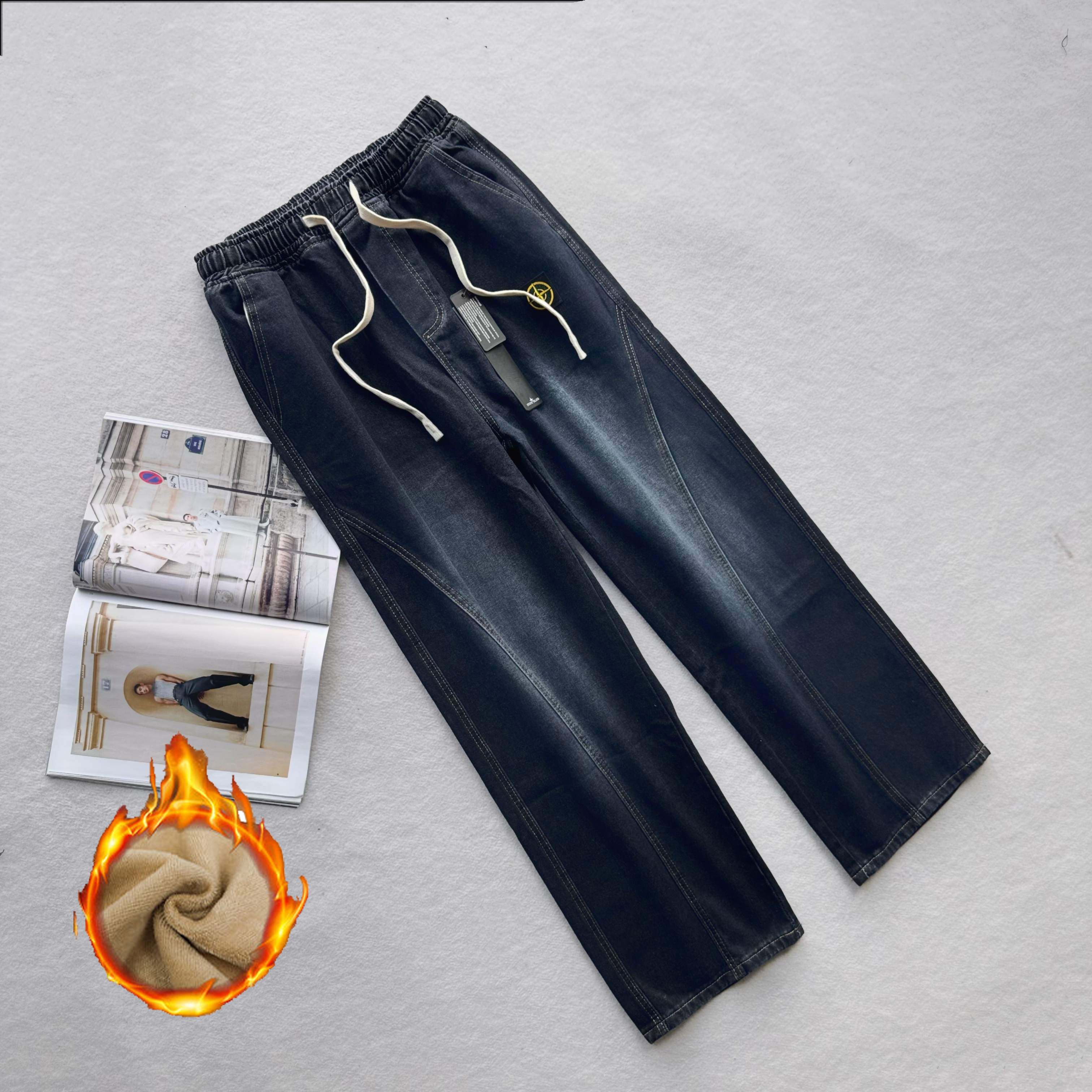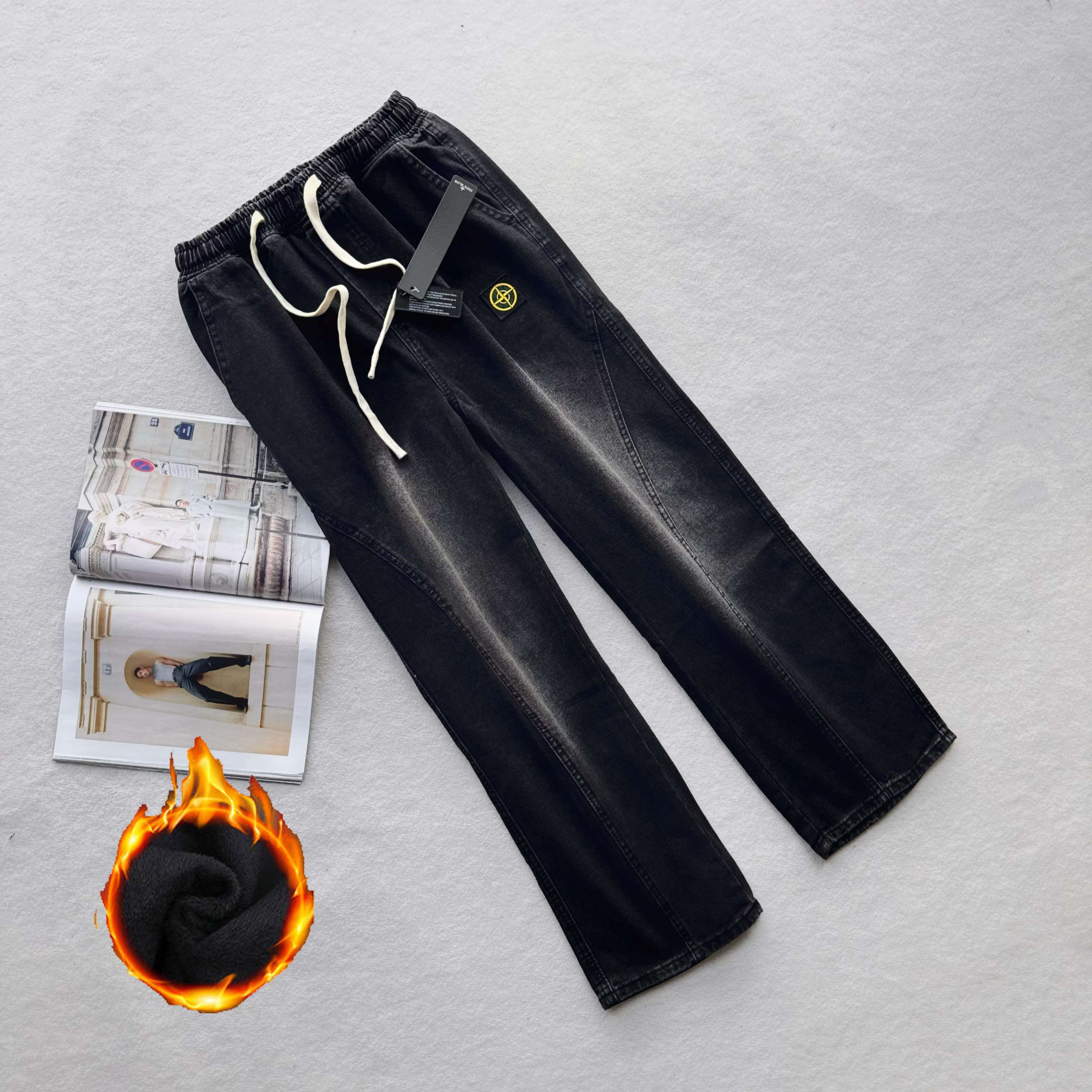 加绒加厚 Stone Island 石头岛最新美式复古水洗牛仔裤