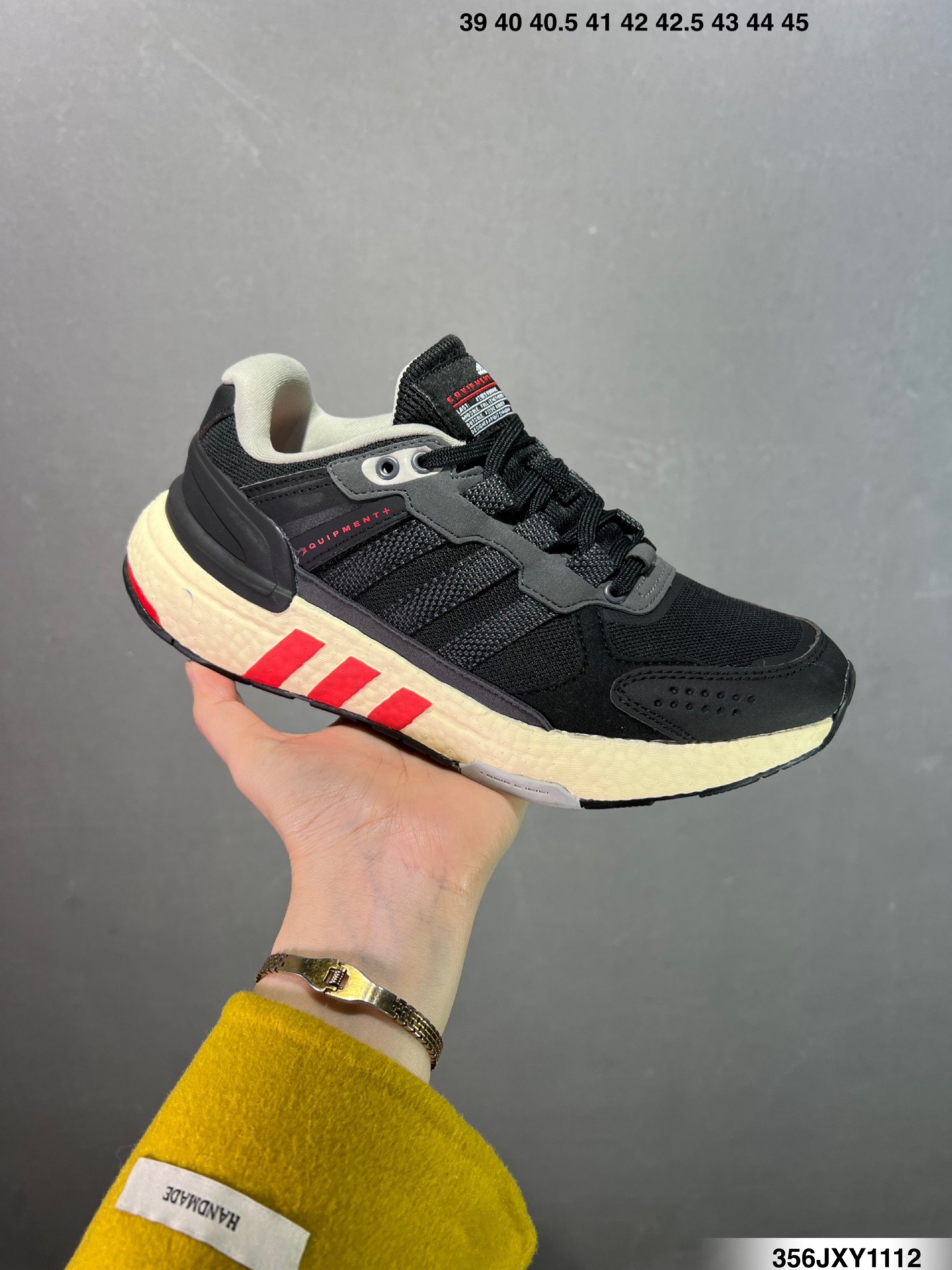 90年代跑鞋设计与现代adidas跑鞋科技相结合 你会得到什么 答案是EQT EQT全称EQUIPMENT 就像字面意思一样 EQT注重装备性能 是adidas非常经典的跑鞋 96年一位新秀的出现 把EQT系列烙印在了一群篮球迷的心中 当时刚刚从高中进入NBA的科比布莱恩特作为阿迪达斯的代言人上脚了EQT系列的篮球鞋 而最经典的就是他夺得扣篮冠军时穿的EQT Elevation 醒目的跑步运动鞋 90年代跑鞋设计与现代adidas跑鞋科技相结合 你会得到什么 会得到这款adidas EQT 运动鞋 adidas EQT系列 旨在为满足跑步者需要而生 如今 它搭载了Boost科技 含舒适鞋面和别致三条纹饰面 货号 H02751 尺码 36 45 ID 356JXY1112